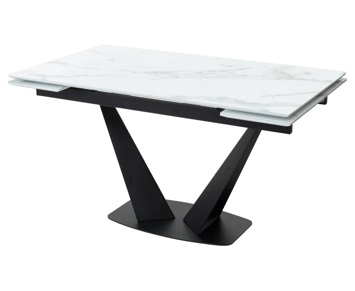 Стол Ниагара 140 БЕЛЫЙ МРАМОР, стекло / ЧЕРНЫЙ, М-City