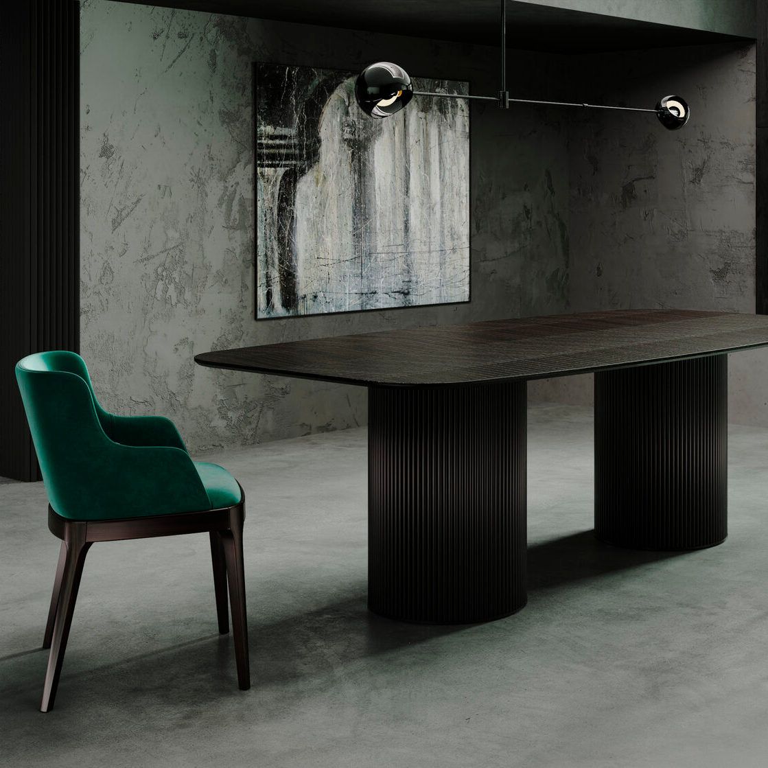 Стол Nolan — это стильная и изысканная модель с круглой или овальной столешницей из керамики, а также металлическим основанием. Стол Nolan с чёрной металлической опорой и столешницей из шпона выглядит элегантно и современно. Чёрная металлическая опора придаёт столу сдержанный и стильный вид, что делает его идеальным выбором для разных интерьеров, особенно в современном и индустриальном стиле. Дизайн стола Nolan сочетает в себе современные и натуральные элементы, что позволяет ему гармонично вписаться в различные интерьеры.