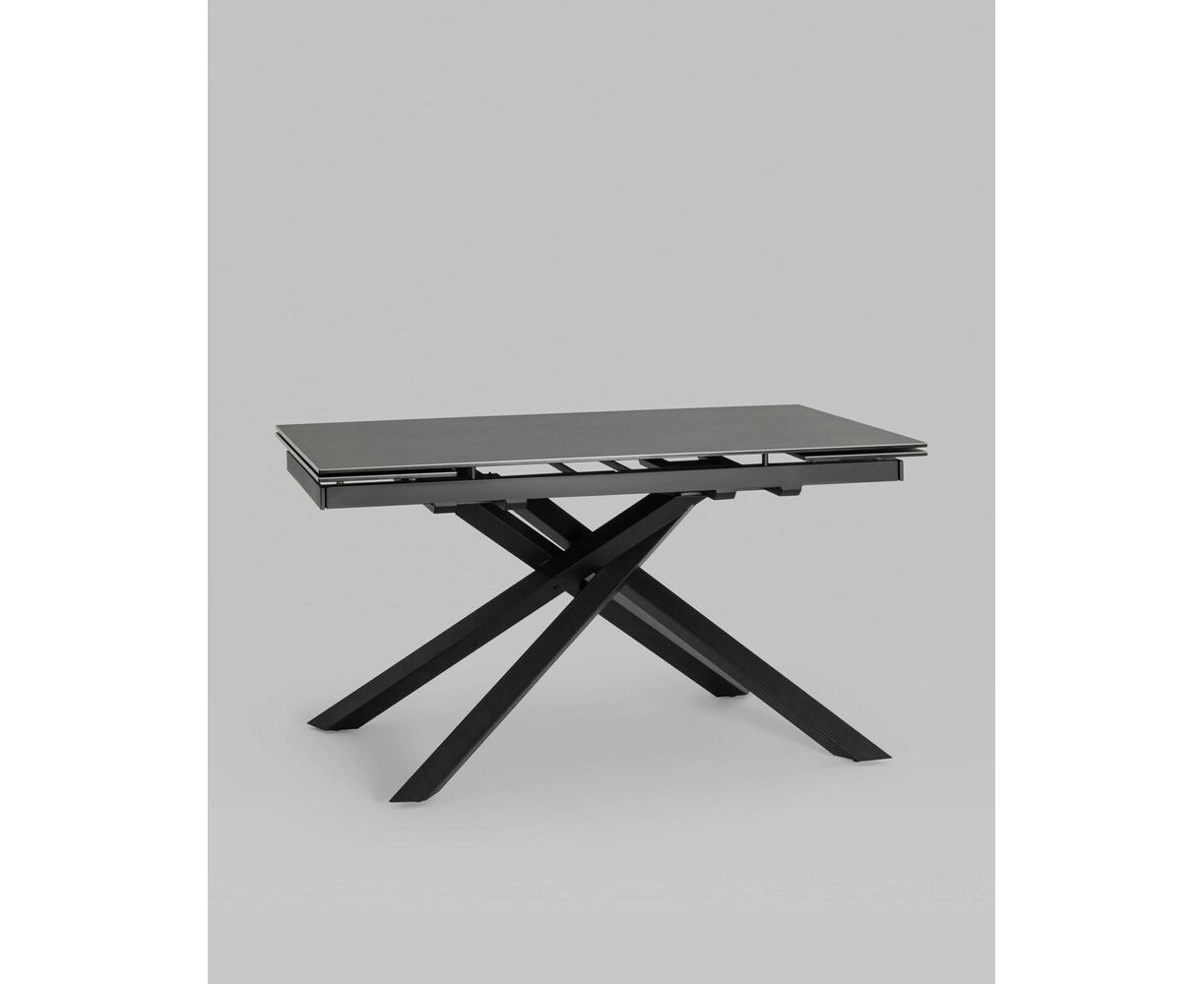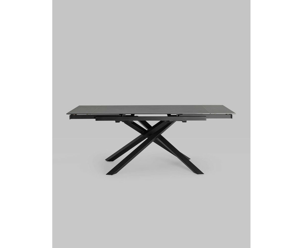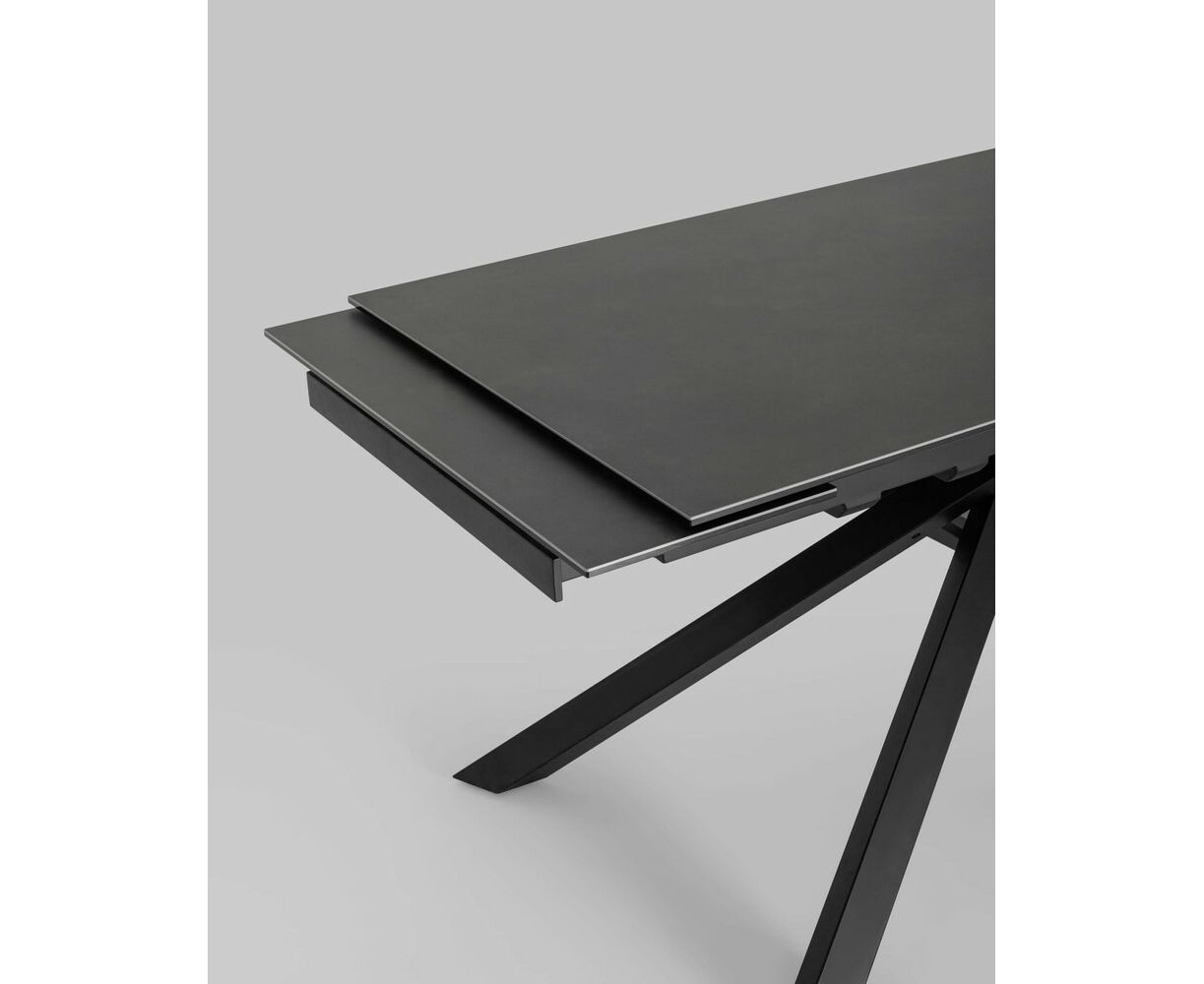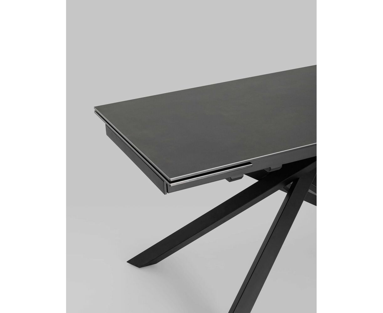 Обеденный стол Альянс с раскладной столешницей. Прямоугольная столешница выполнена из цельной керамики. Материал долговечен, устойчив к термическим и механическим воздействиям. При необходимости длину стола можно увеличить на дополнительные 30 или 60 см за счет спрятанных по бокам раздвижных элементов. Раздвижной механизм прост в использовании и не требует много времени для сборки. Металлические ножки надёжно удерживают всю конструкцию и придают столу оригинальный вид. Обеденный стол Альянс впишется в любой интерьер в современном стиле и станет украшением кухни и обеденной зоны.