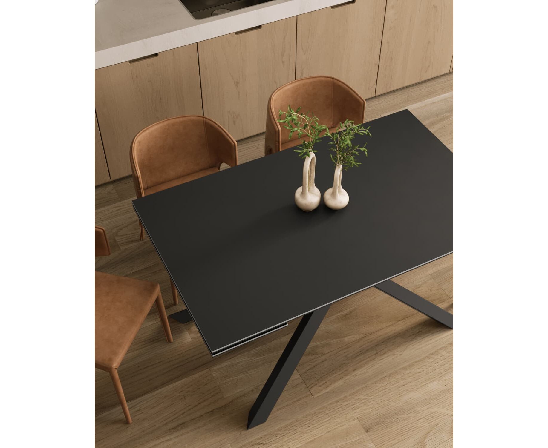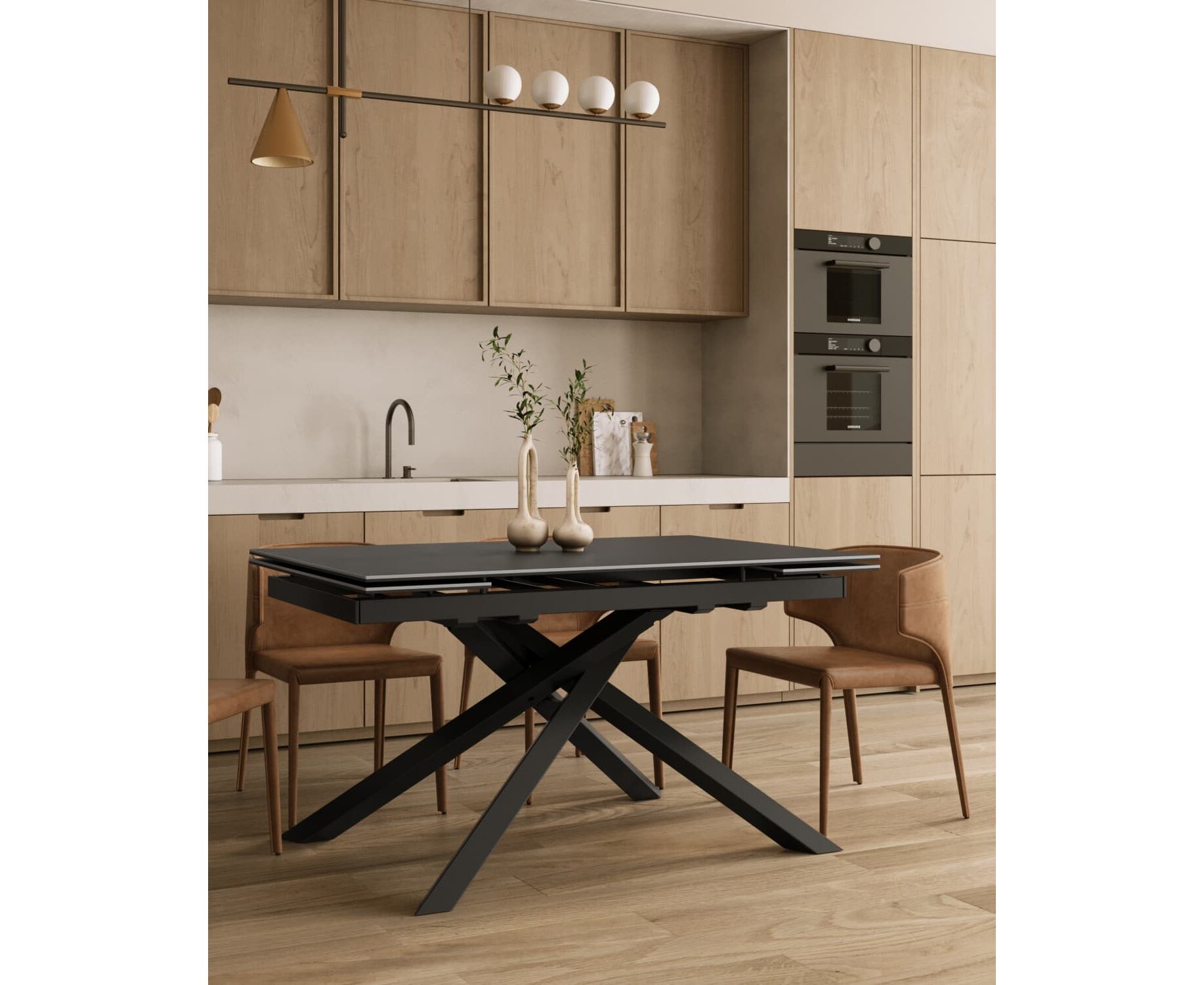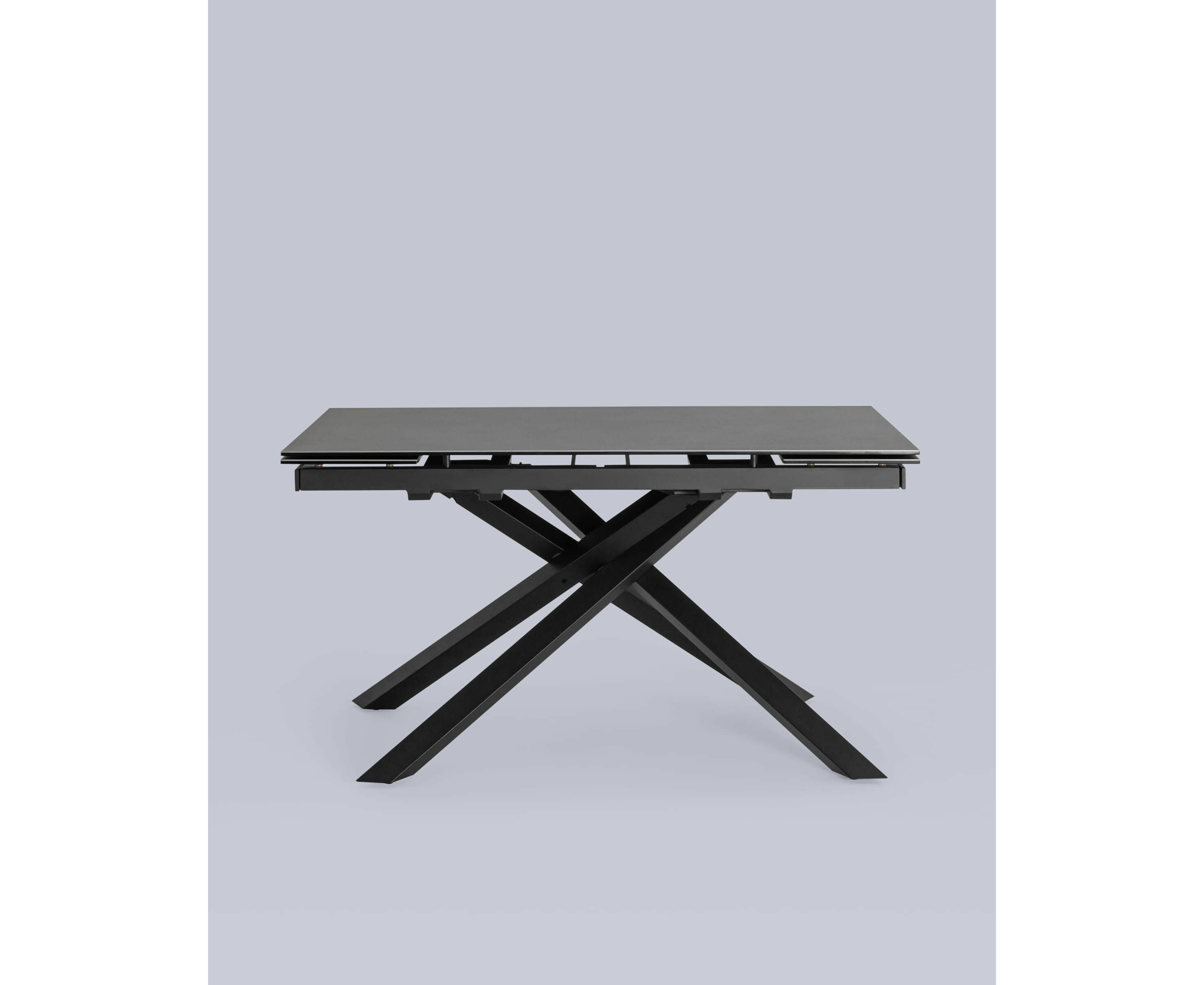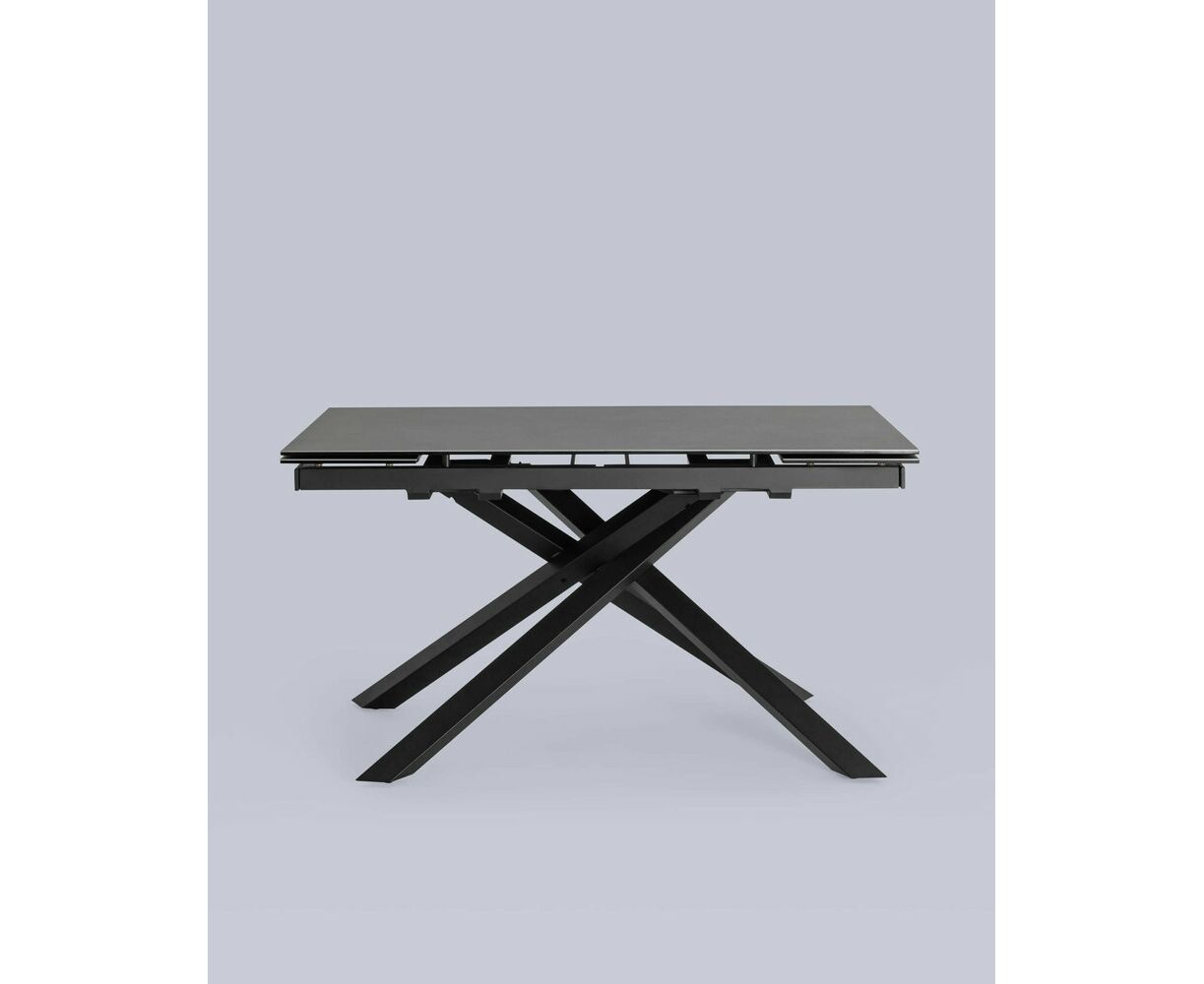 Обеденный стол Альянс с раскладной столешницей. Прямоугольная столешница выполнена из цельной керамики. Материал долговечен, устойчив к термическим и механическим воздействиям. При необходимости длину стола можно увеличить на дополнительные 30 или 60 см за счет спрятанных по бокам раздвижных элементов. Раздвижной механизм прост в использовании и не требует много времени для сборки. Металлические ножки надёжно удерживают всю конструкцию и придают столу оригинальный вид. Обеденный стол Альянс впишется в любой интерьер в современном стиле и станет украшением кухни и обеденной зоны.