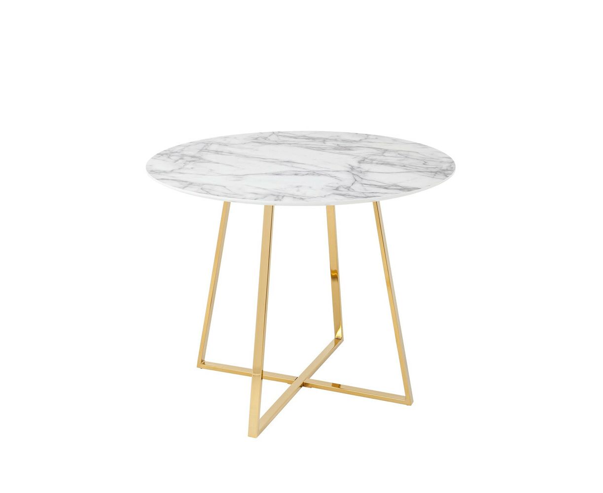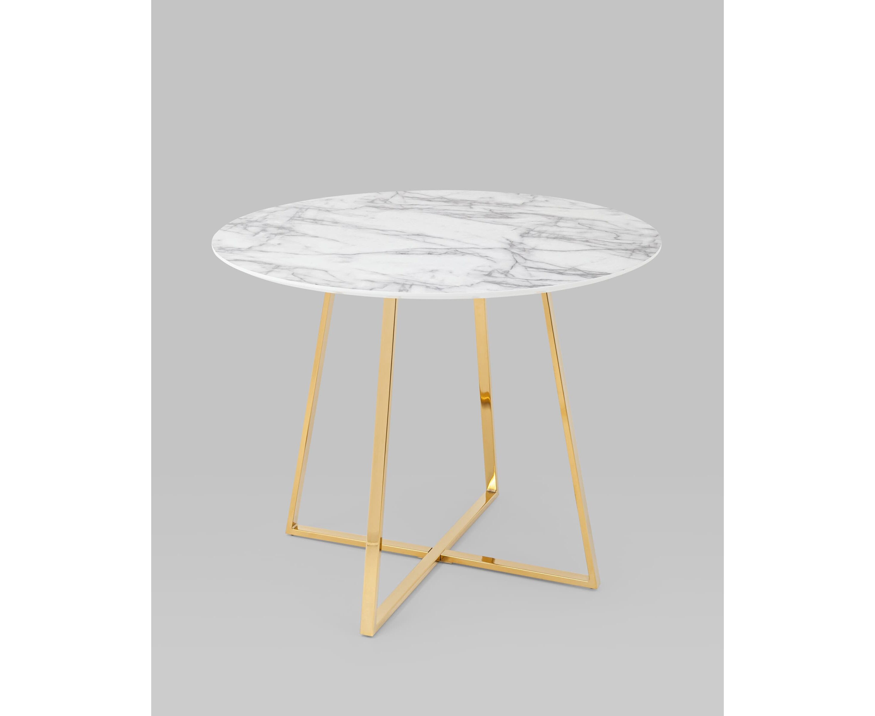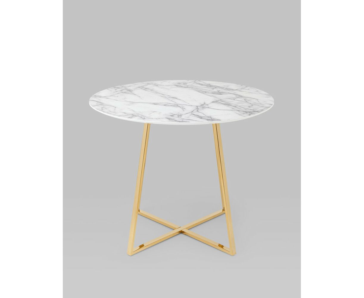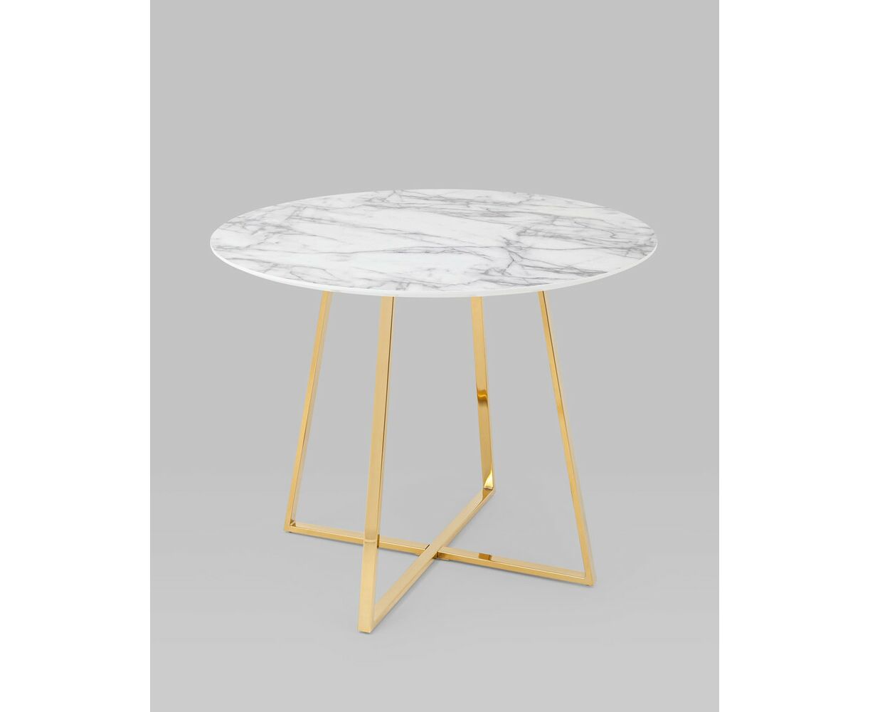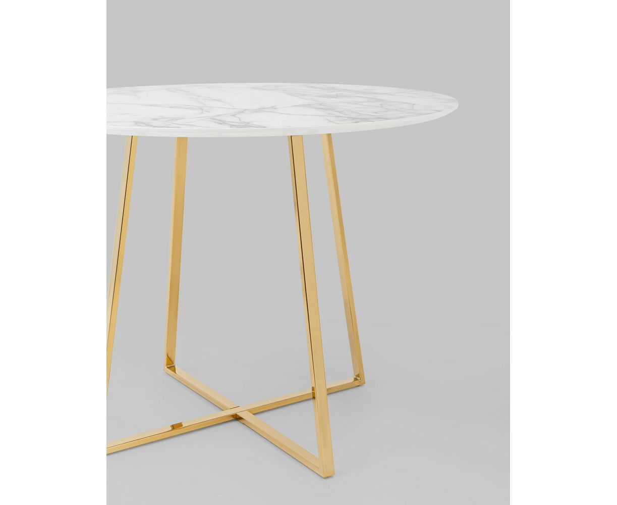 Стол обеденный Дакота 100*100 белый мрамор ножки золото