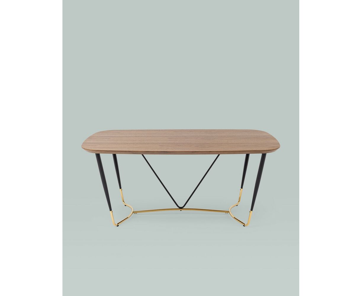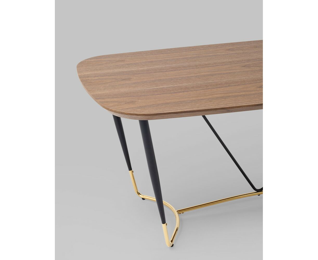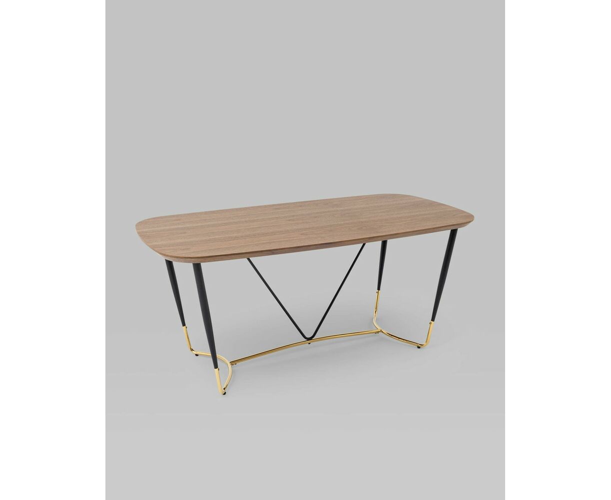 Стильный обеденный стол Даймакс. Прямоугольная столешница с закругленными углами выполнена из МДФ и покрыта шпоном цвета дуба. Придает столу сдержанный вид, создает ощущение уюта и тепла. Металлический каркас в черно-золотом цвете гармонично сочетается со столешницей. Выдерживает нагрузку до 100 кг, основание оснащено подпятниками для предотвращения порчи напольного покрытия. Стол Даймакс дополнит любой современный интерьер кухни или зала.
