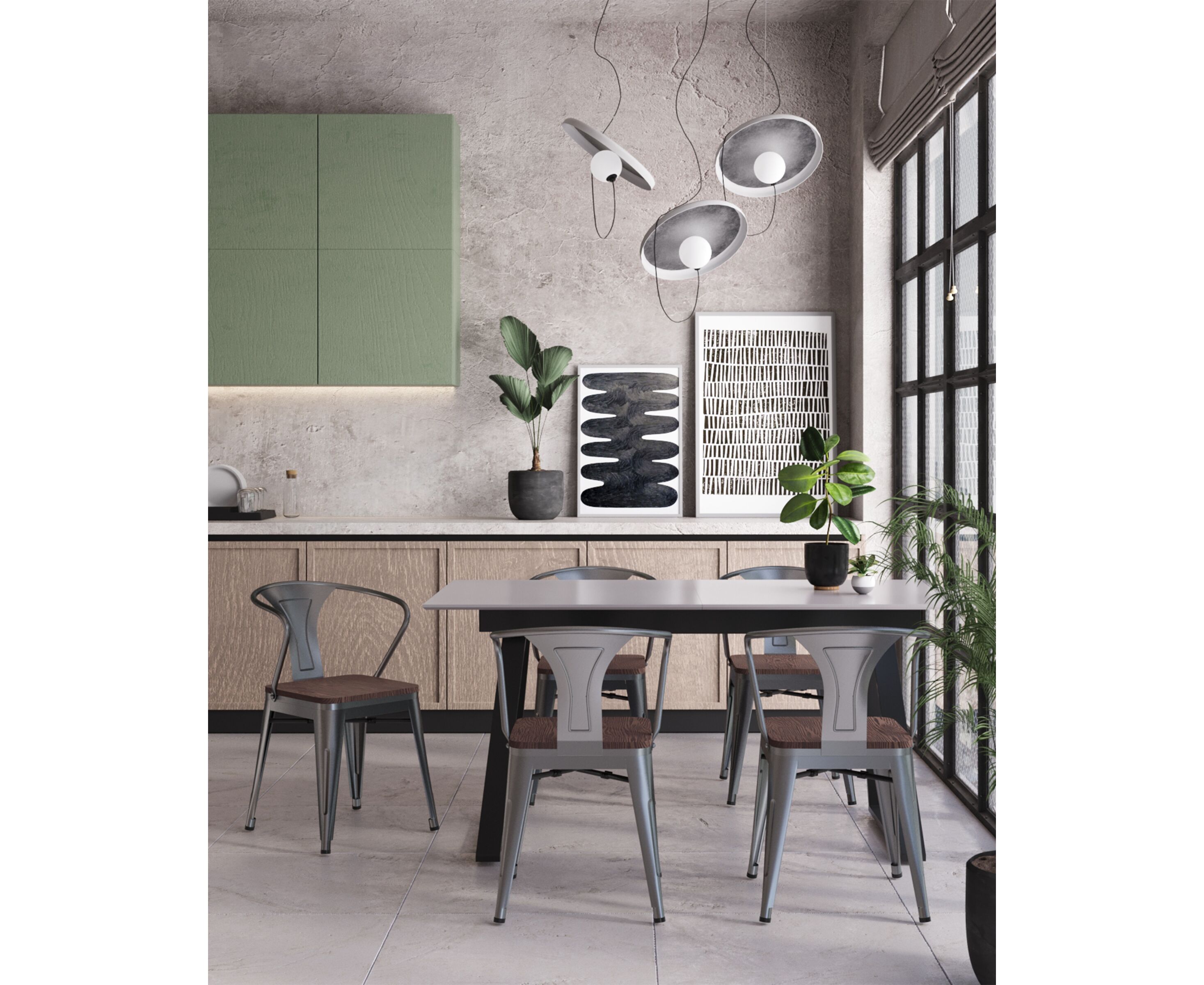 Столешница выполнена из прочного и долговечного МДФ. Серая поверхность столешницы гармонично сочетается с черными металлическими ножками. Простая прямоугольная форма стола позволит легко вписать его в современный интерьер, стол украсит кухню, гостиную или современное кафе, ресторан.