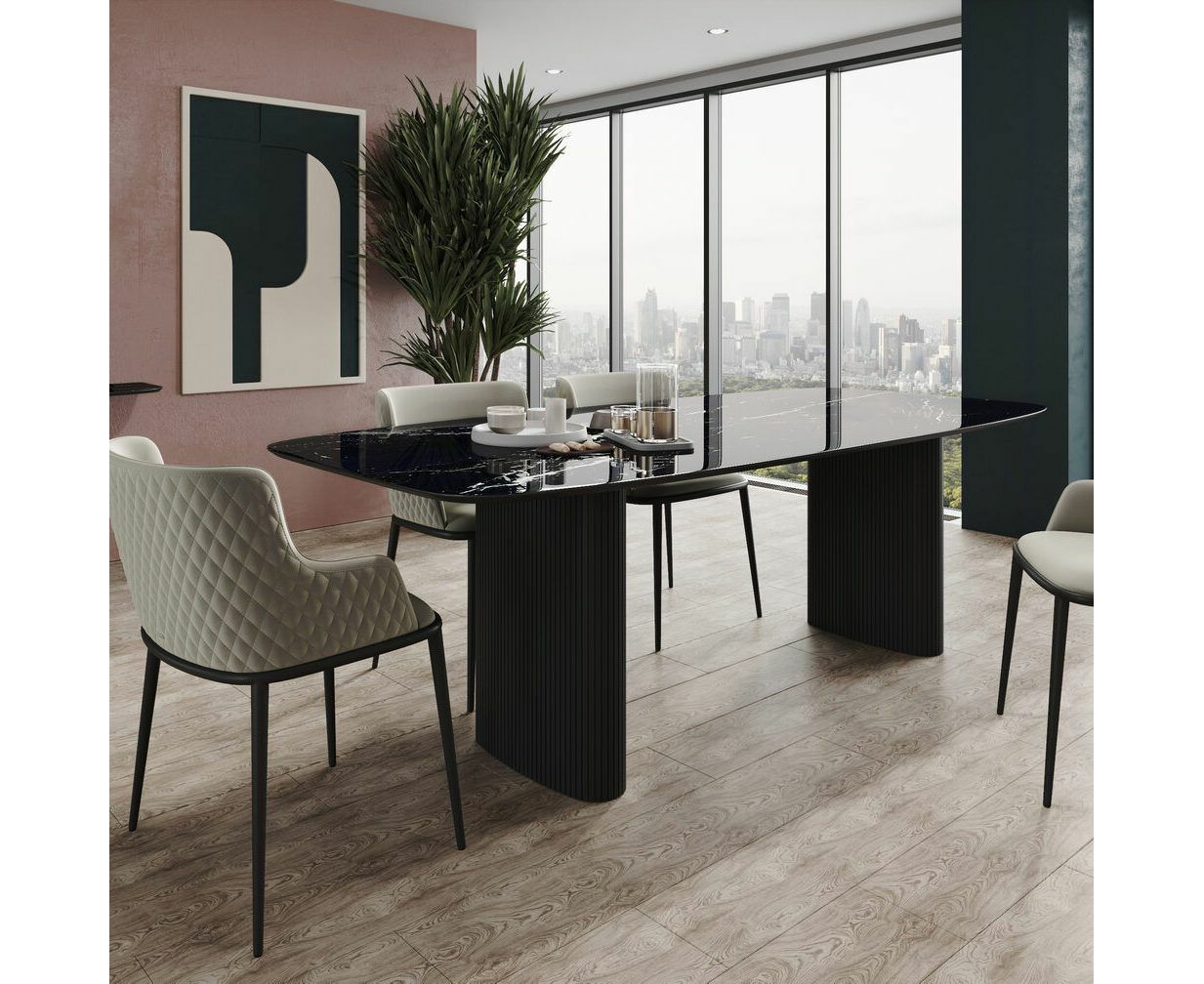 Стол Nolan — это воплощение стиля и изысканности. Он имеет овальную столешницу, изготовленную из керамики, а также металлическое основание. Чёрная металлическая опора придаёт столу сдержанный и элегантный вид, что делает его идеальным дополнением для различных интерьеров, особенно в современном и индустриальном стиле. Столешница из керамики привносит нотки натуральности и тепла, создавая уютную атмосферу в помещении. Стол Nolan гармонично сочетает в себе современные и природные элементы, что позволяет ему легко вписаться в любой интерьер.