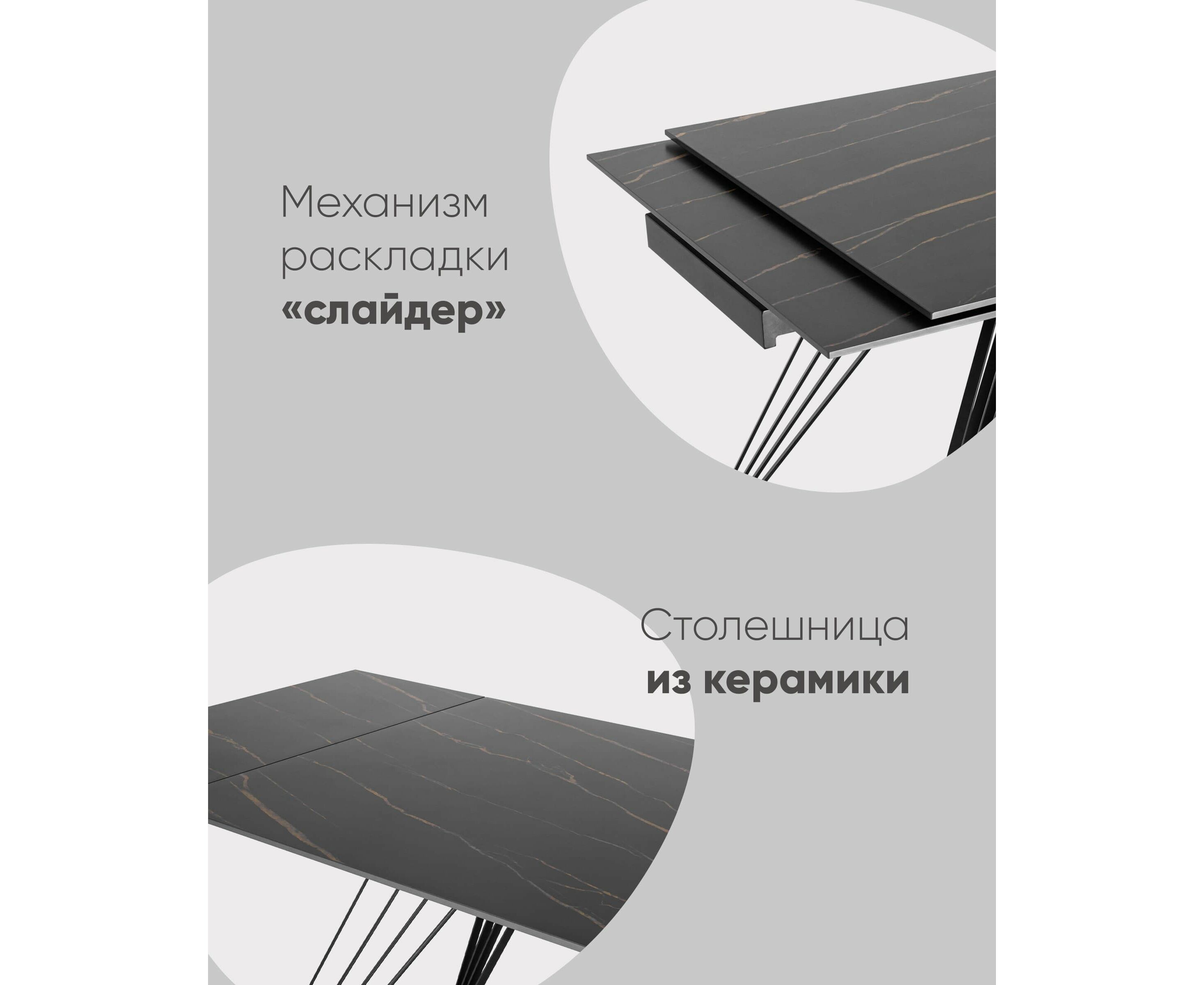 Стол обеденный Пандора раскладной 180-280*90 керамика темная