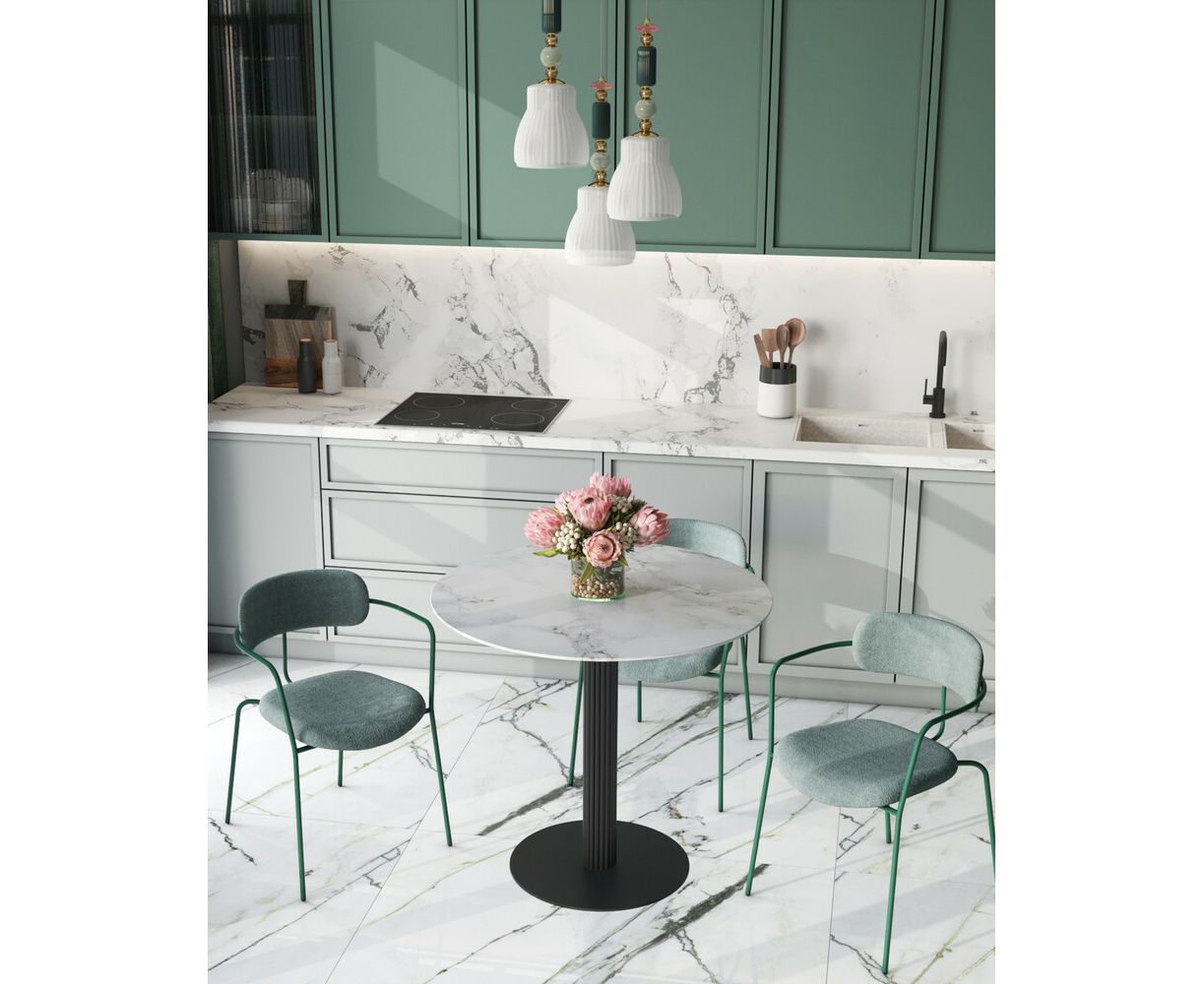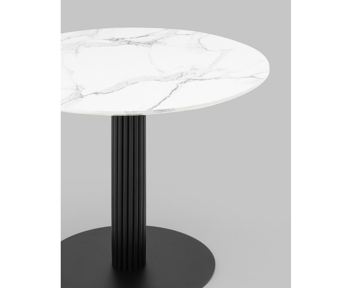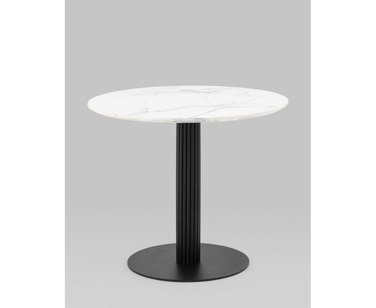 Стол обеденный Stem D90 мрамор, столешница МДФ, ножка металлическая черная