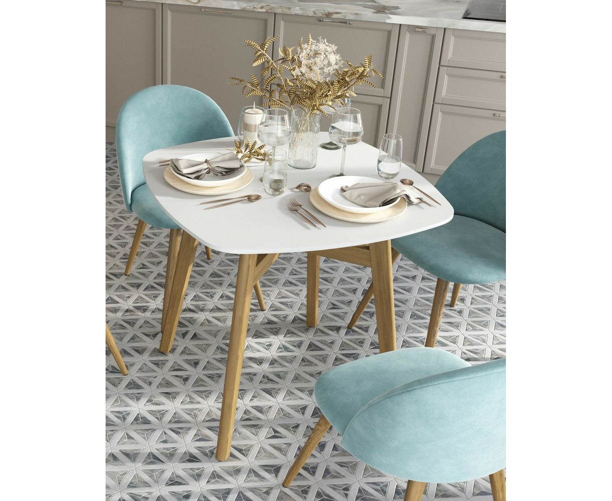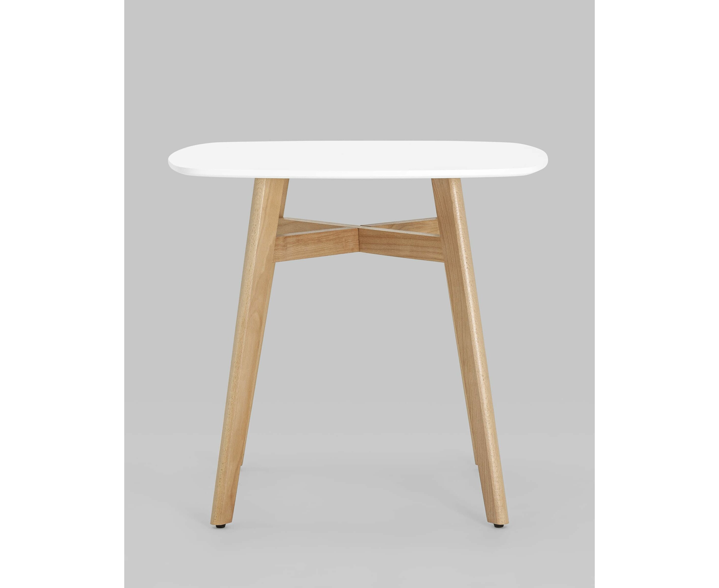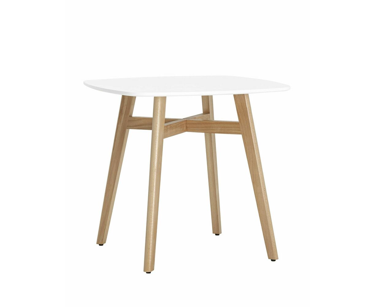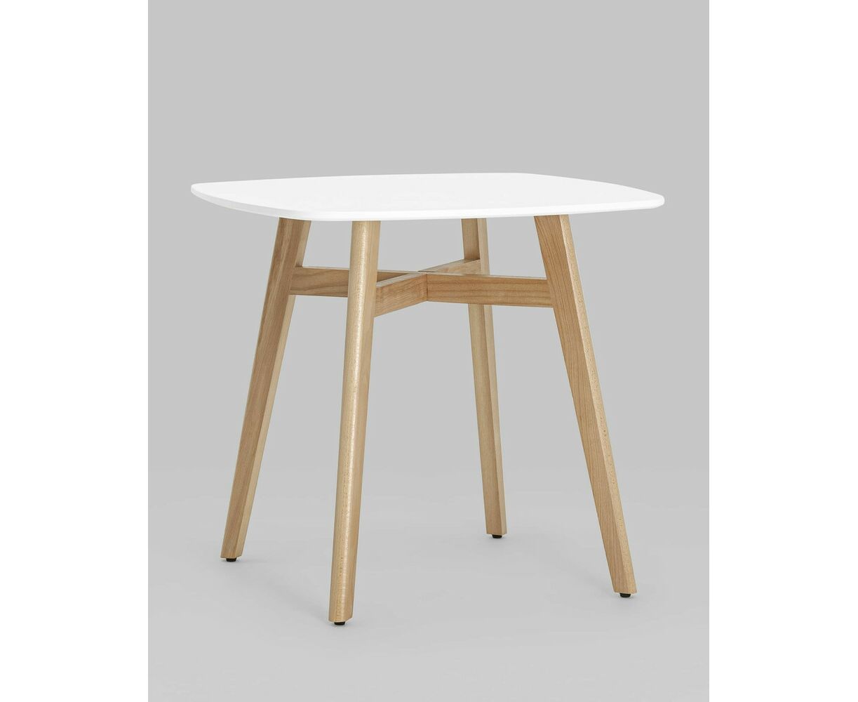 Оригинальный стол в современном стиле станет прекрасным дополнением кухни или обеденной зоны. Квадратная столешница выполнена из МДФ, окрашенного в белый цвет. Ножки стола изготовлены из массива бука. Размеры стола: 80*80 см. Высота: 73 см.