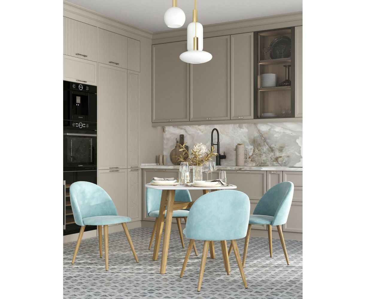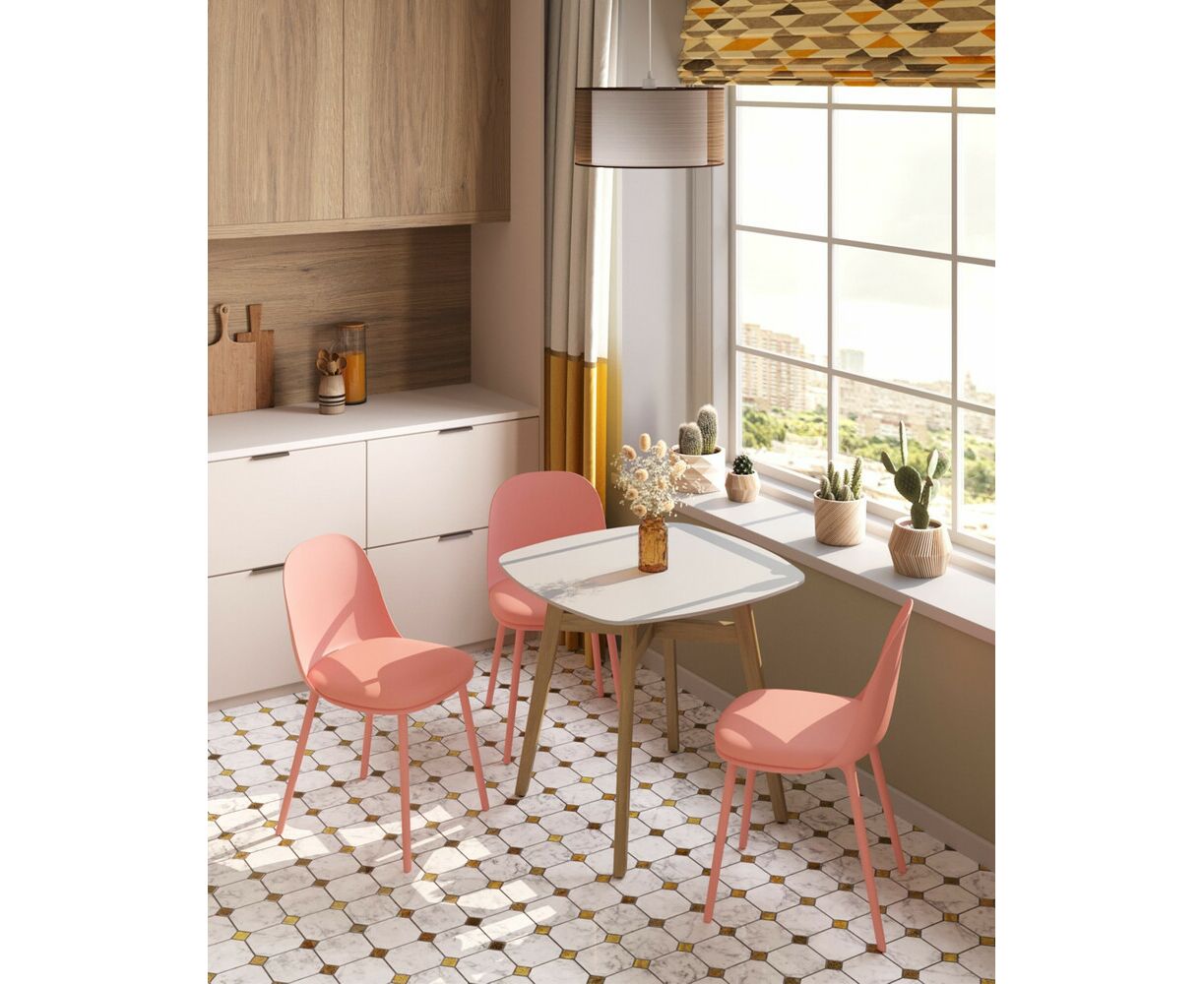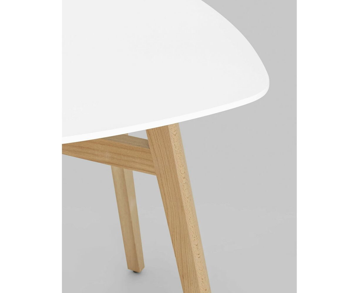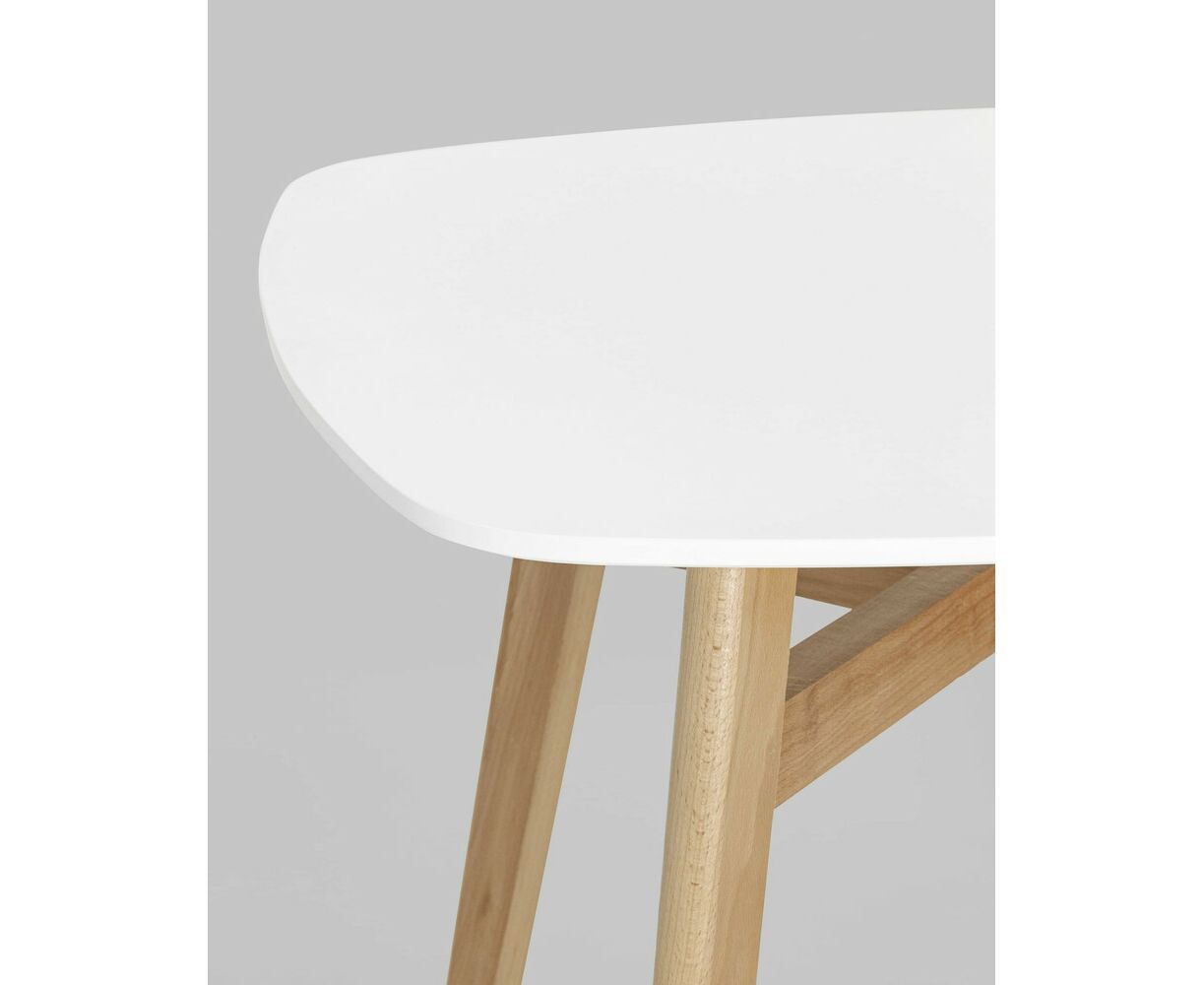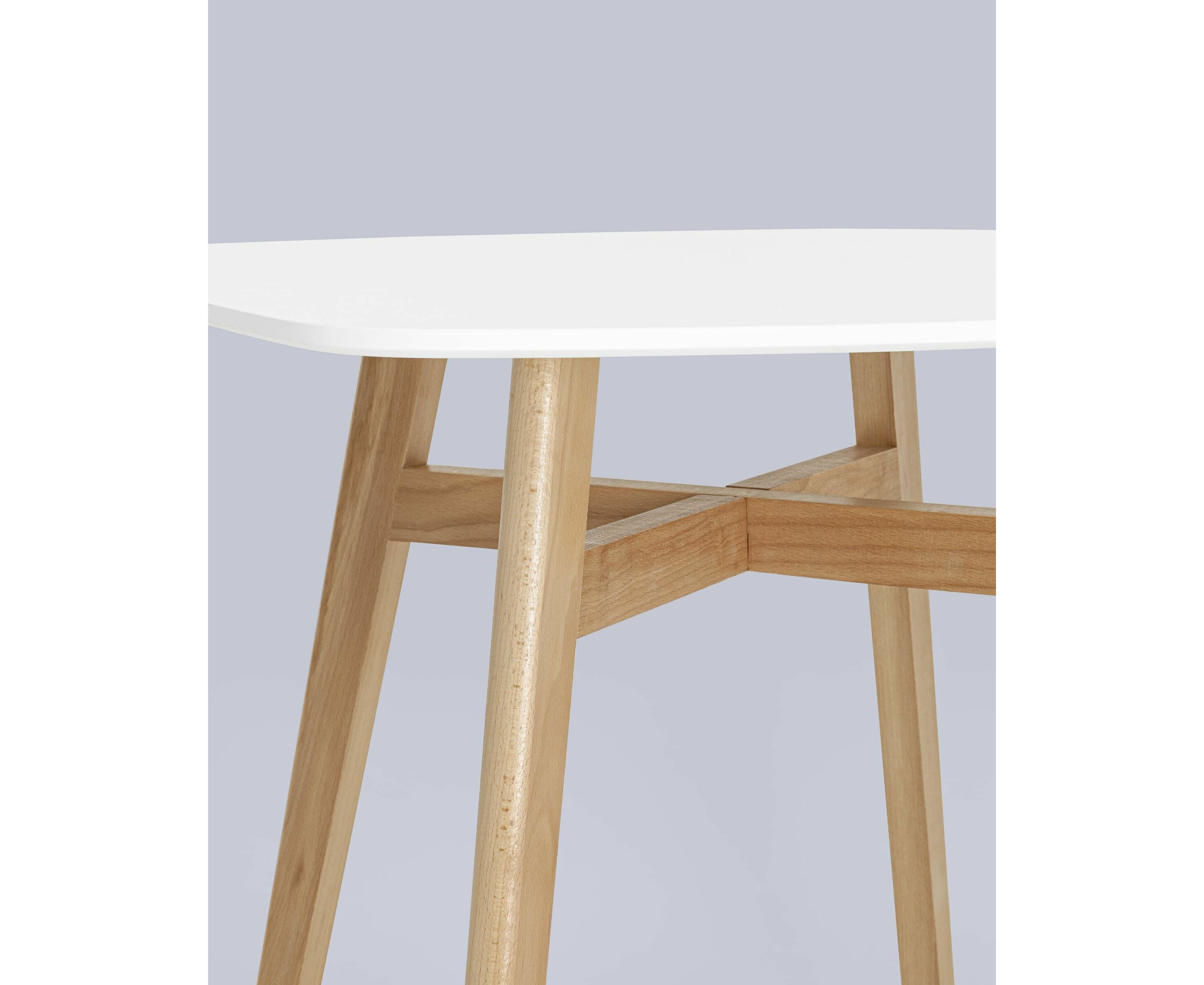 Оригинальный стол в современном стиле станет прекрасным дополнением кухни или обеденной зоны. Квадратная столешница выполнена из МДФ, окрашенного в белый цвет. Ножки стола изготовлены из массива бука. Размеры стола: 80*80 см. Высота: 73 см.