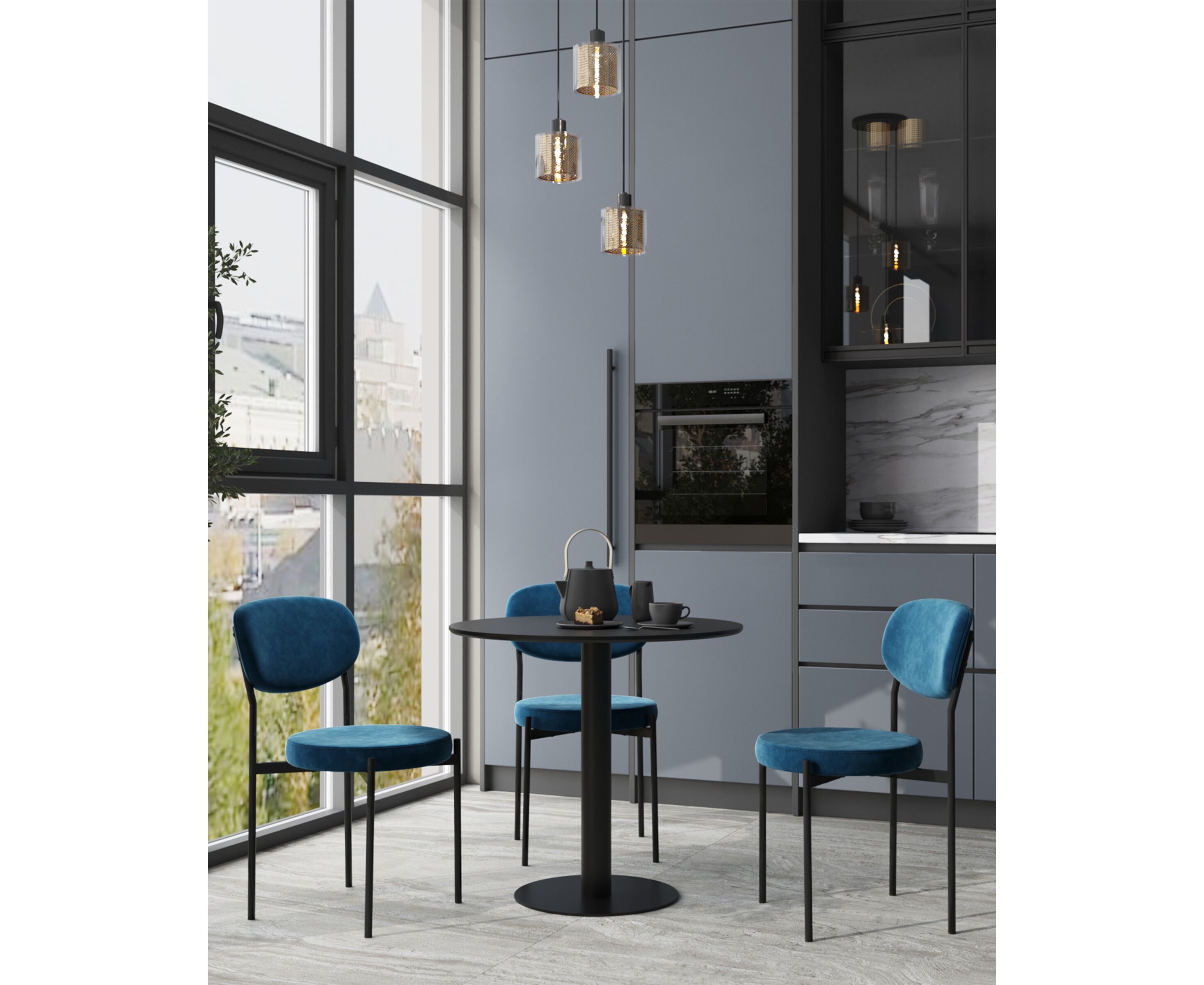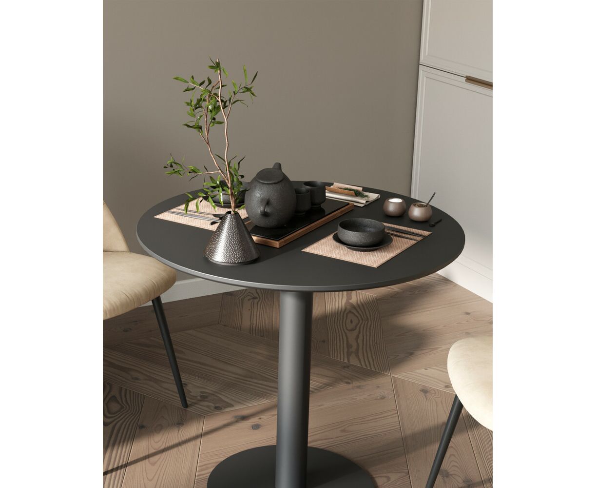 Стильная модель обеденного стола с плавными очертаниями украсит кухню, столовую, дачную террасу или современное кафе. Стильная ножка изготовлена из металла в черном цвете, диаметр столешницы 80 см.