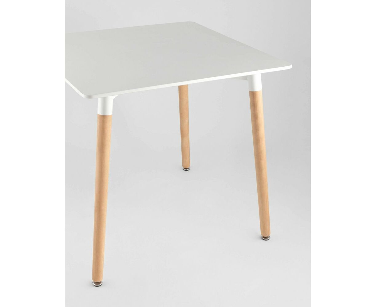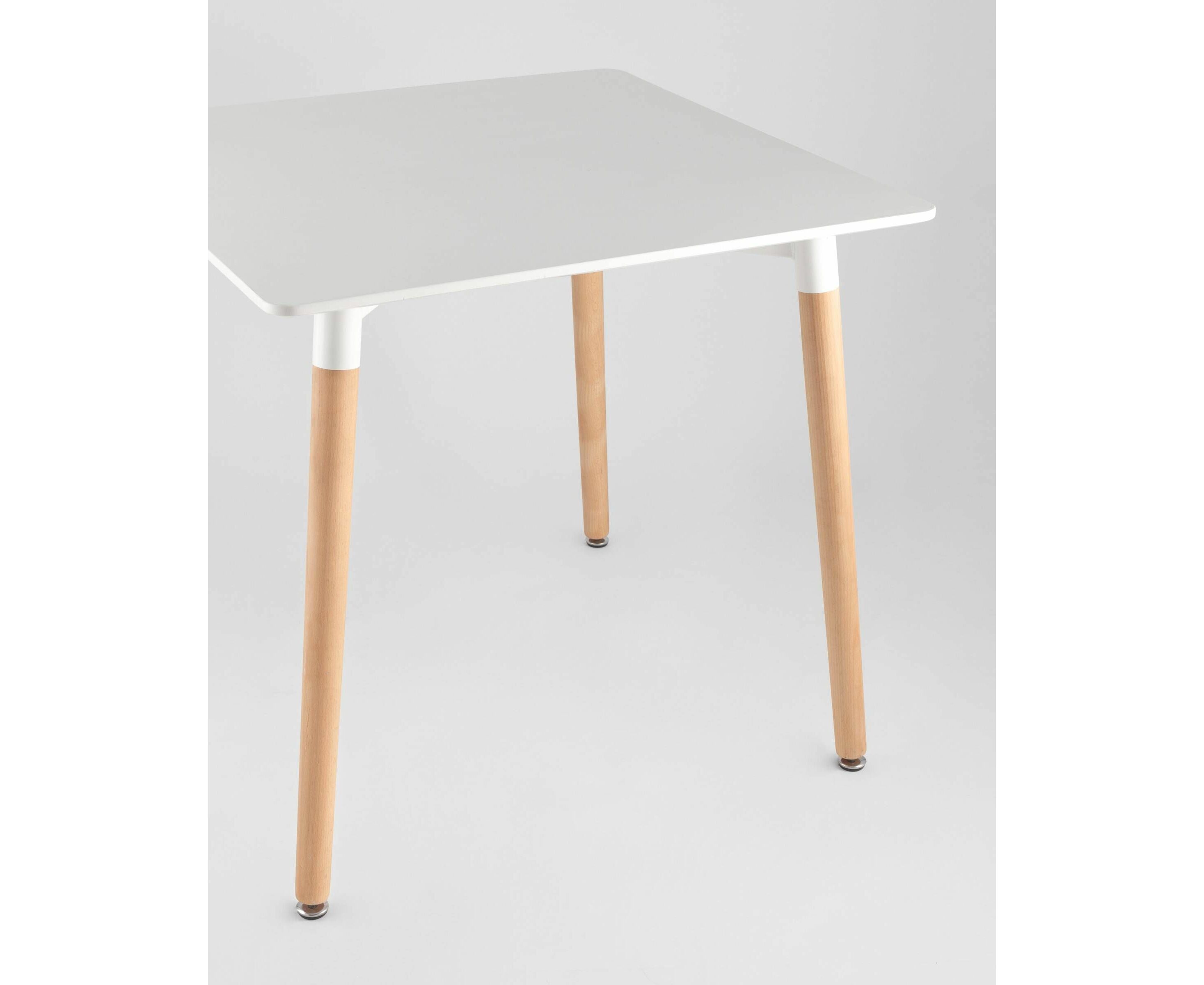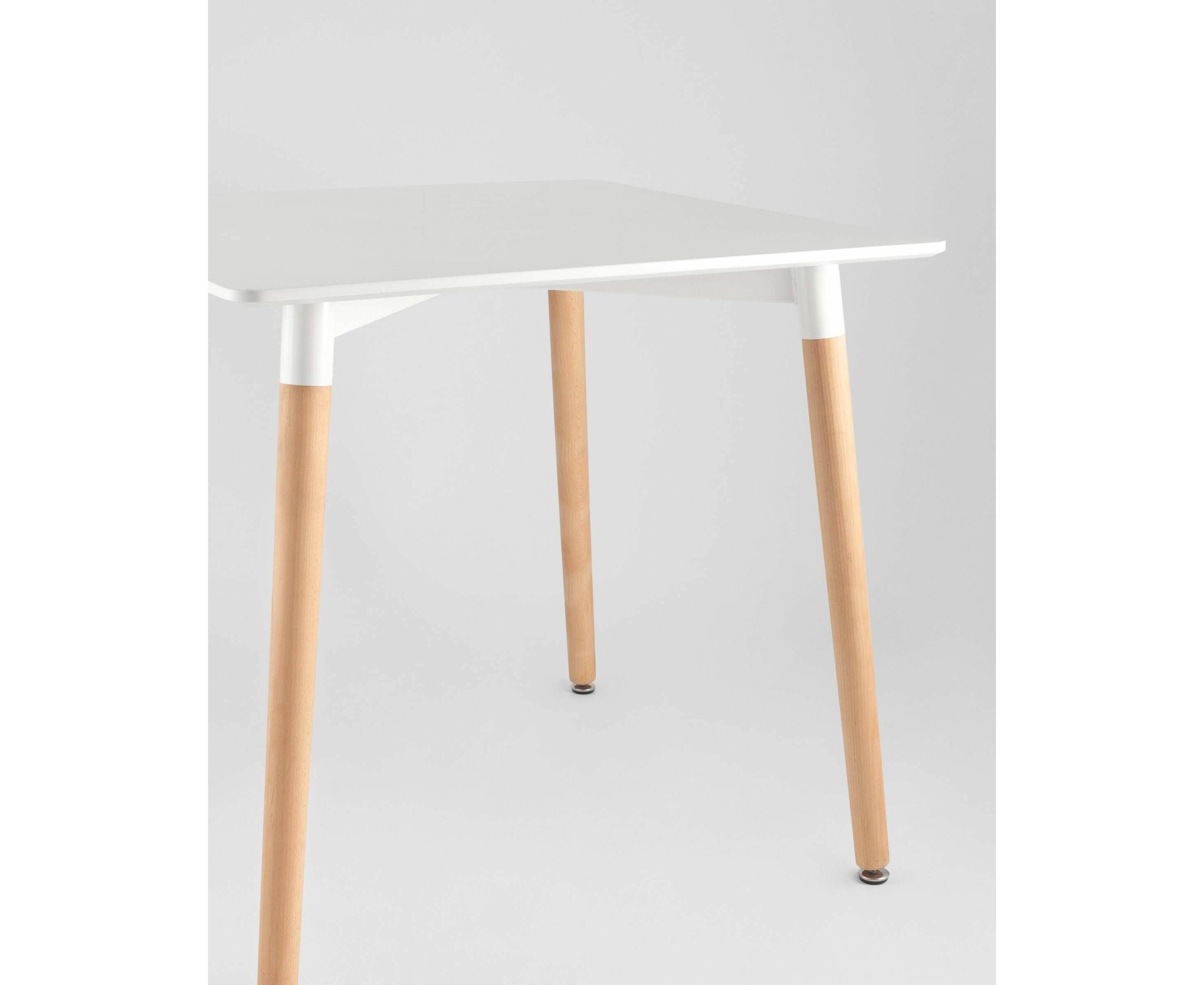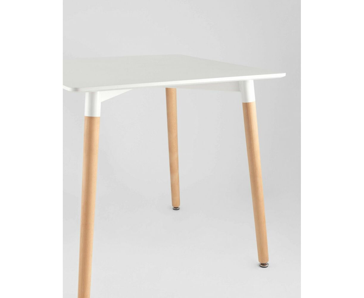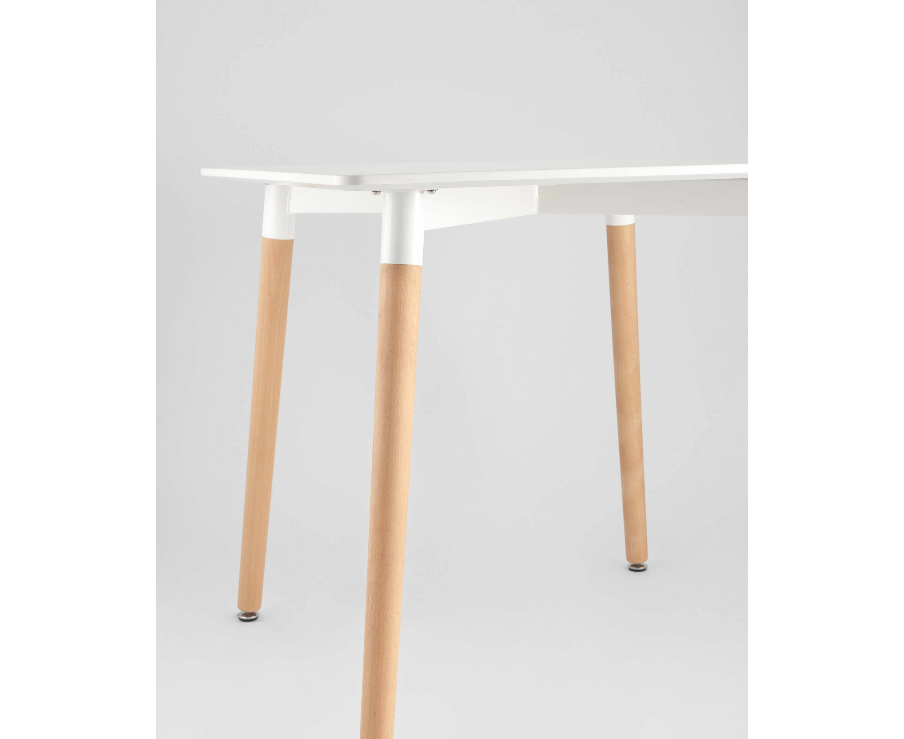 Стол изготовлен из высококачественного материала столешницей белого цвета из МДФ.Четыре ножки изготовлены из массива светлого бука.