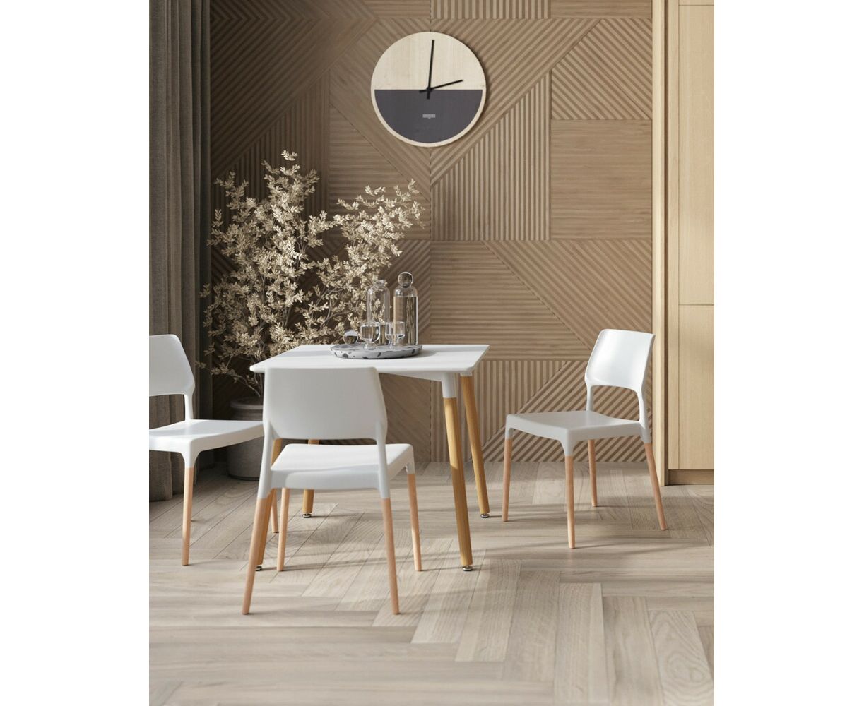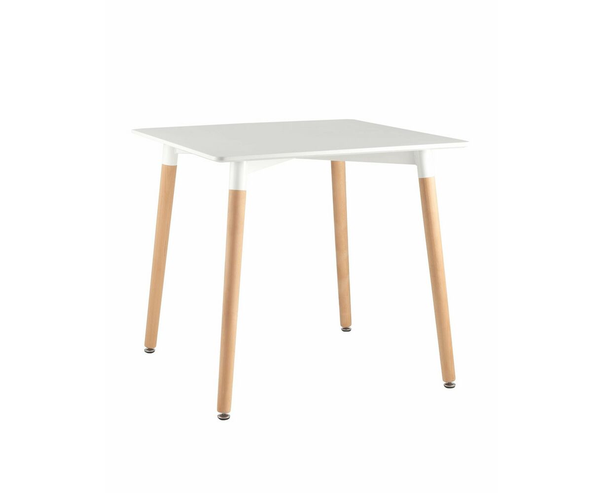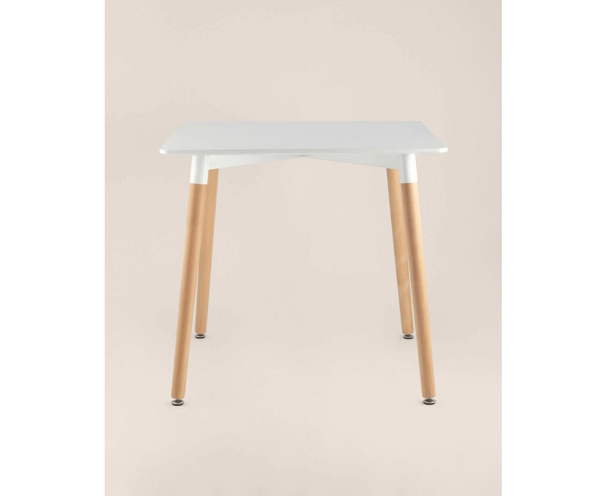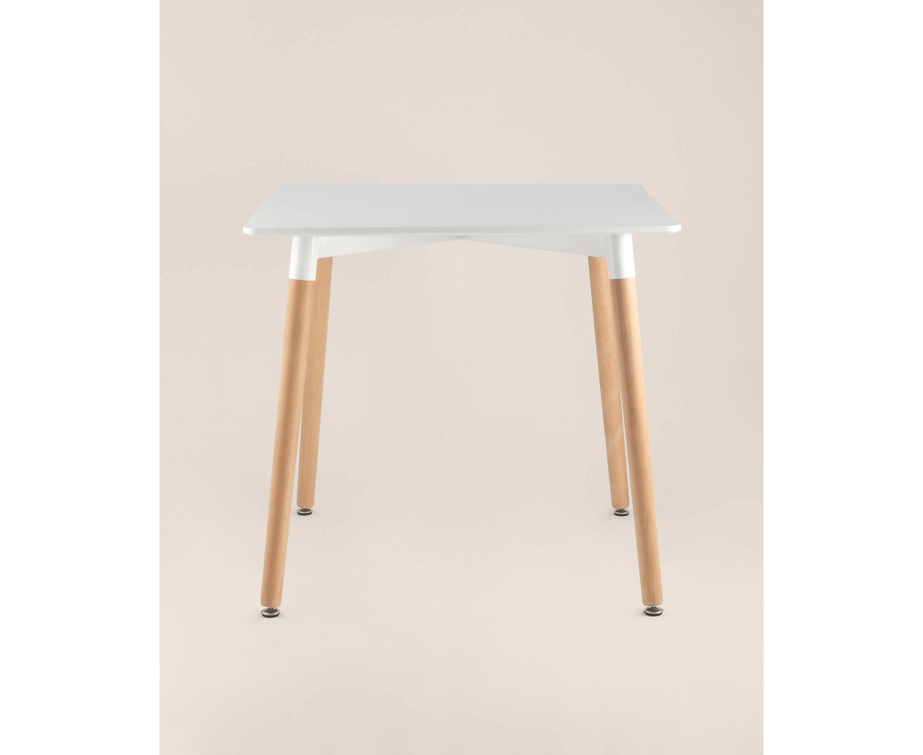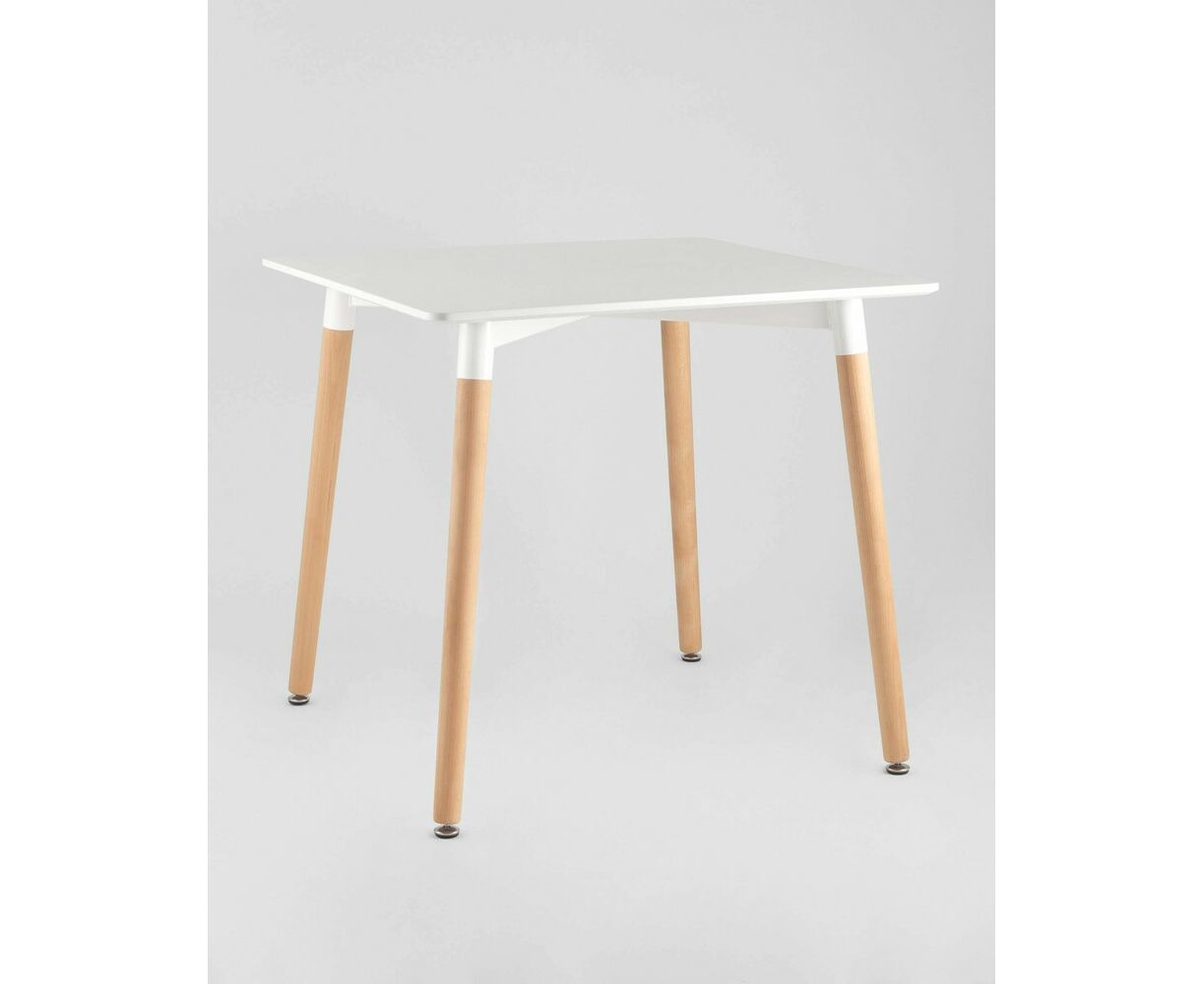 Стол изготовлен из высококачественного материала столешницей белого цвета из МДФ.Четыре ножки изготовлены из массива светлого бука.