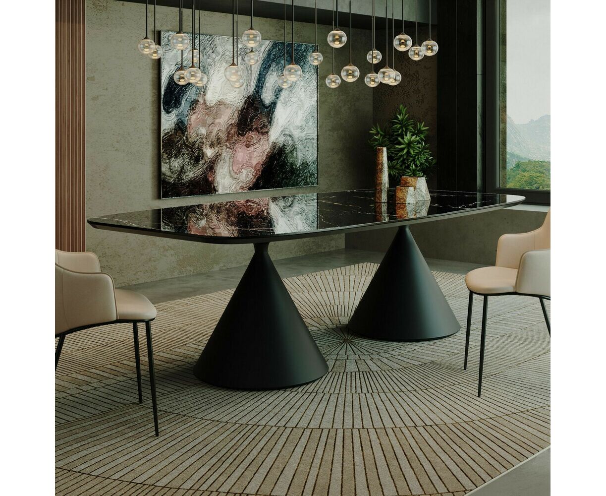 Стол с овальной столешницей не раскладывающийся, МДФ 19 мм с керамикой 6 мм. Опоры стола выполнены в форме конуса и изготовлена из прочного металла. Цвет опоры - черный, что придает столу современный и стильный вид. Черный цвет добавляет элегантности и характера столу, при этом легко сочетается с различными интерьерными стилями.