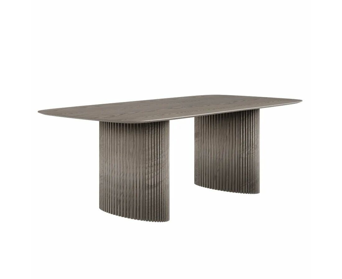 Стол оснащен прямоугольной столешницей с закругленными углами, выполненной из шпона, что обеспечивает прочность и устойчивость к царапинам и пятнам. Опора стола выполнена из МДФ, покрытого натуральным шпоном, что добавляет изделию элегантности и гармонично вписывается в современные и классические интерьеры.