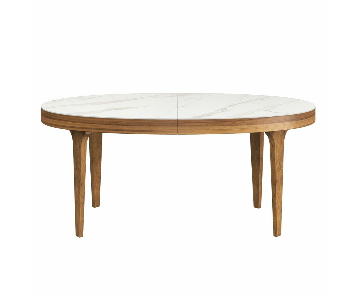 Стол с овальной столешницей, раскладывающийся от 160 до 200 cм, представляет собой элегантное и удобное решение для обеденной зоны. Столешница выполнена из матовой или глянцевой керамики , что придает ей стильный и современный вид. Благодаря возможности раскладывания, этот стол идеально подойдет как для небольших, так и для просторных помещений, позволяя удобно разместить большее количество гостей.
