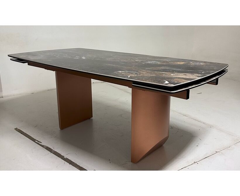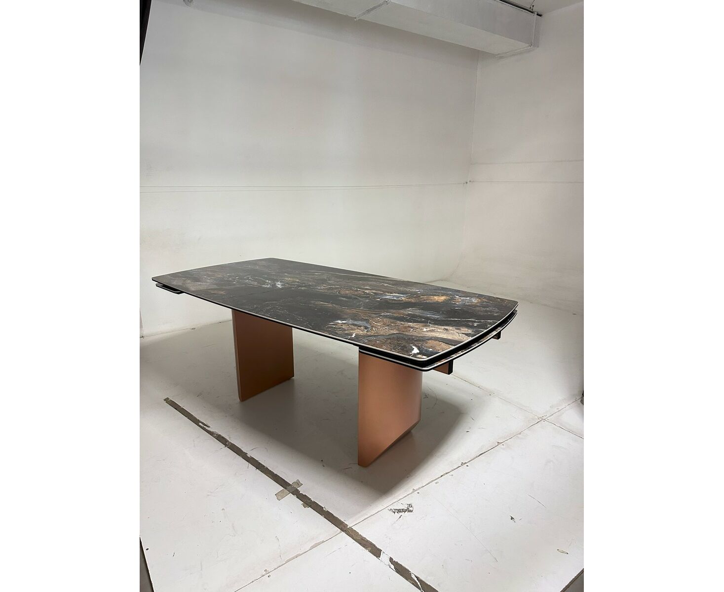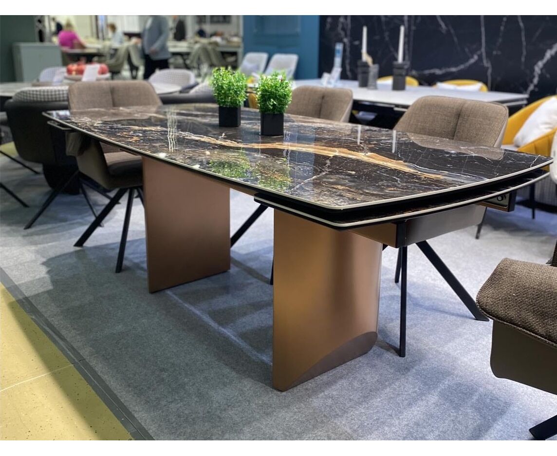 Стол ПУАНТО 200 TITANIUM LAWA NERO, керамика / МЕДЬ каркас М-City