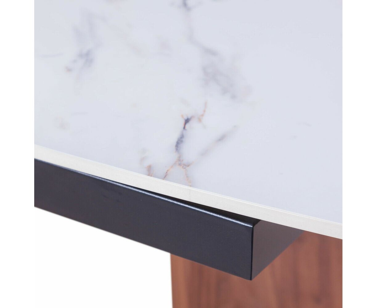 Столешница выполнена из высококачественной керамики, которая устойчива к царапинам и легко очищается от загрязнений. Керамика придаёт изделию современный вид и долговечность.