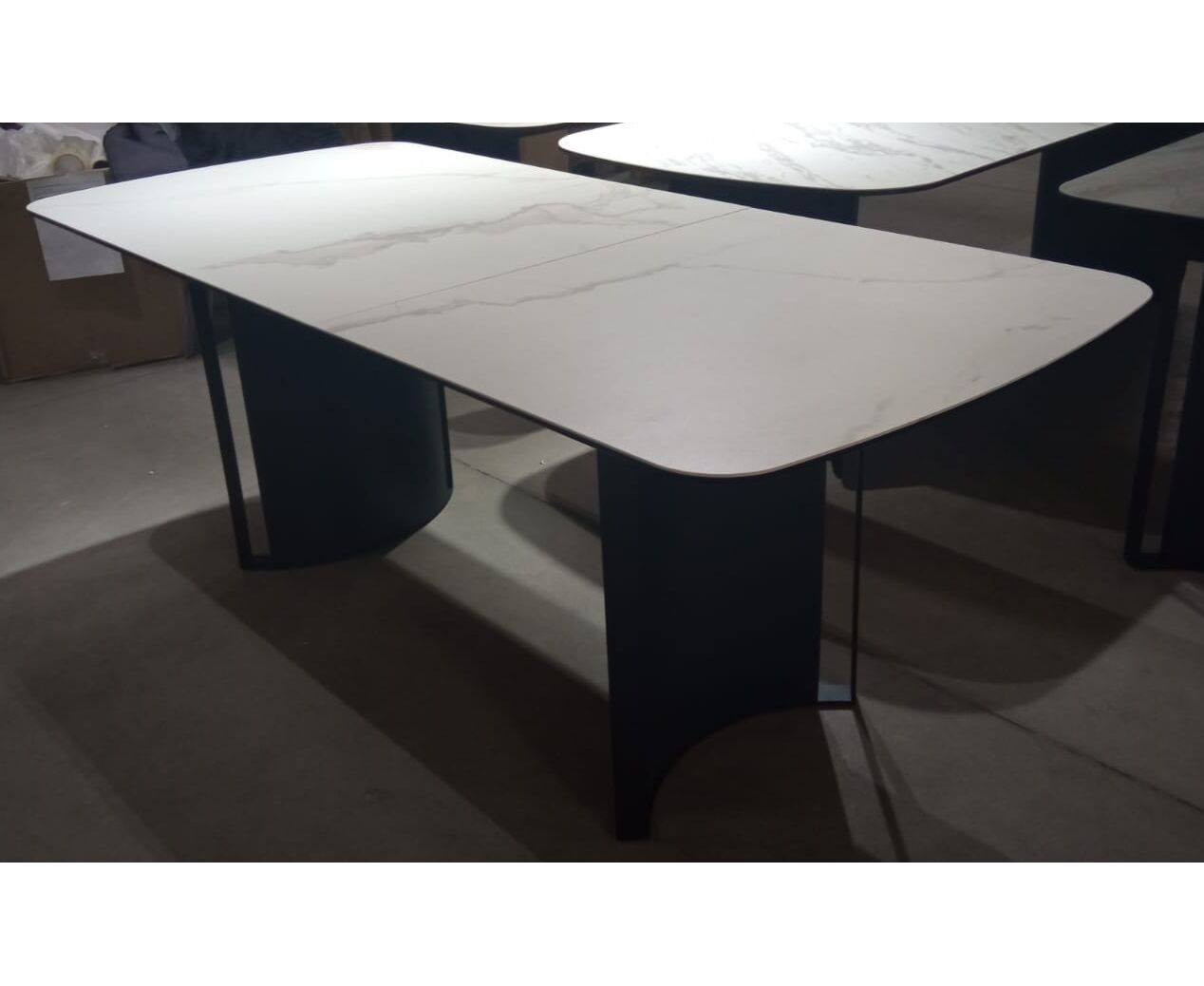 Стол RASMUS 160 TL-45 Белый мрамор, испанская керамика / черный каркас М-City