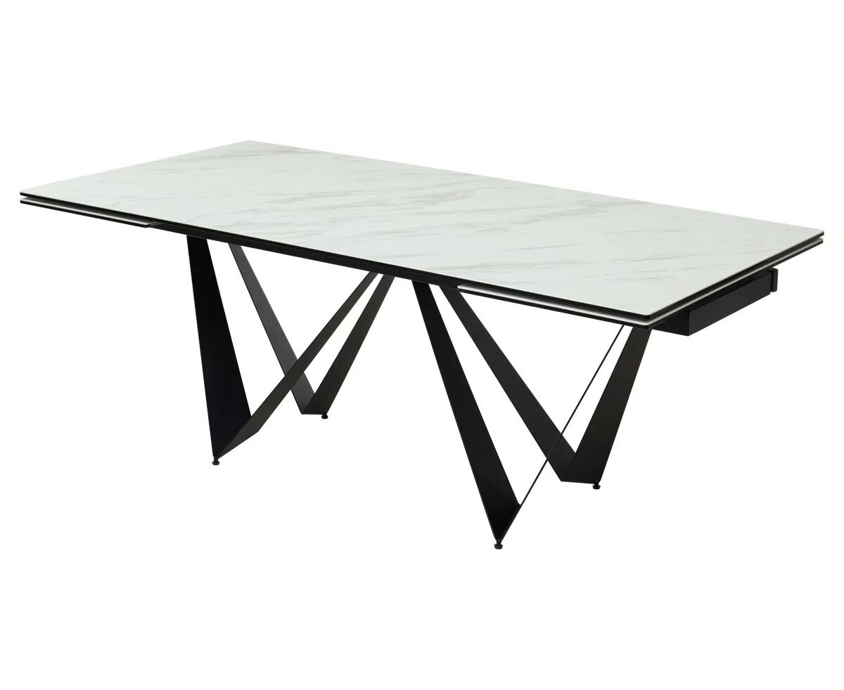Стол RIETI 200 KL-99 Белый мрамор матовый, итальянская керамика / черный каркас М-City