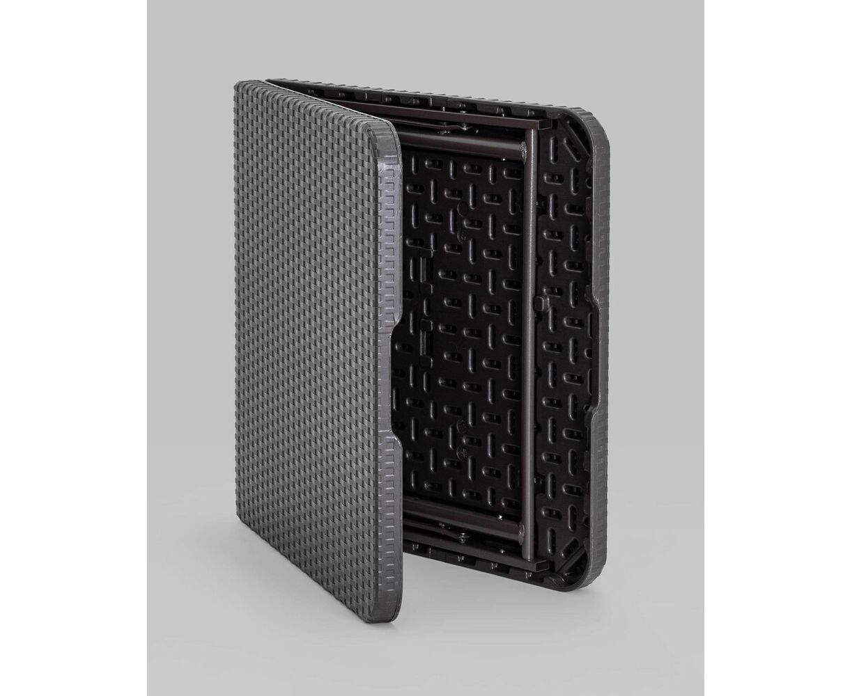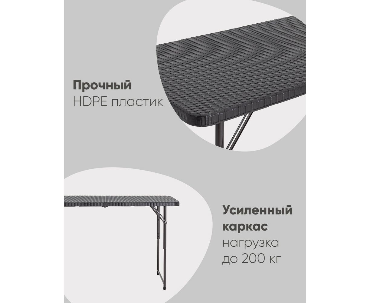 Для каркаса используется стальная труба особой прочности 25*1 мм, а столешница выполнена из 100% не переработанного полиэтилена HDPE (полиэтилен высокой плотности). Считается одним из более безопасных видов пластика. HDPE пластик выдерживает высокие нагрузки, не трескается при ударной нагрузке, эластичен в диапазоне температур от –70 до +100 °С.