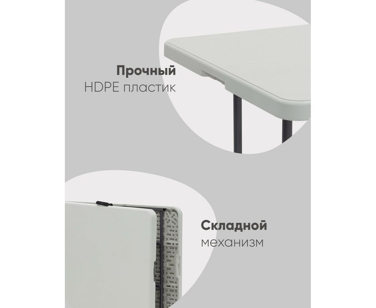 ">Для каркаса используется стальная труба особой прочности, а столешница выполнена из 100% не переработанного полиэтилена HDPE (полиэтилен высокой плотности). Считается одним из более безопасных видов пластика. HDPE пластик выдерживает высокие нагрузки, не трескается при ударной нагрузке, эластичен в диапазоне температур от –70 до +100 °С.