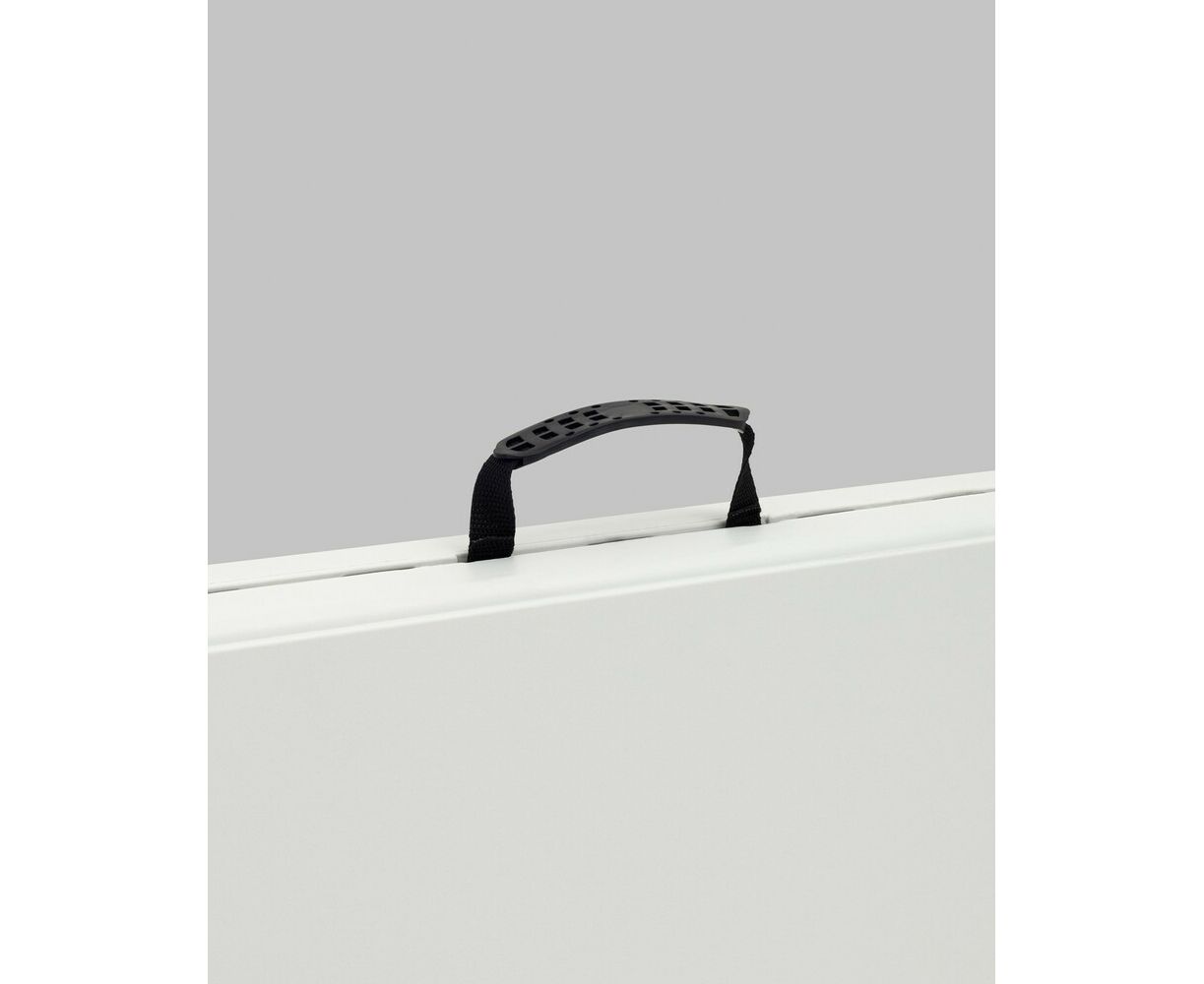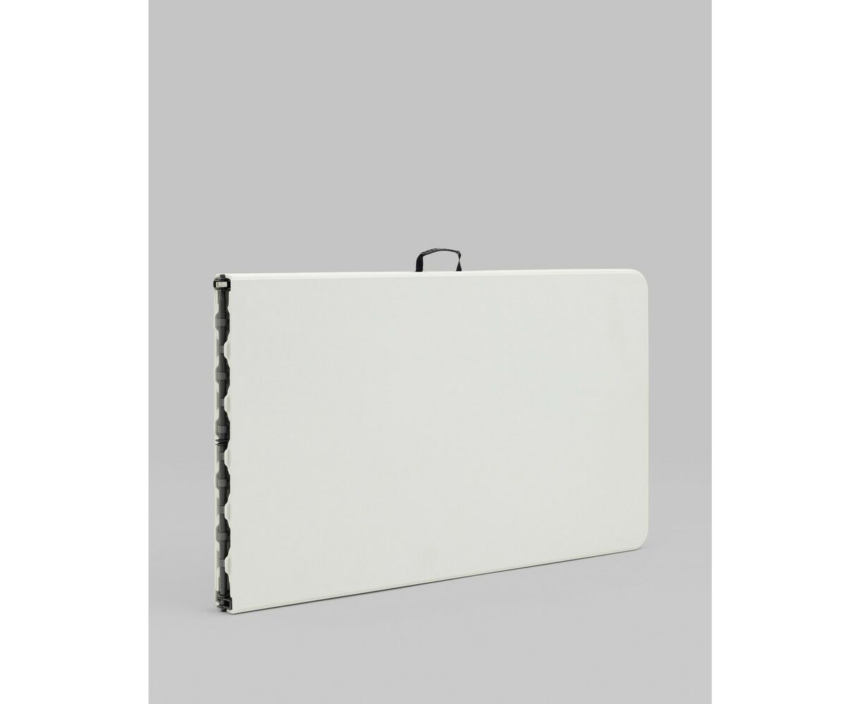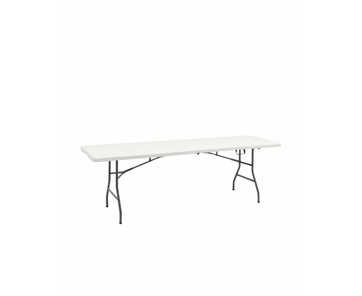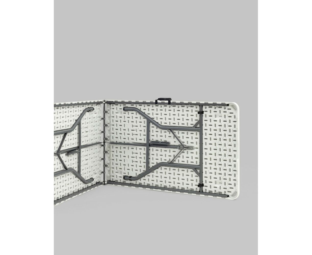 Экземпляр в коллекции эргономичной и комфортной мебели – складной пластиковый стол-книжка 240 см. В сложенном виде модель занимает минимум места, а при необходимости ее можно перевезти в багажнике легкового автомобиля. В собранном состоянии стол обладает внушительными размерами: при длине столешницы в 240 сантиметров за ним с легкостью разместятся как минимум 6 человек. Мебель с такими параметрами рекомендована для крупных выездных мероприятий – в том числе и для тех, где предусмотрен фуршет.