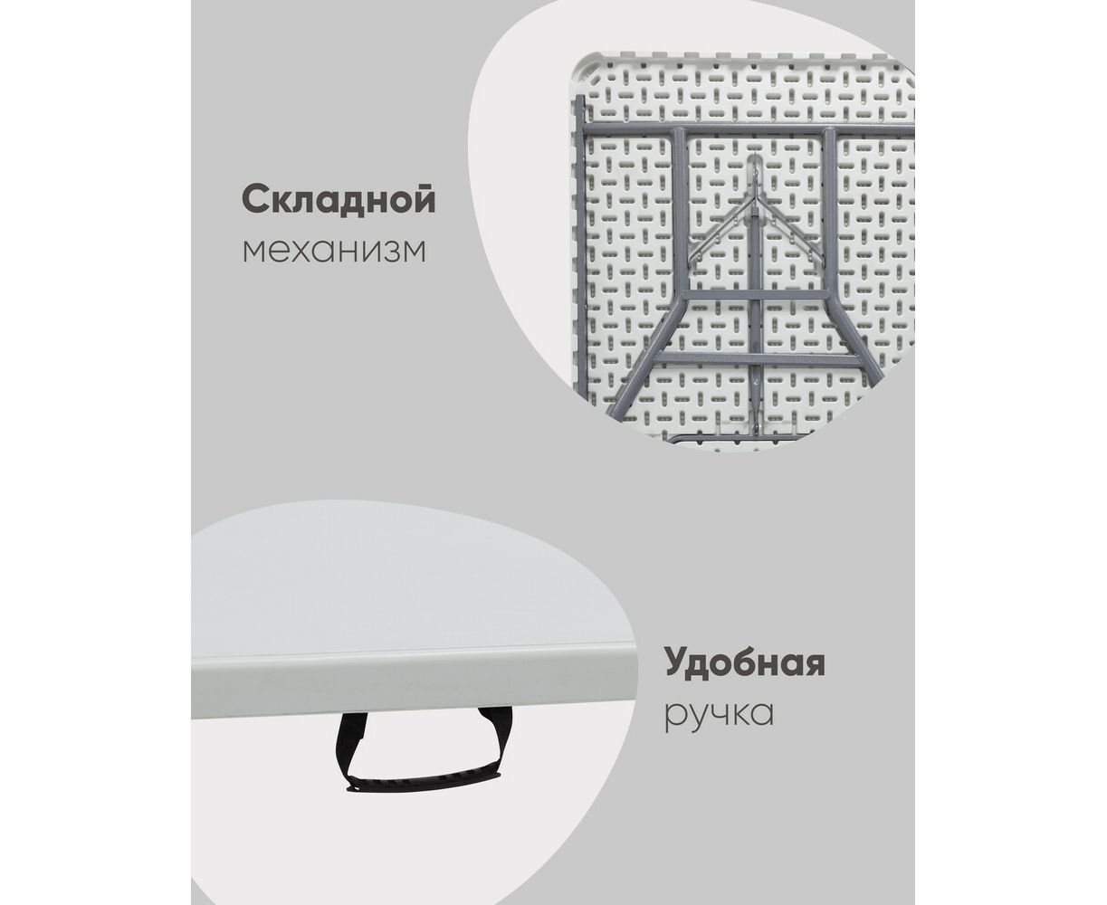 Складной пластиковый стол входит в перечень мебели, особенно востребованной для кейтеринга. Данная модель длиной 180 сантиметров позволит с комфортом рассадить участников и гостей различных выездных мероприятий, а при организации банкетов, свадеб и корпоративных праздников поможет создать комфортную обстановку для фуршета. Модель отличается сдержанным и универсальным видом, благодаря чему впишется в концепцию любого события.