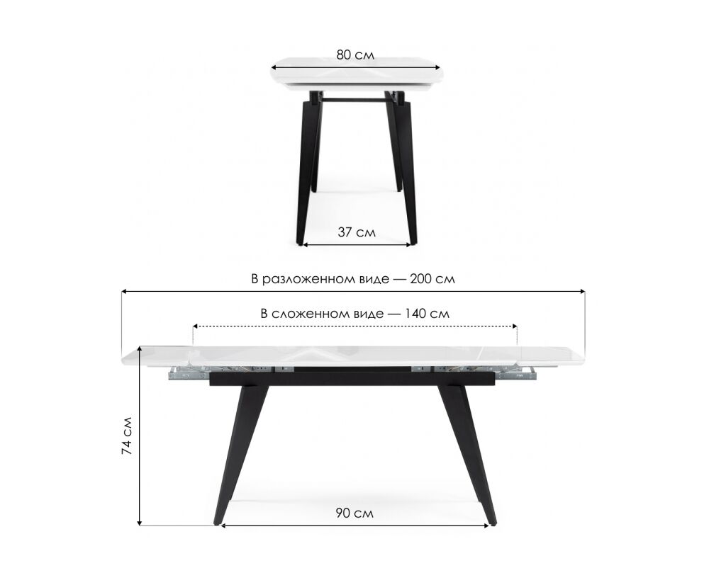 Стол стеклянный Элис 140(200)х80 белый / черный