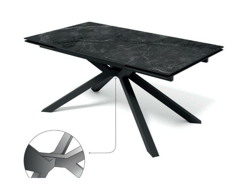 Стол ТАНГО 160 CALACATTA GOLD , керамика / Черный каркас, М-City