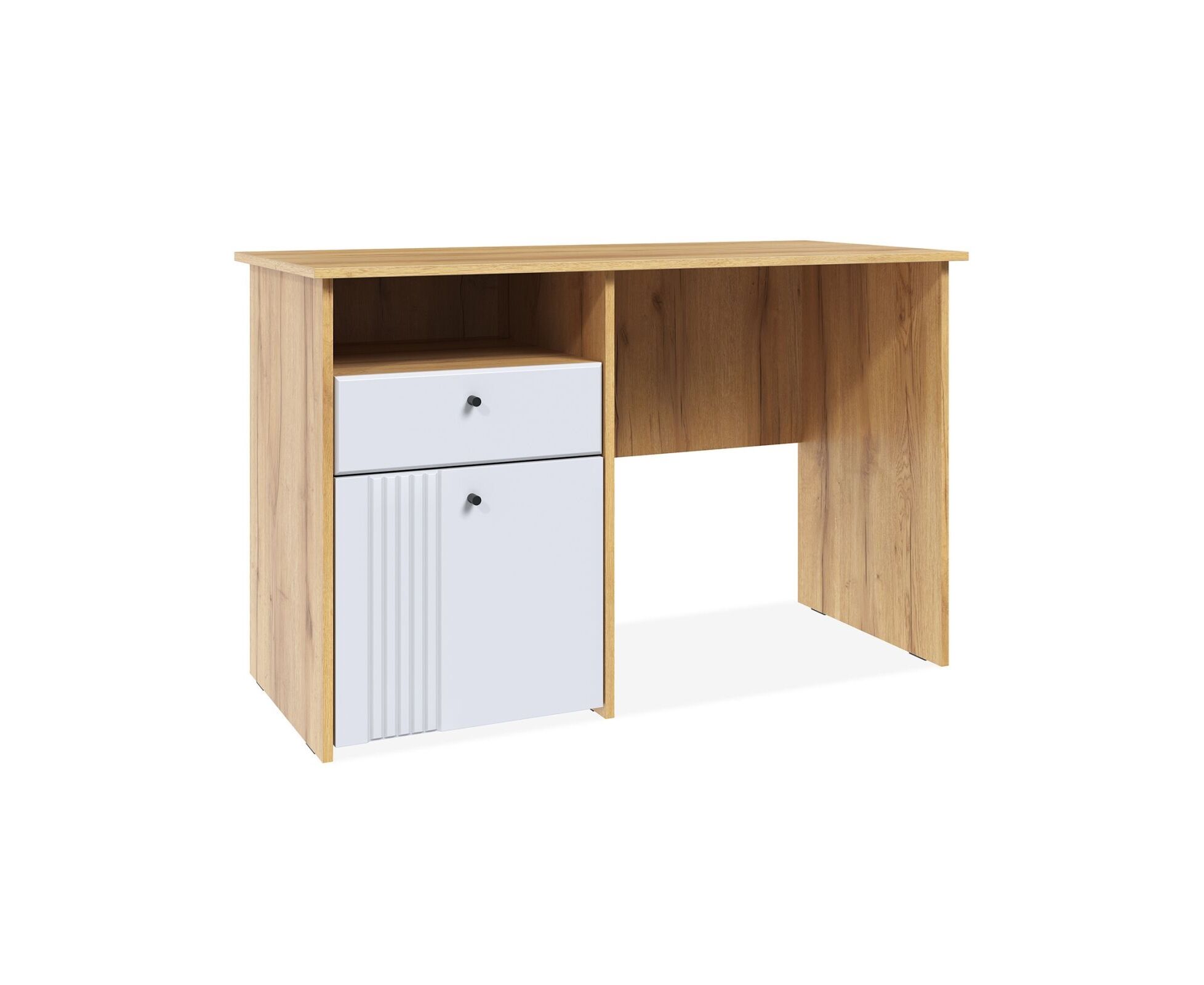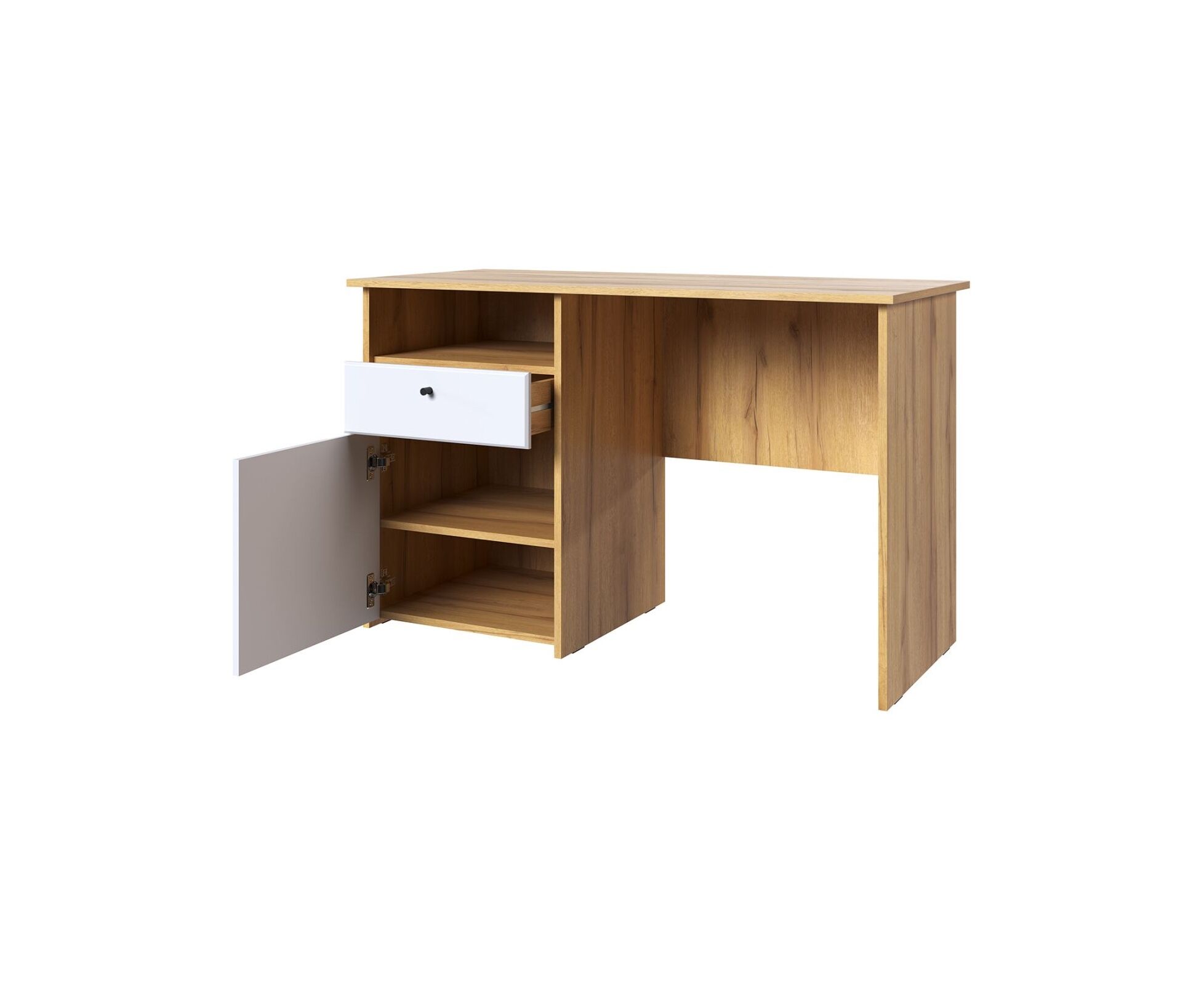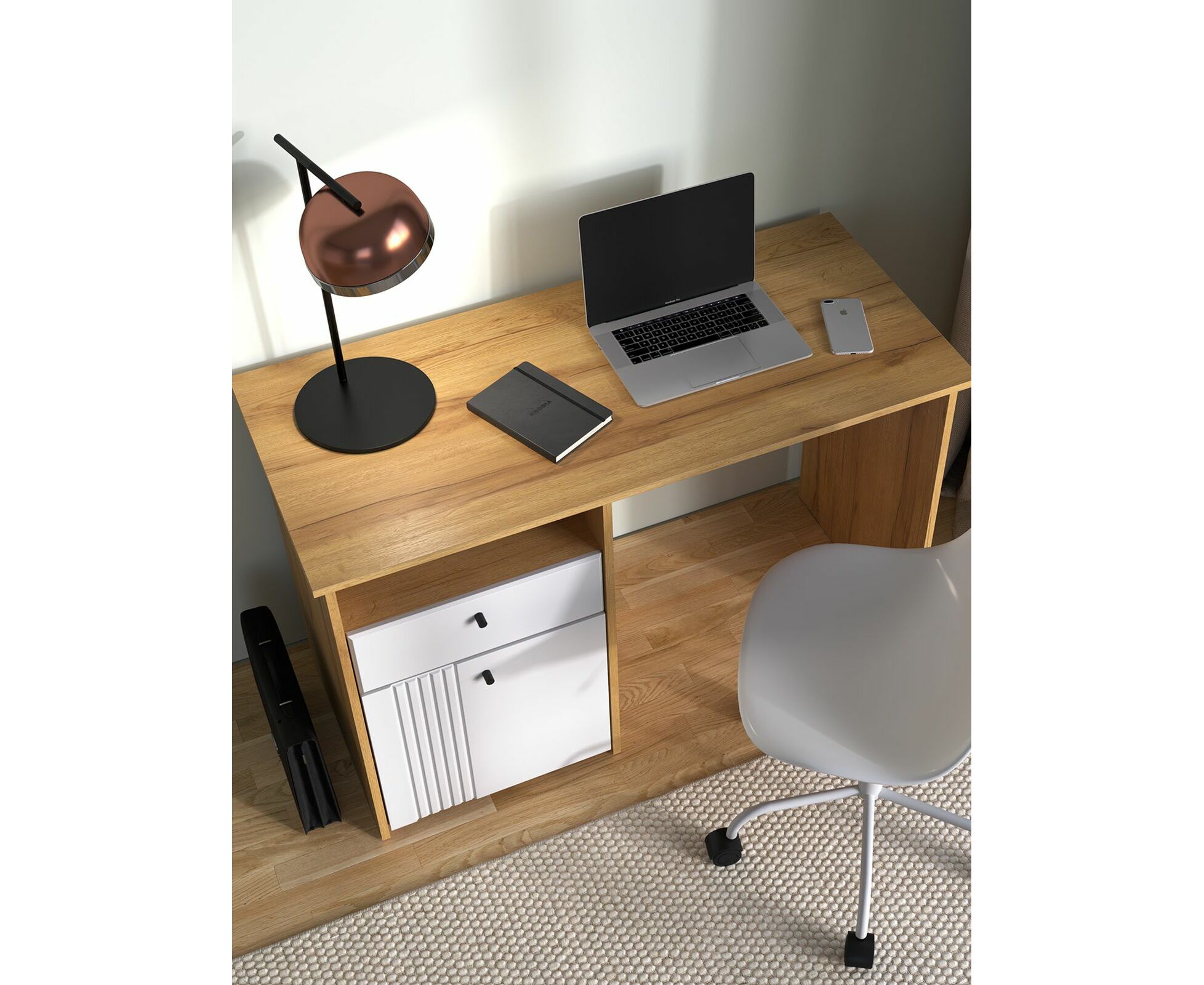 Рабочий стол оснащен просторной столешницей, которая позволяет разместить ноутбук, документы и канцелярские принадлежности. Размеры столешницы: 120х55 см. Стол для компьютера имеет оптимальную высоту, что обеспечивает правильное положение тела во время работы или учебы и предотвращает усталость. Модель может быть использована в качестве стола для школьника, и благодаря продуманной высоте и форме способствует правильной осанке.