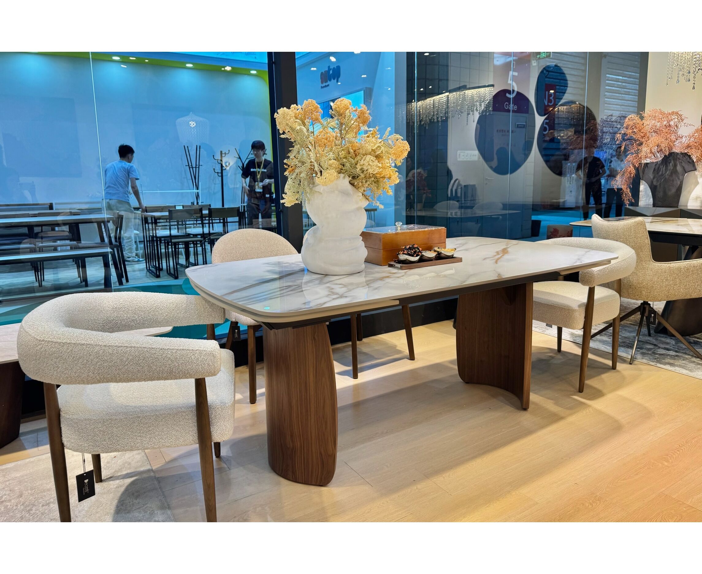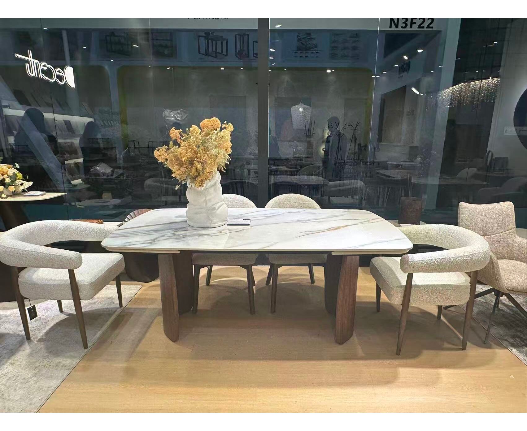 Стол ВЕСТБЕРГ (WESTBERG) 180 КАЛАКАТТА (GLOSS CALACATTA GOLD SOLID CERAMIC) / Орех натур, ®DISAUR