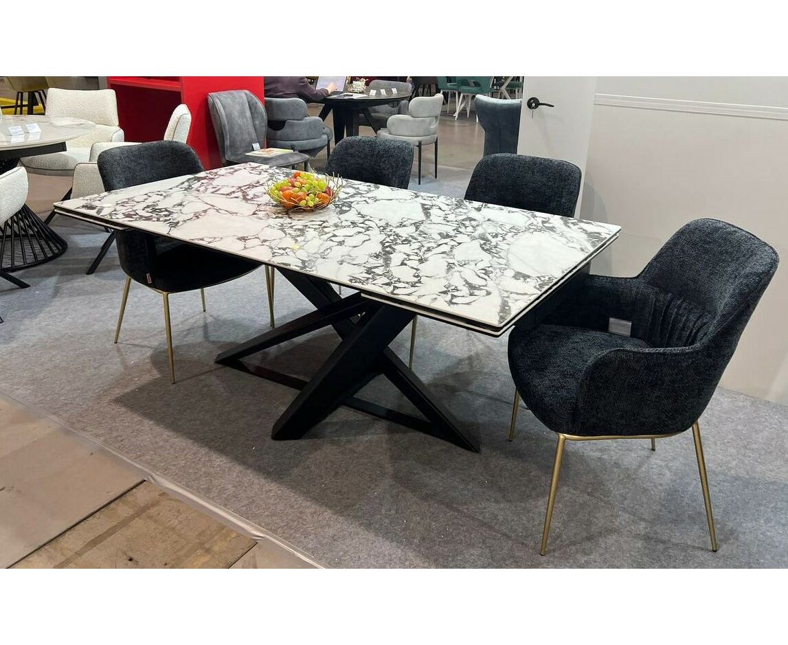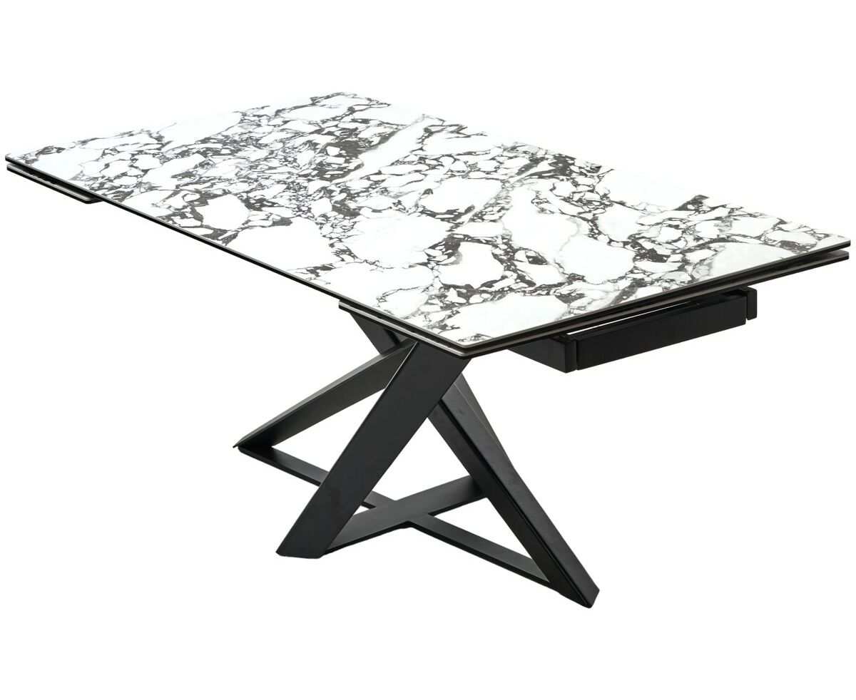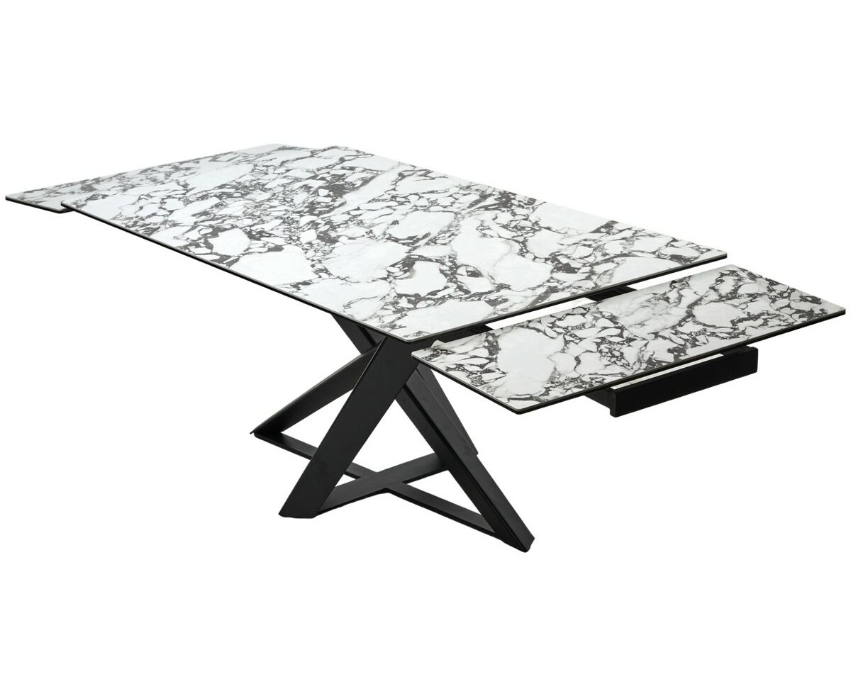 Стол VICENZA 180 раскладной GLOSS BULGARI WHITE, керамика / Черный, ®DISAUR