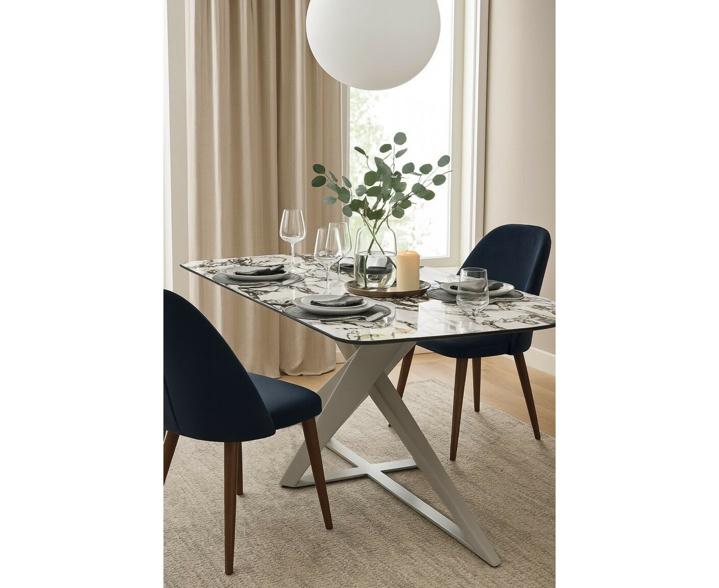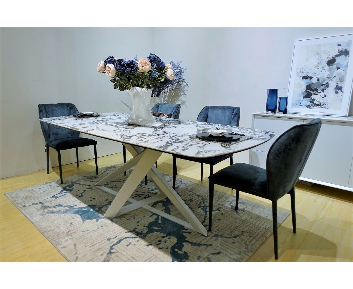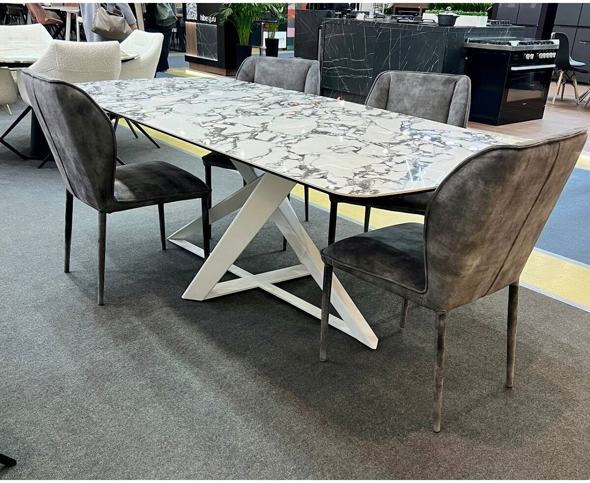 Стол дизайнерский VICENZA 220 с глянцевой керамической столешницей белый мрамор