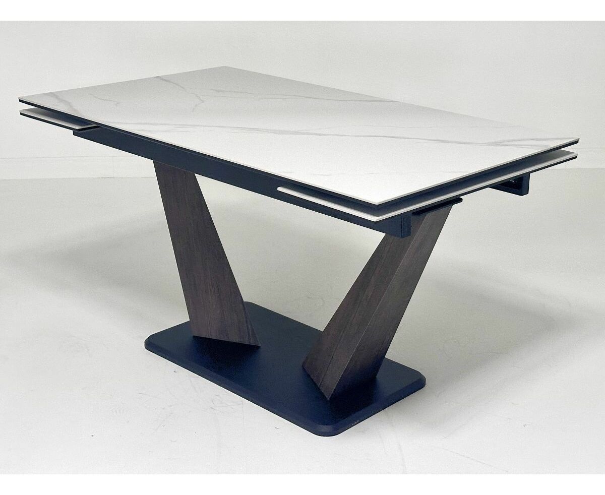 Стол ВИРДЖИНИЯ 140 MATTE БЕЛЫЙ МРАМОР, керамика / ЛЕСНОЙ ОРЕХ, ЧЕРНЫЙ, М-City