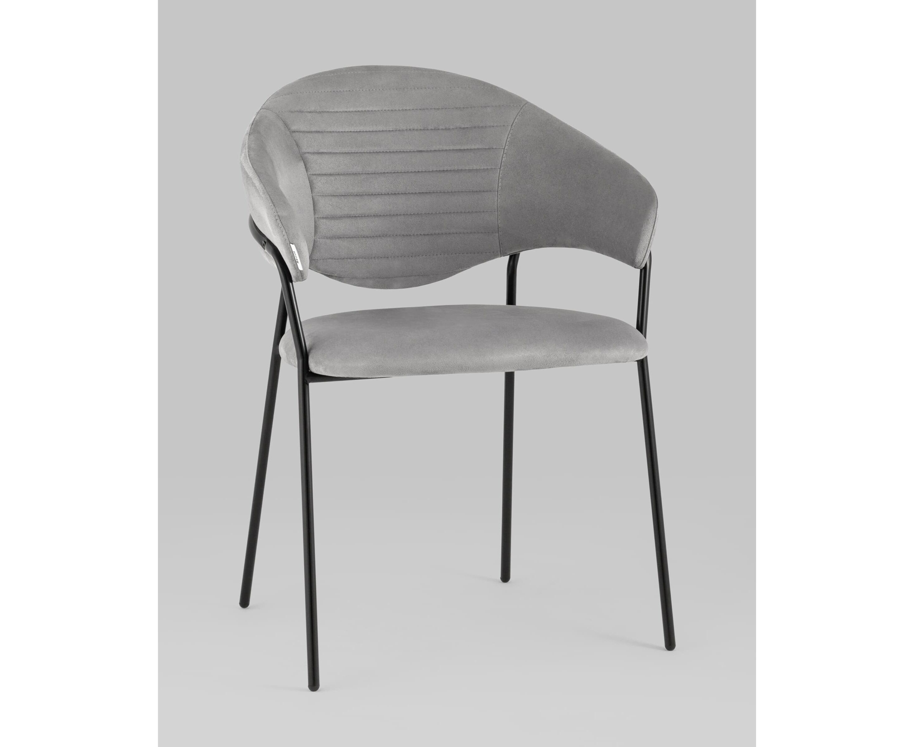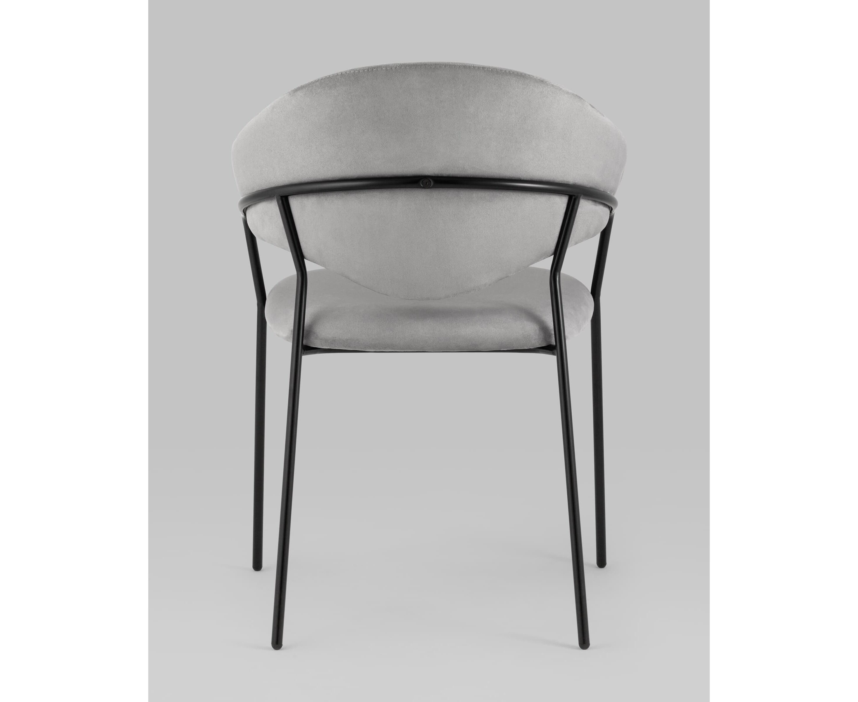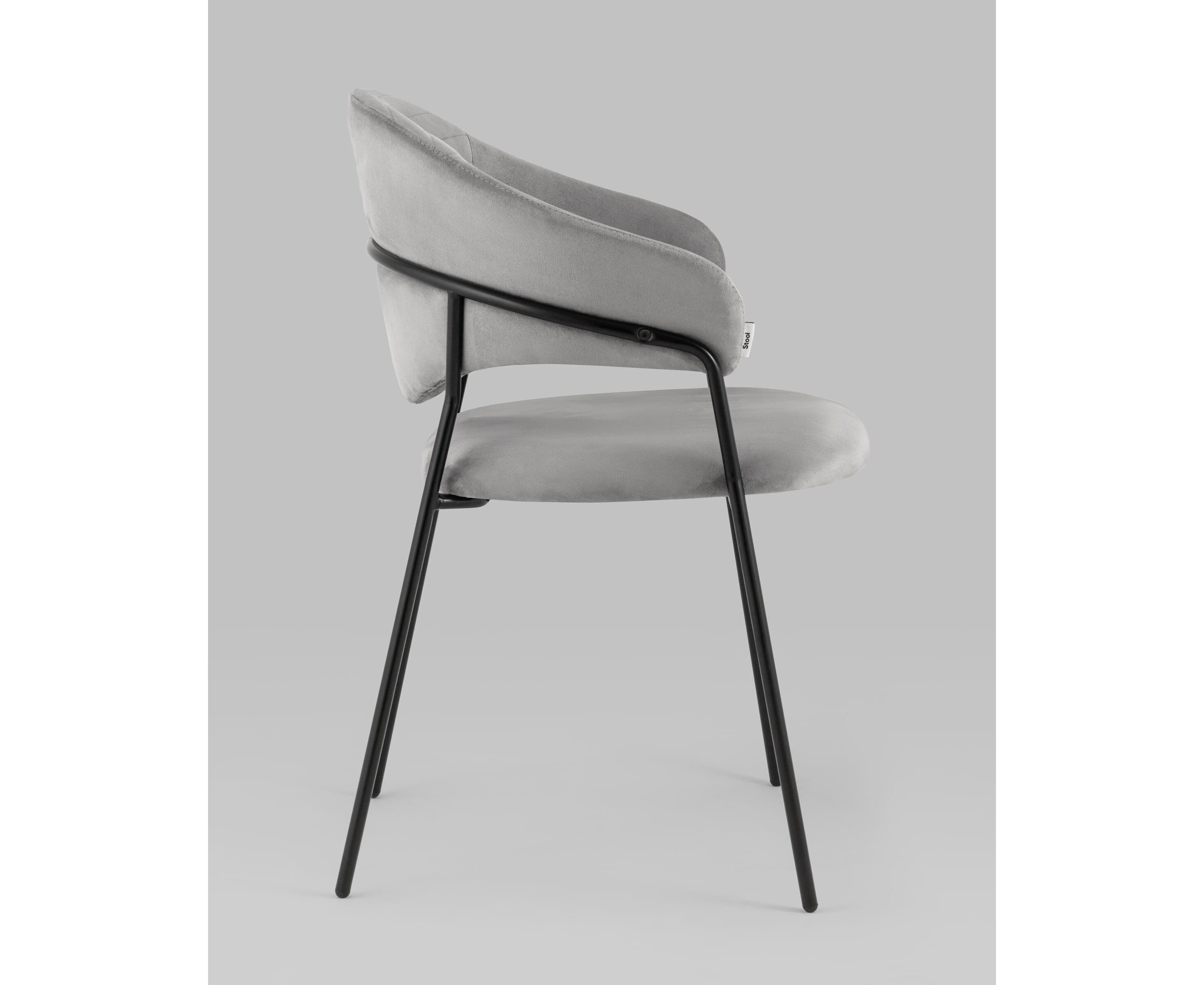 Стильный кухонный стул с оригинальной формой спинки, высокой поддержкой и подлокотниками. В качестве обивки используется искусственная замша – приятный на ощупь износостойкий, долговечный материал, обладает эффектом "антикоготь". Металлический каркас в черном цвете огибает спинку и выступает аккуратным акцентом модели. Широкое сиденье обеспечивает удобную посадку и уют.