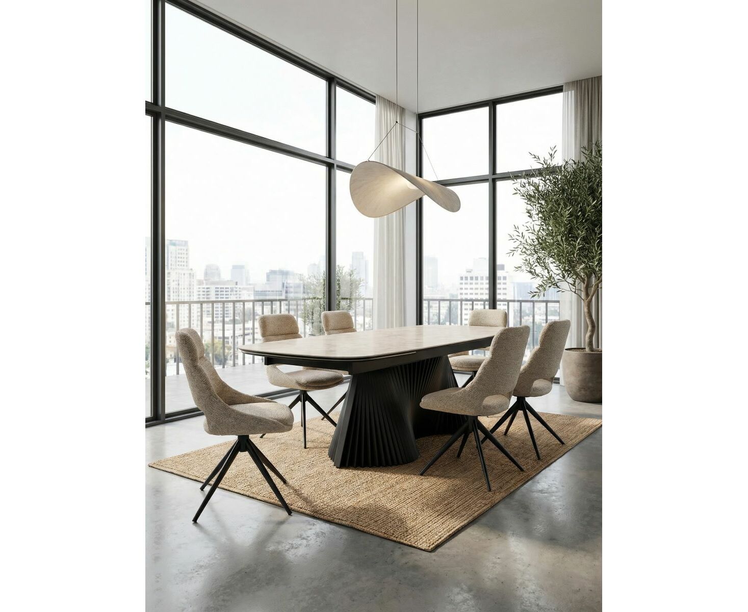 Стул АНДЕРС (ANDERS) 360 град, цвет БЕЖЕВЫЙ EYELASH -120 фактурный шенилл / ЧЕРНЫЙ каркас, ®DISAUR