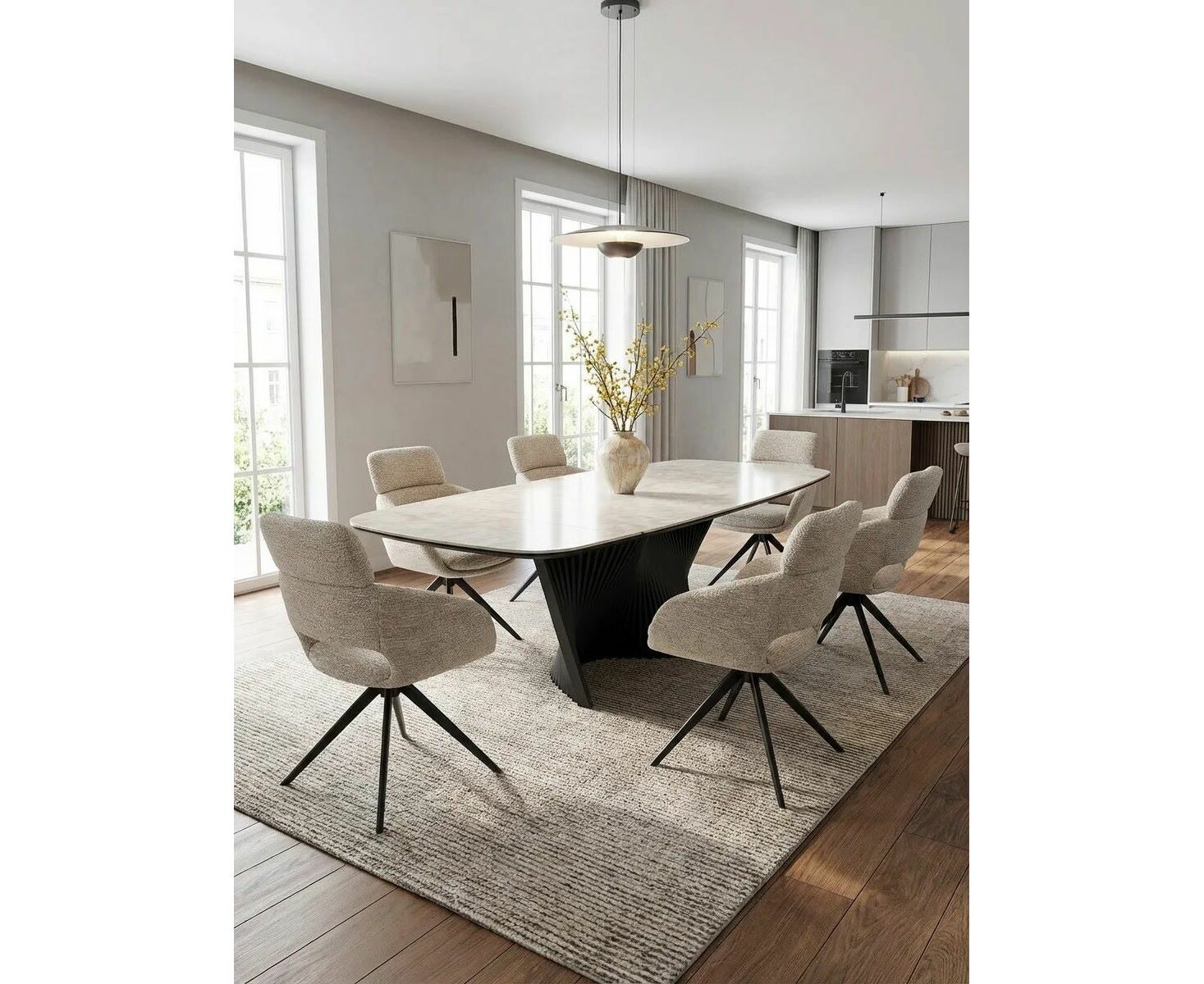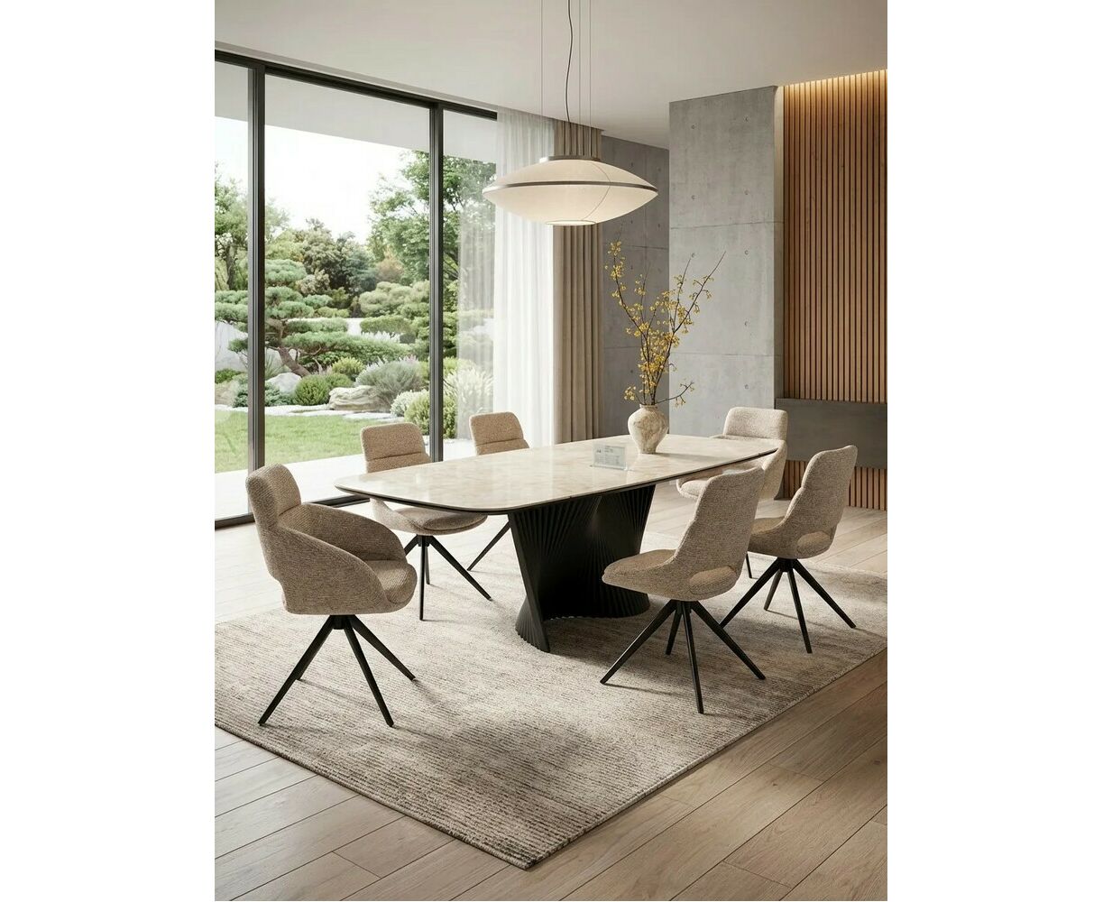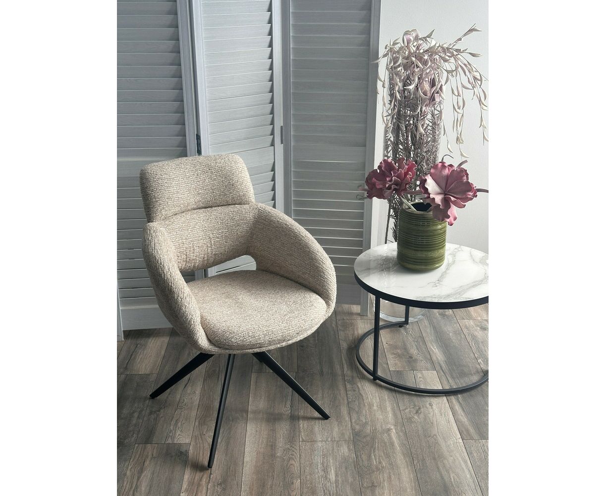 Стул АРНЭ (ARNE) 360 град, цвет БЕЖЕВЫЙ EYELASH -120, фактурный шенилл / ЧЕРНЫЙ каркас, ®DISAUR