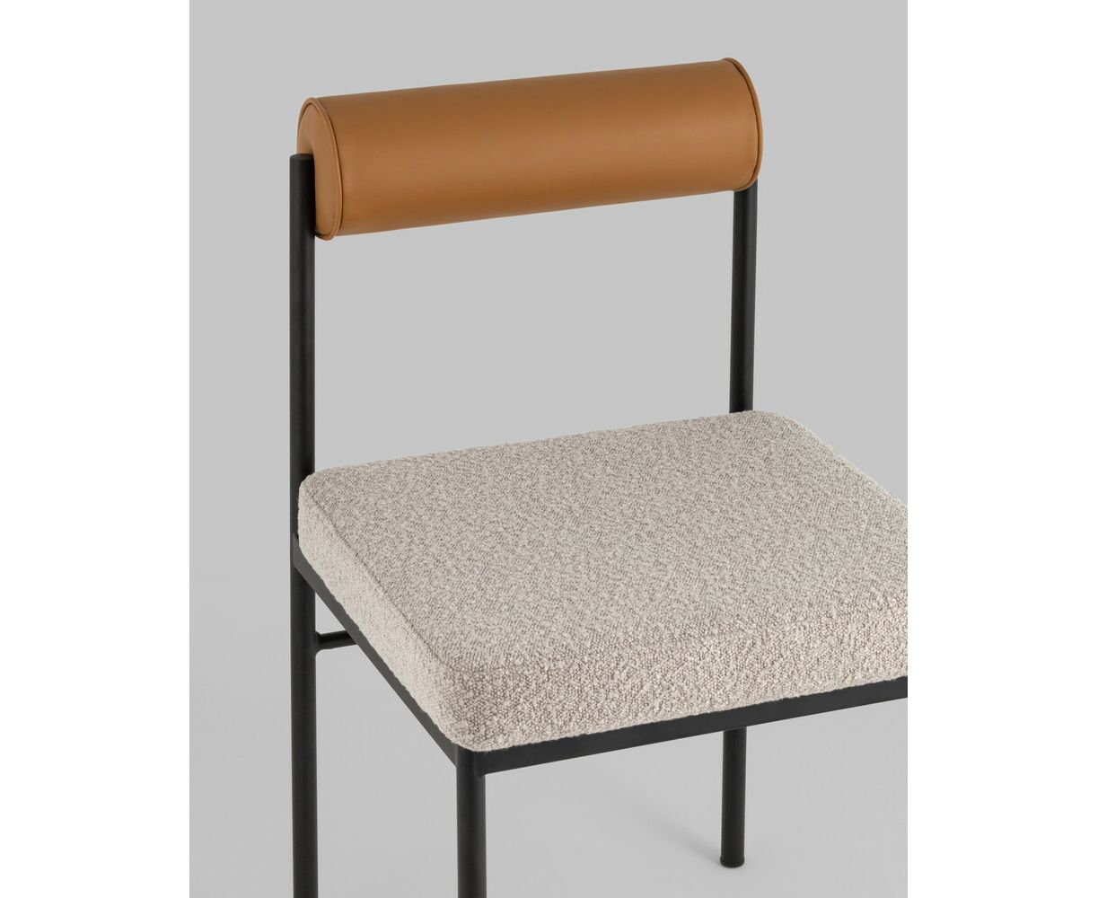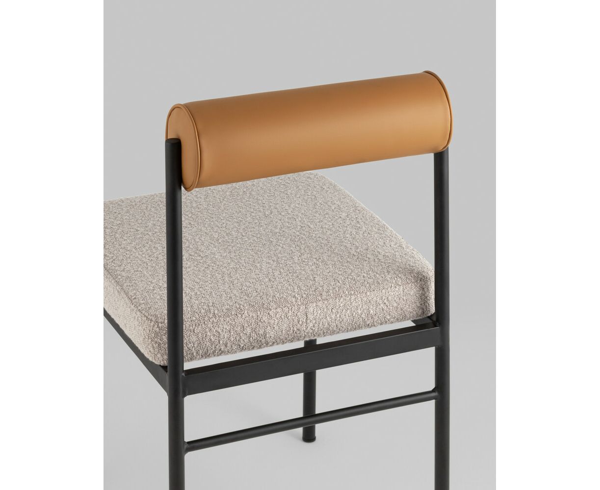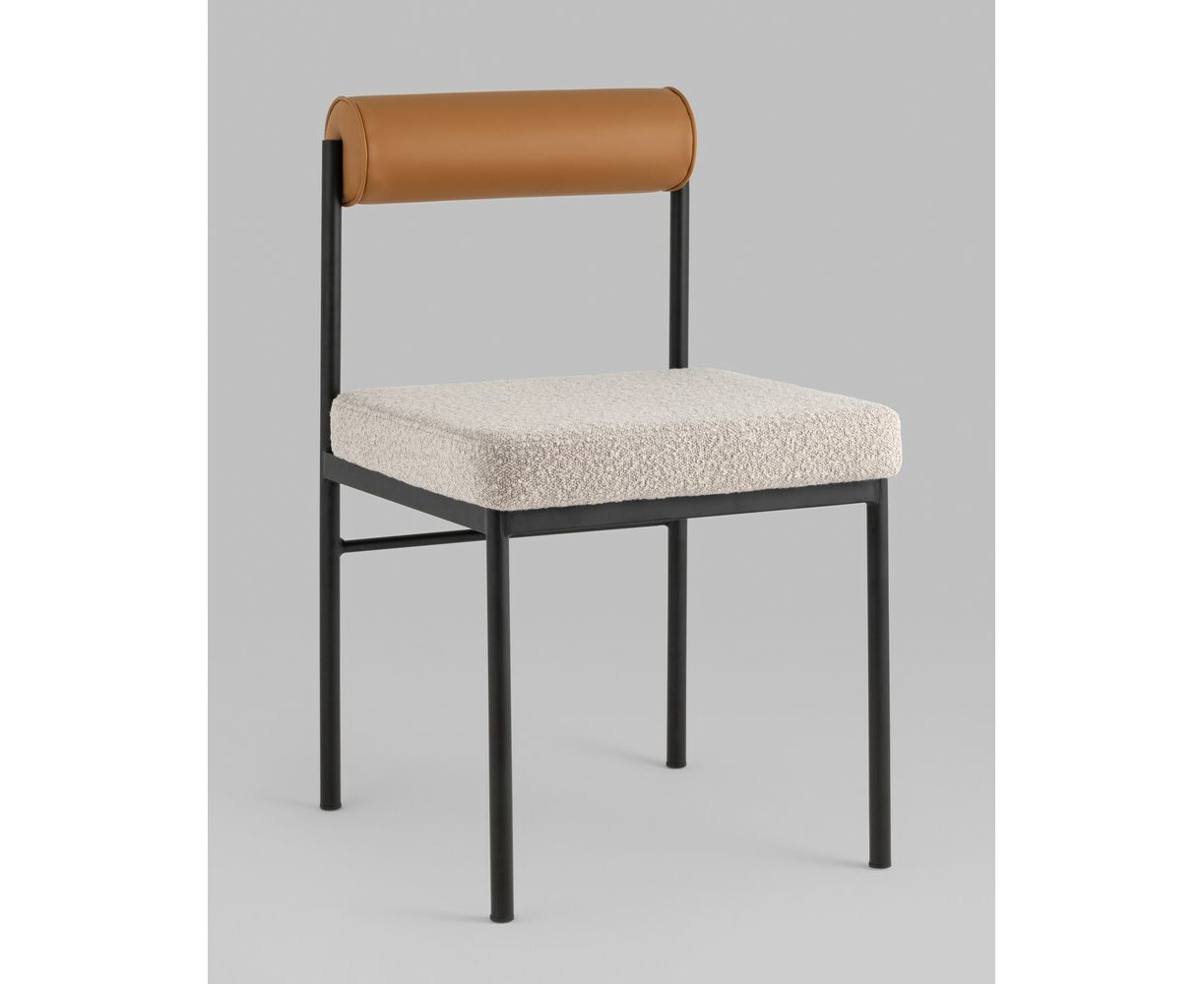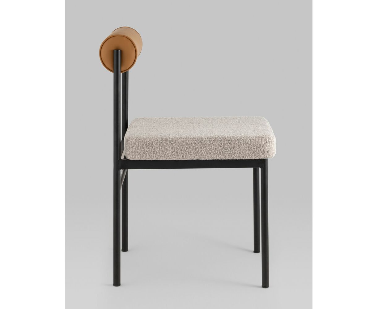 Стул обеденный Балла бежевый, сиденье ткань букле, спинка в форме валика экокожа