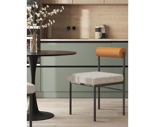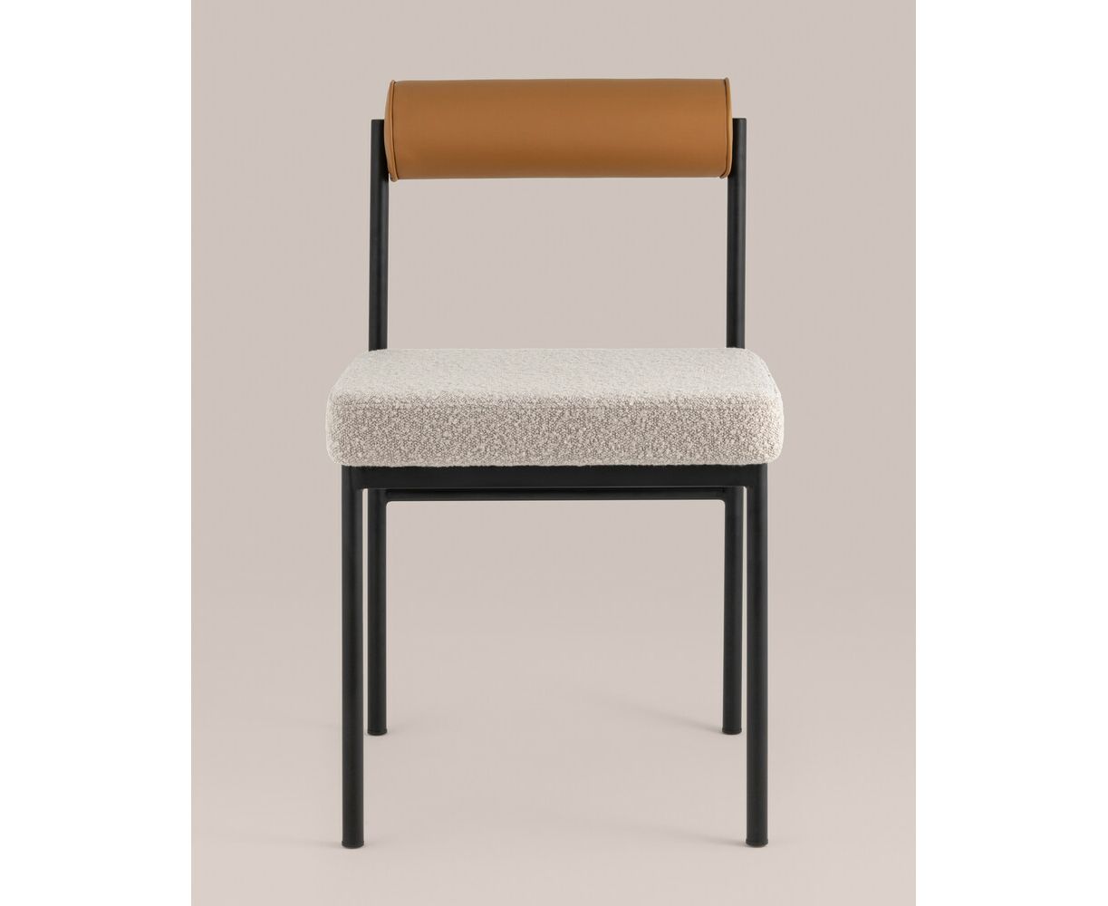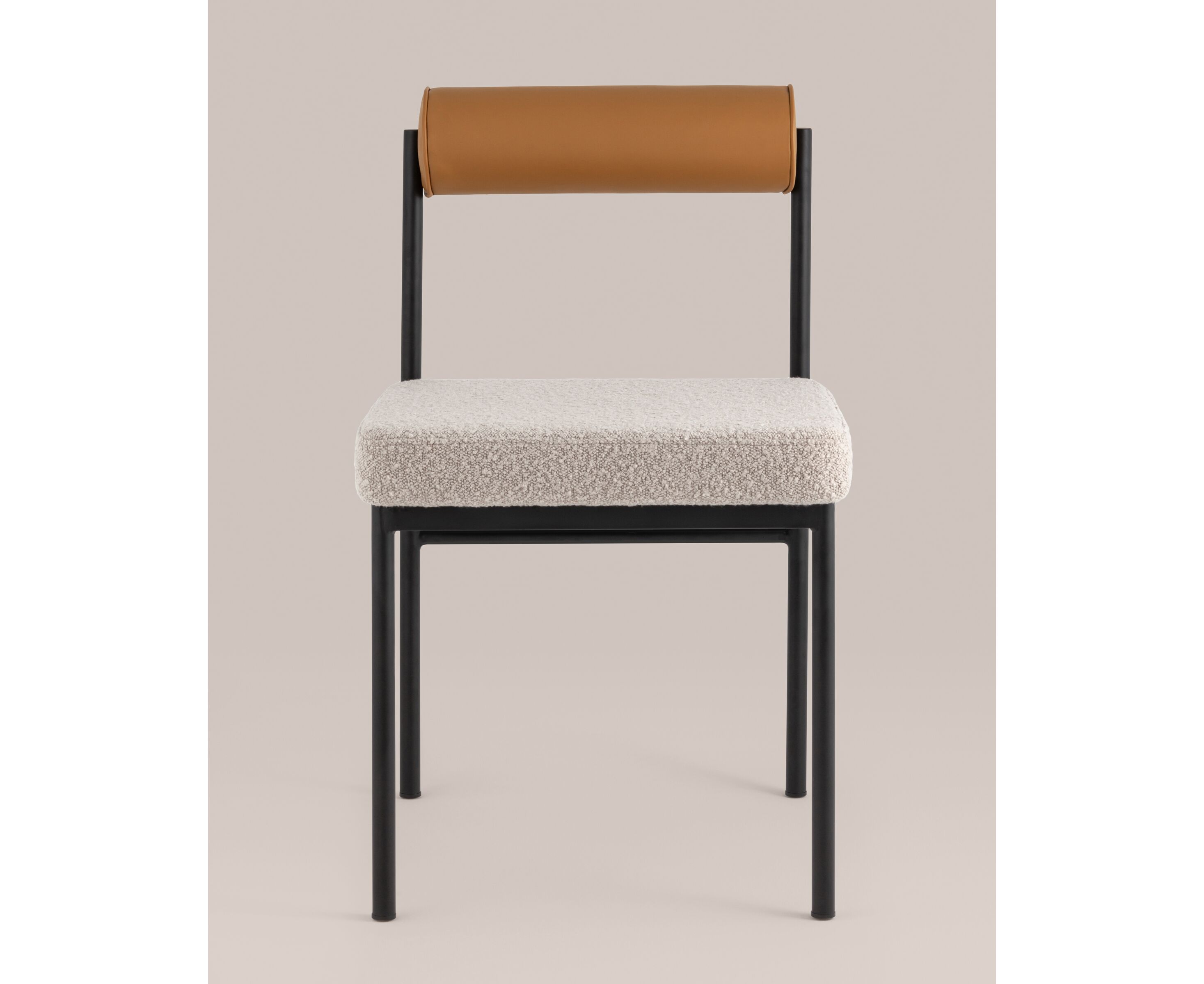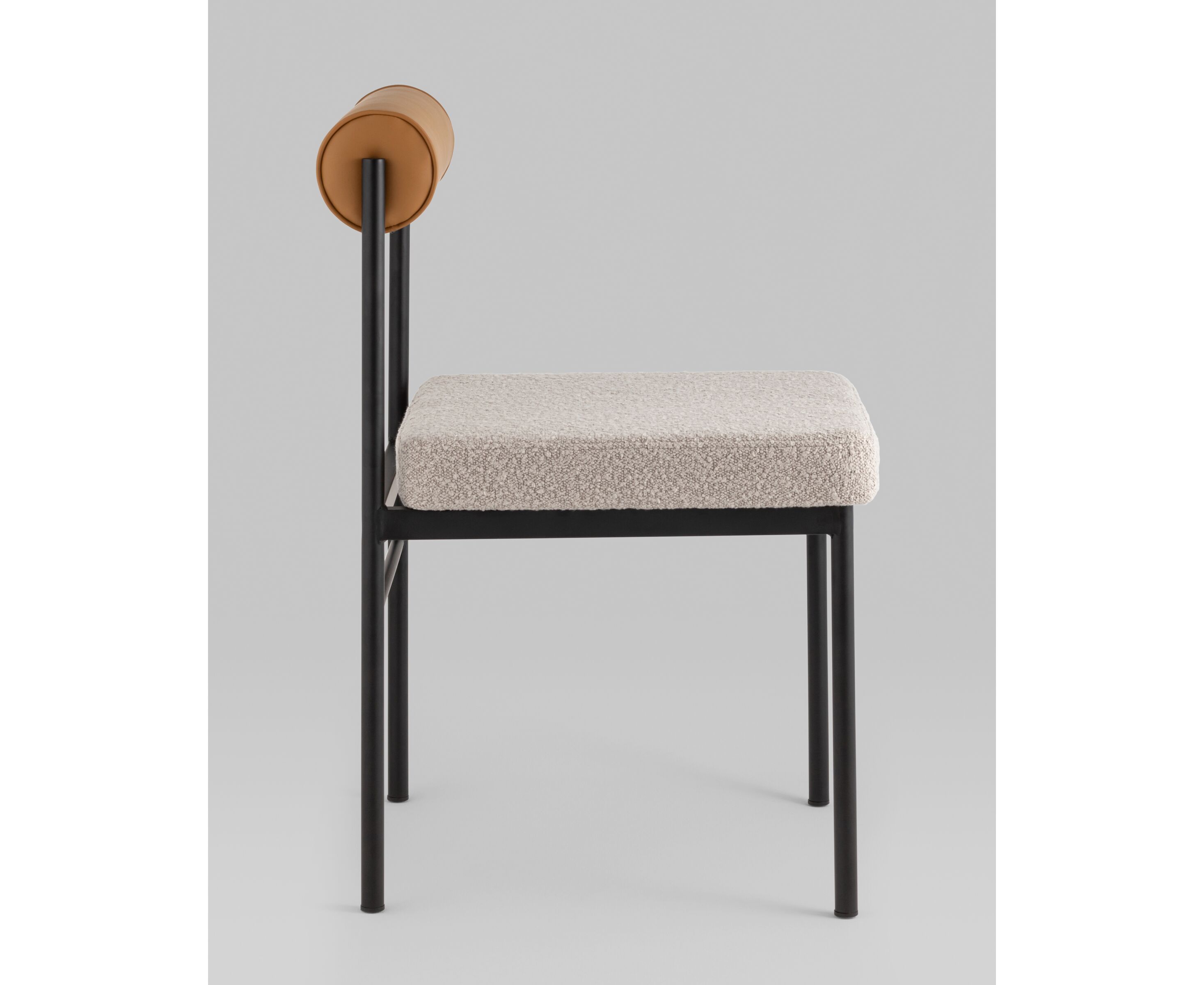 Стул обеденный Балла бежевый, сиденье ткань букле, спинка в форме валика экокожа