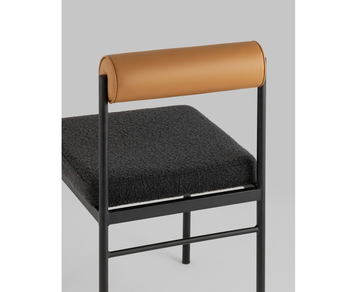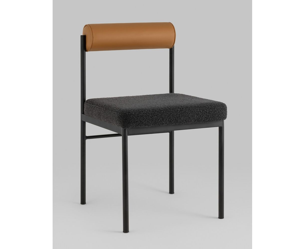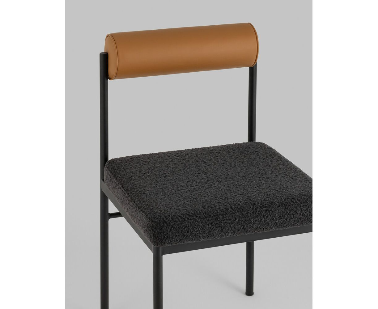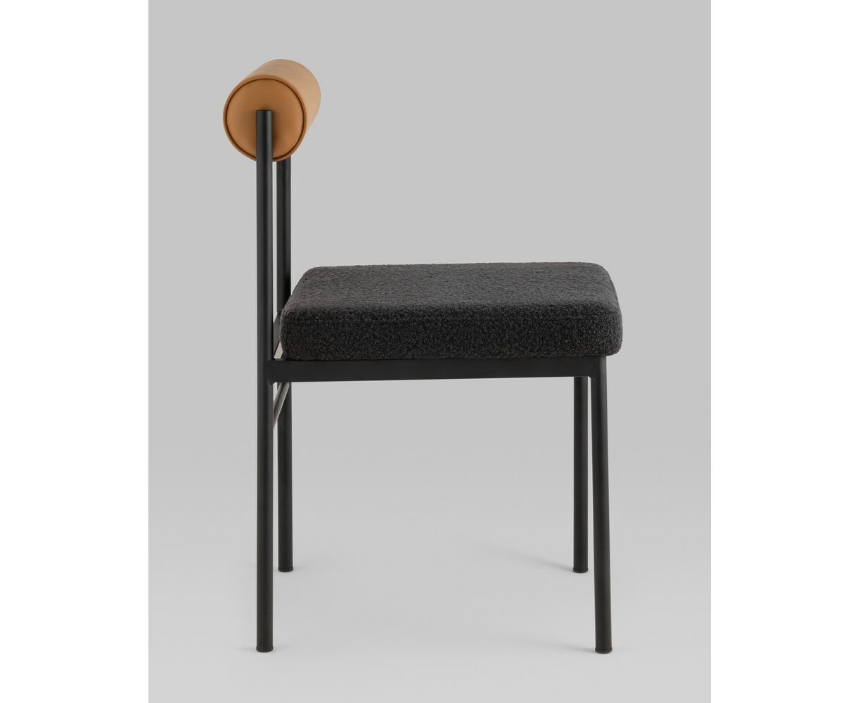 Стул обеденный Балла темно-серый, сиденье ткань букле, спинка в форме валика экокожа