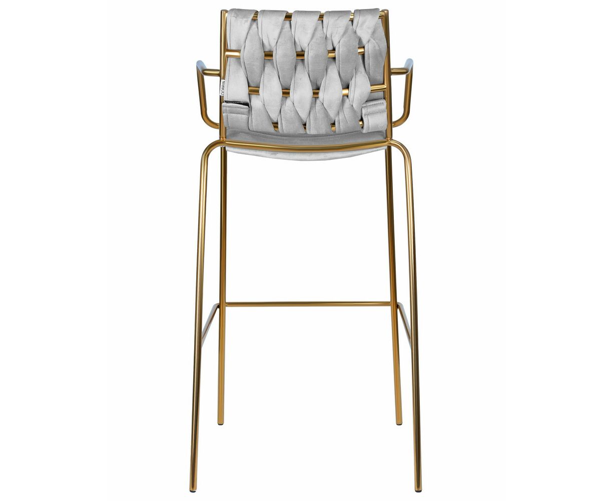 Стул барный DOBRIN MILLER GOLD, светло-серый велюр (135-37)