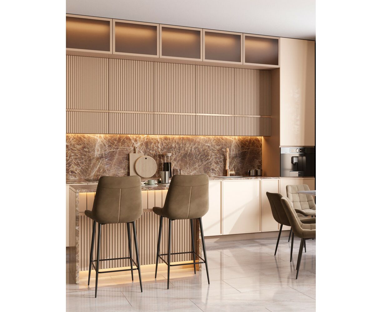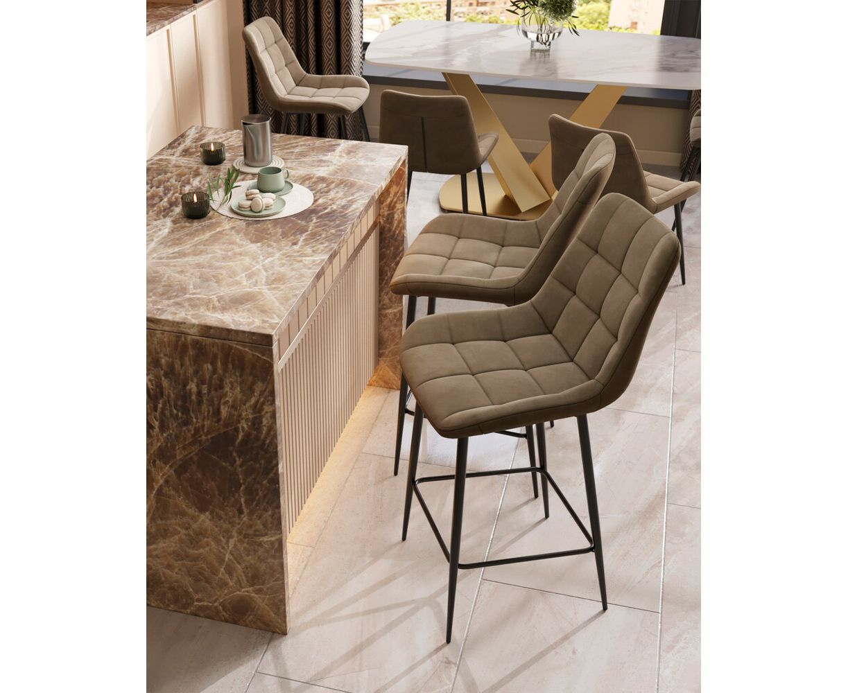 Современный барный стул в мягкой обивке из велюра без подлокотников.