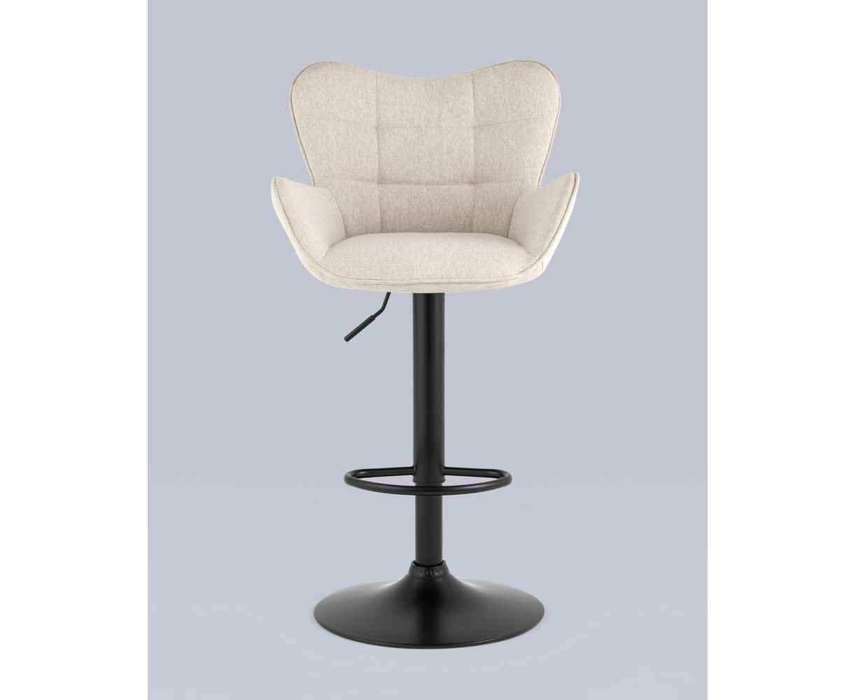 Стул барный Гранд серо-бежевый ткань, со спинкой, основание черное металл