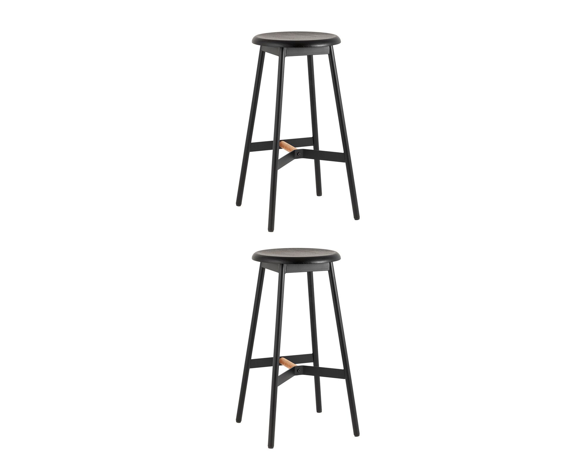 Комплект из двух барных стульев Knobb черный каркас из металла и массива дерева 2 шт