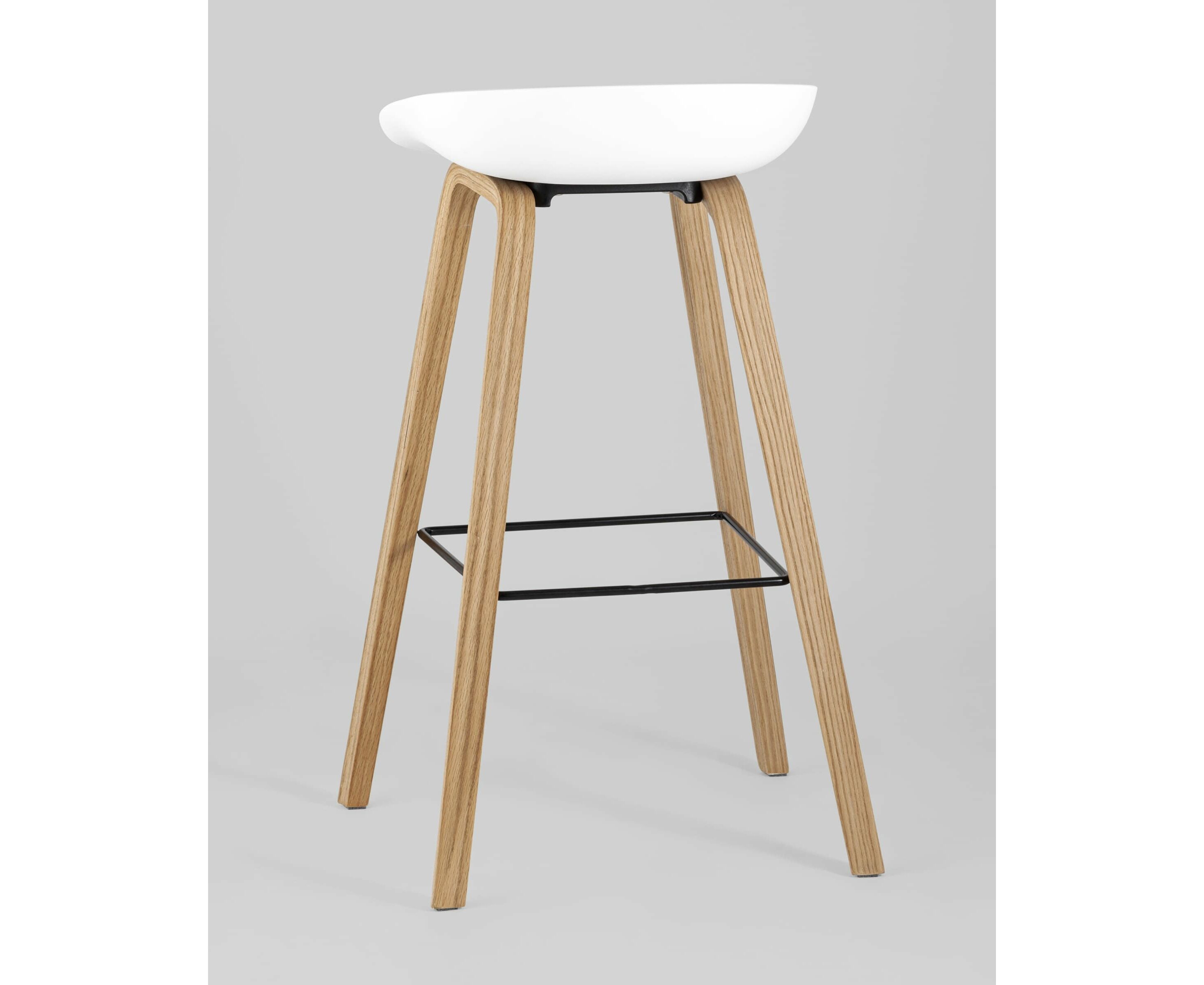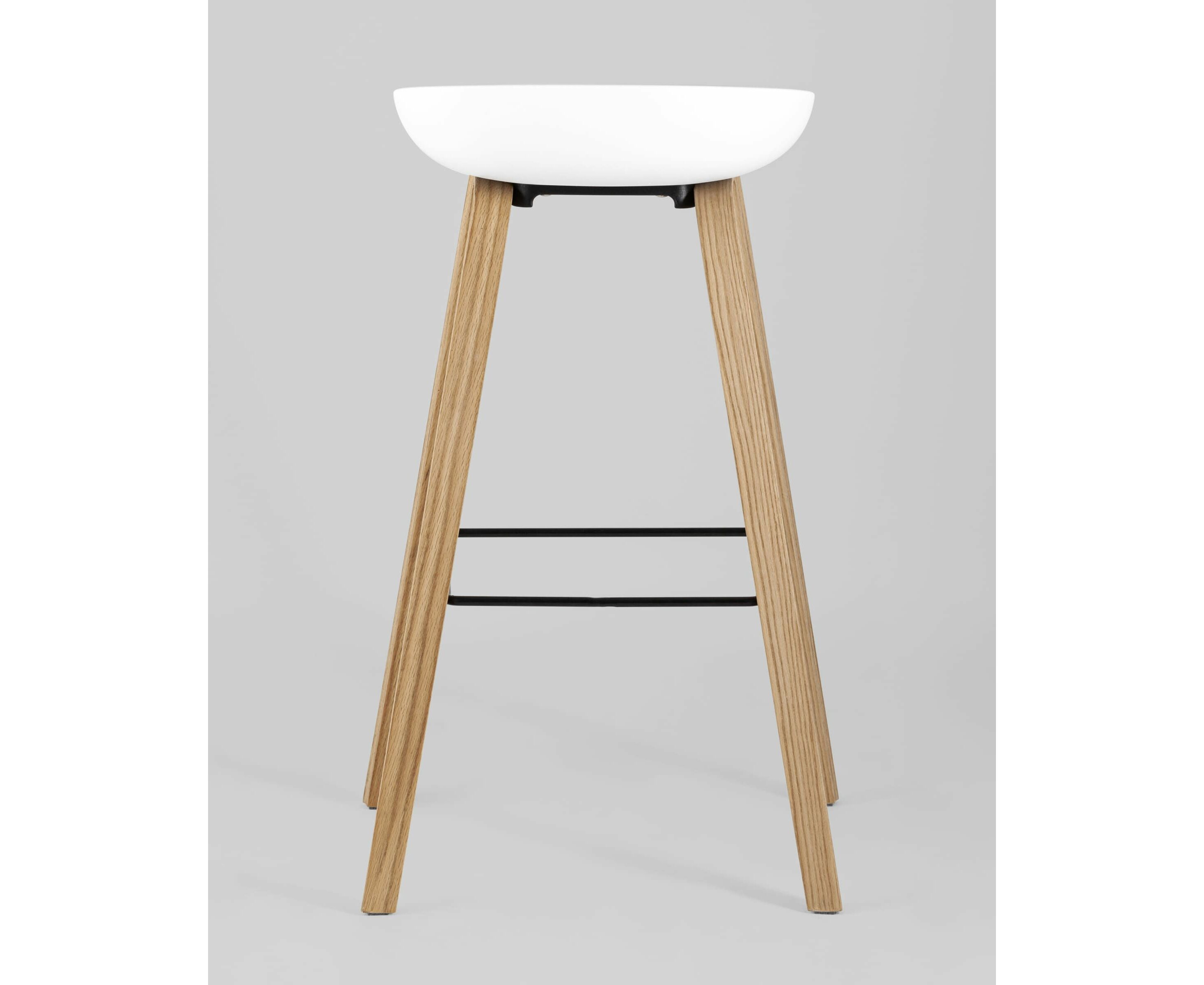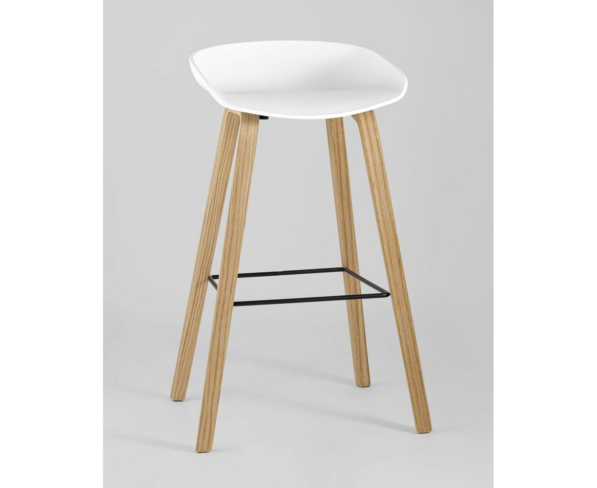 В дизайне модели «Либра» используется сочетание белого пластика и естественного оттенка натурального дерева – опоясывающая ножки опорная планка в тон сиденью уравновешивает цветовую комбинацию и подчеркивает модные геометрические формы барного стула. Высота соответствует стойке стандартной высоты.
