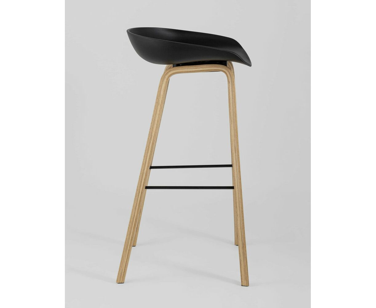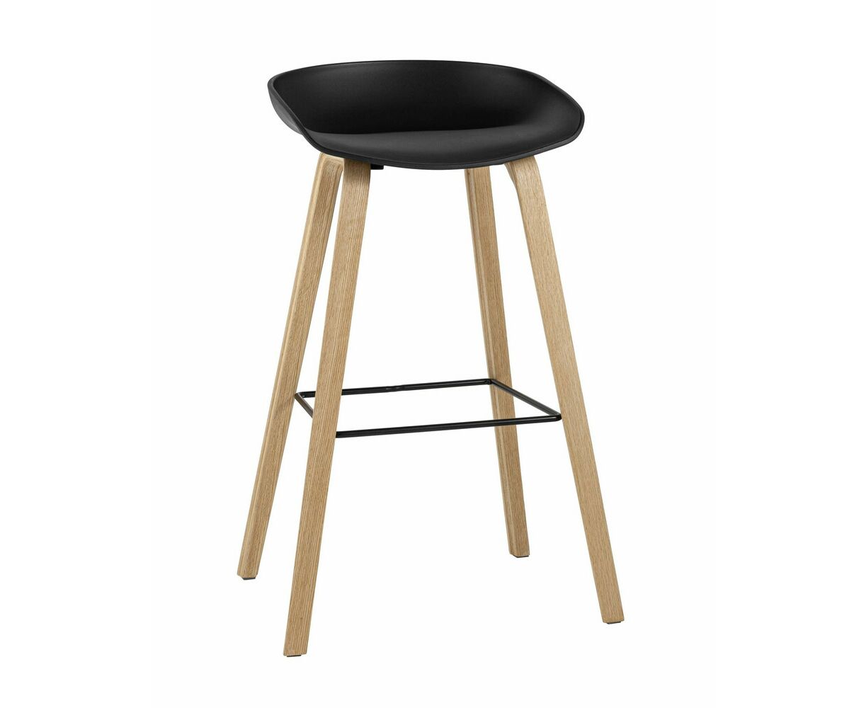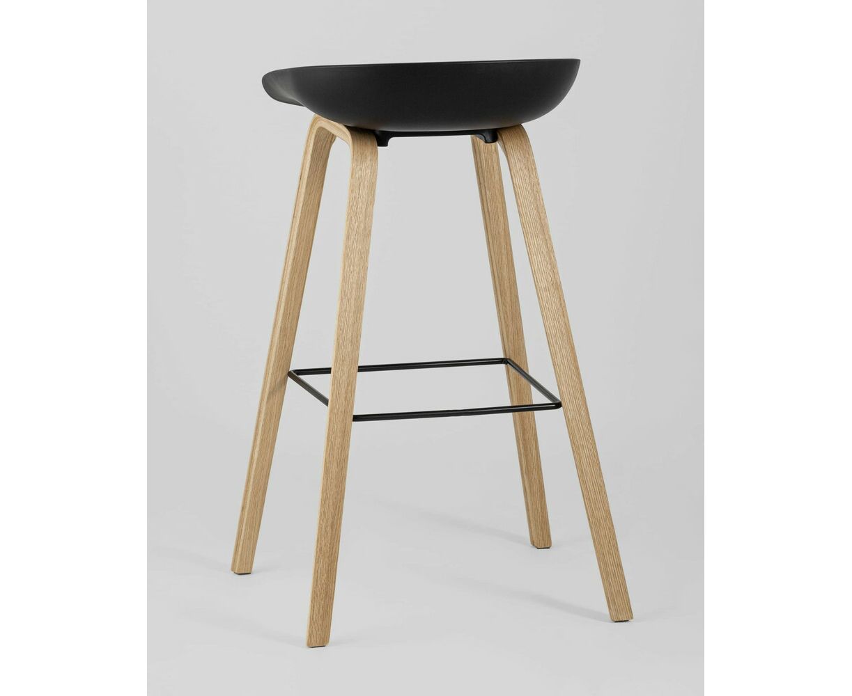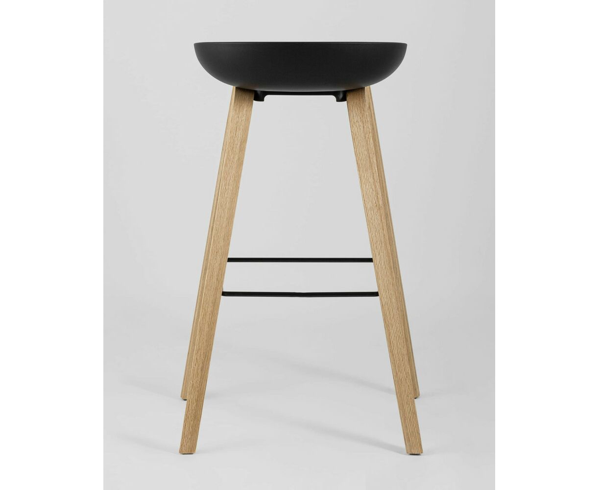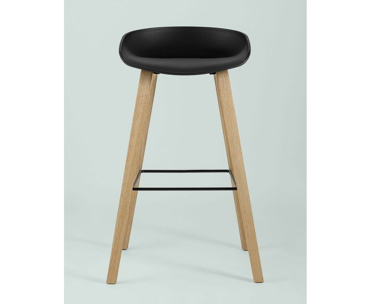 В дизайне модели «Либра» используется сочетание черного пластика и естественного оттенка натурального дерева – опоясывающая ножки опорная планка в тон сиденью уравновешивает цветовую комбинацию и подчеркивает модные геометрические формы барного стула. Высота мебели достаточна для стоек стандартной высоты.