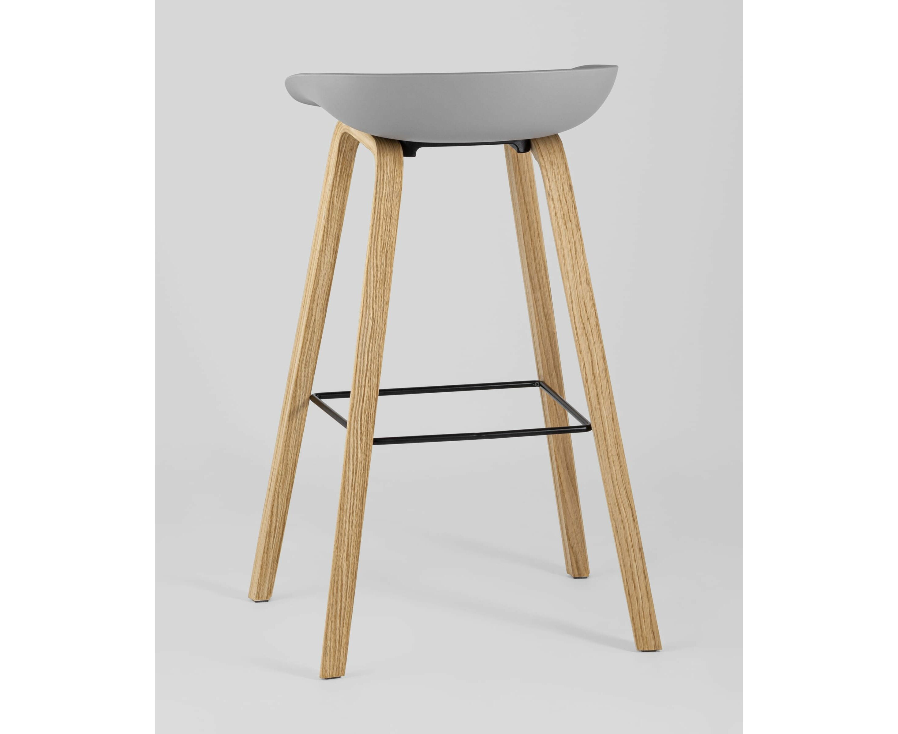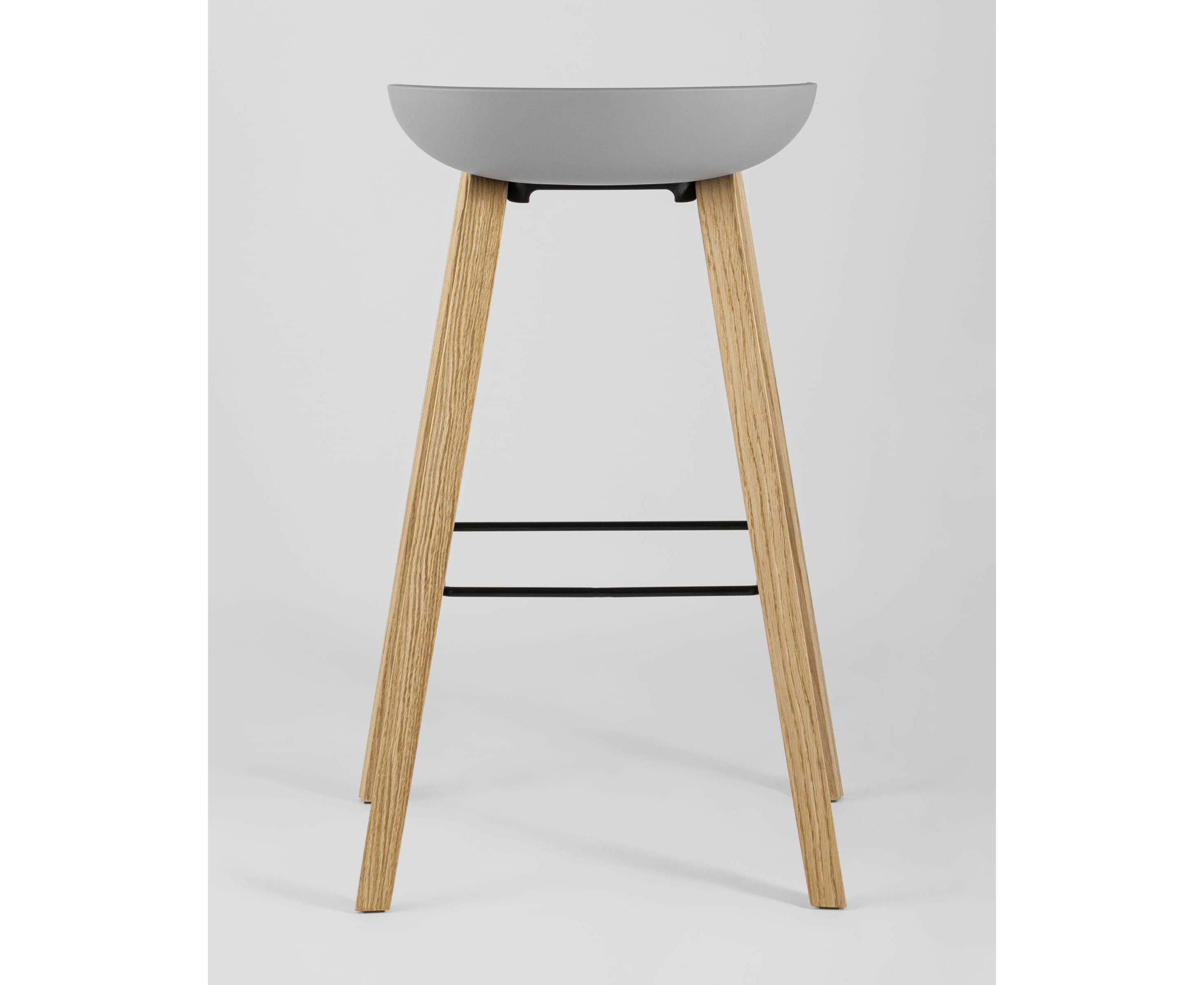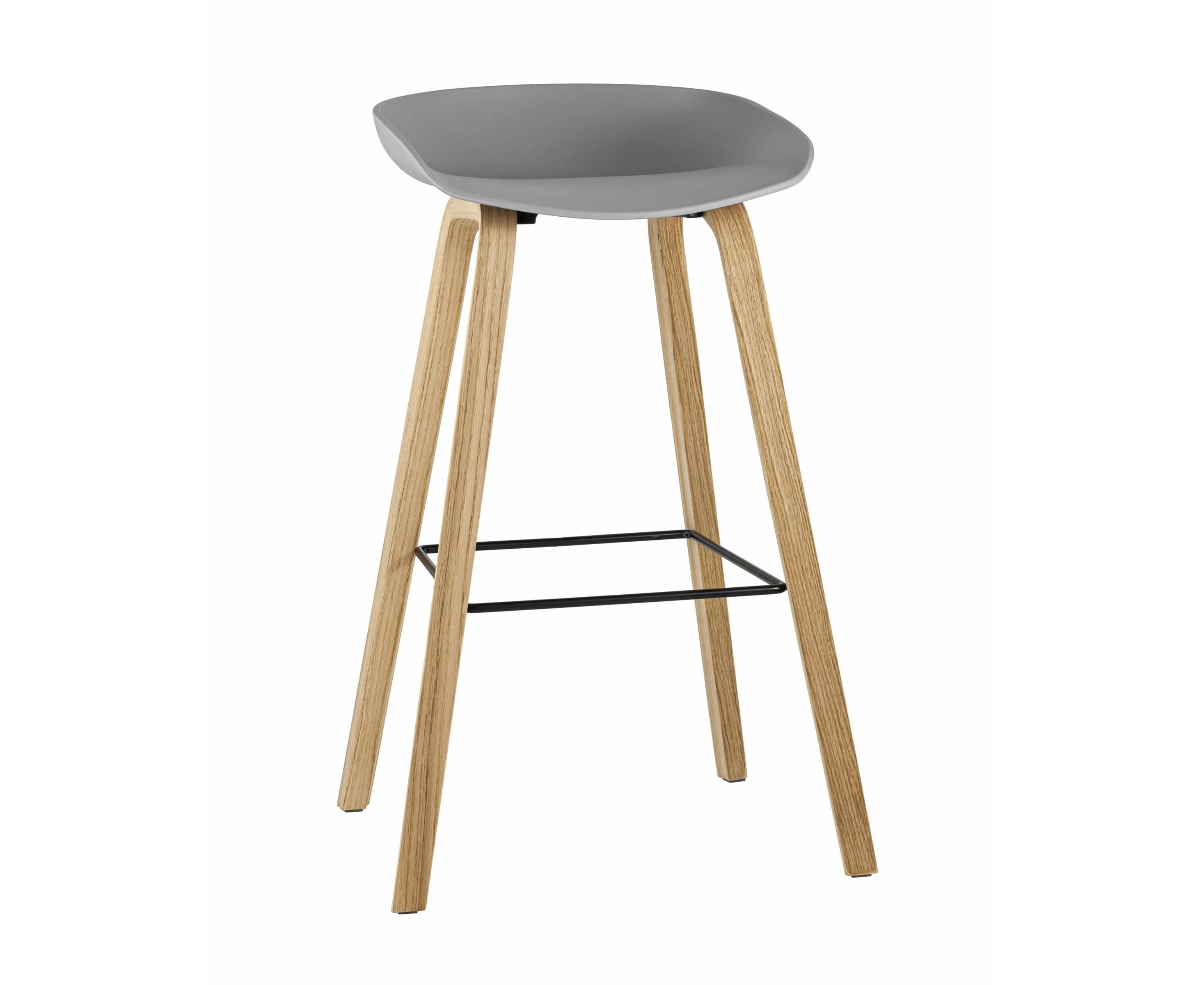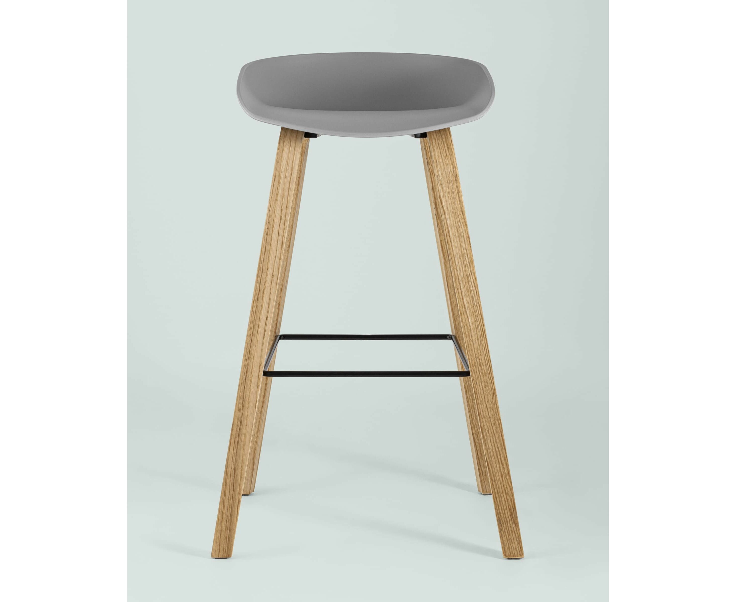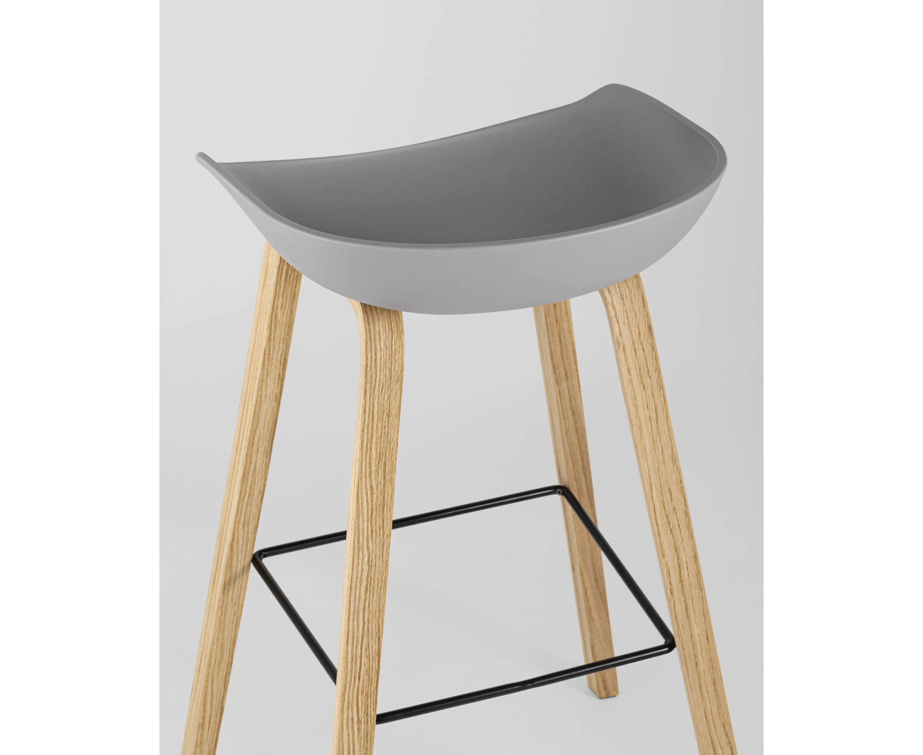 В дизайне модели «Либра» используется сочетание серого пластика и естественного оттенка натурального дерева – опоясывающая ножки опорная планка в тон сиденью уравновешивает цветовую комбинацию и подчеркивает модные геометрические формы стула. Высота соответствует стойке стандартной высоты.