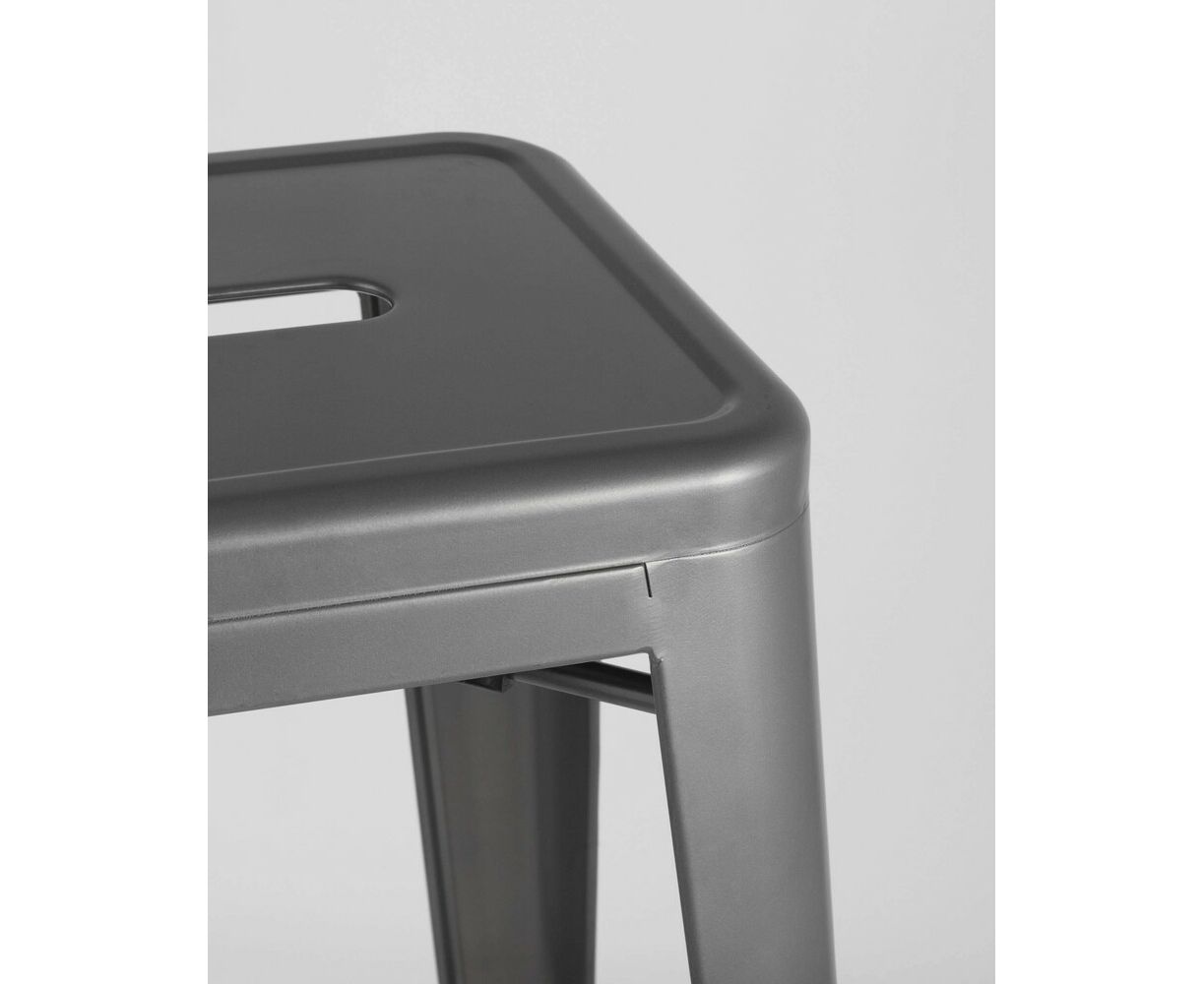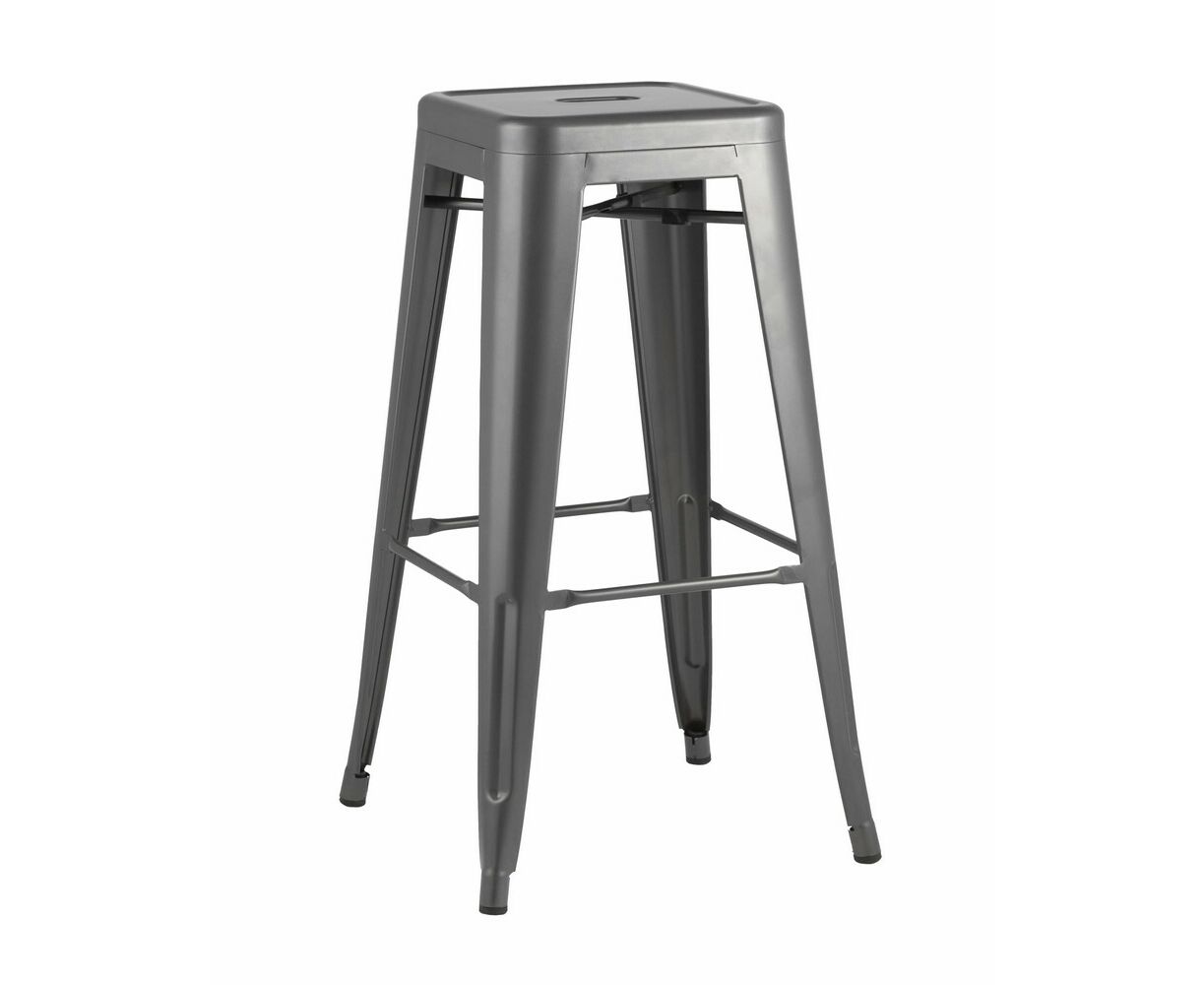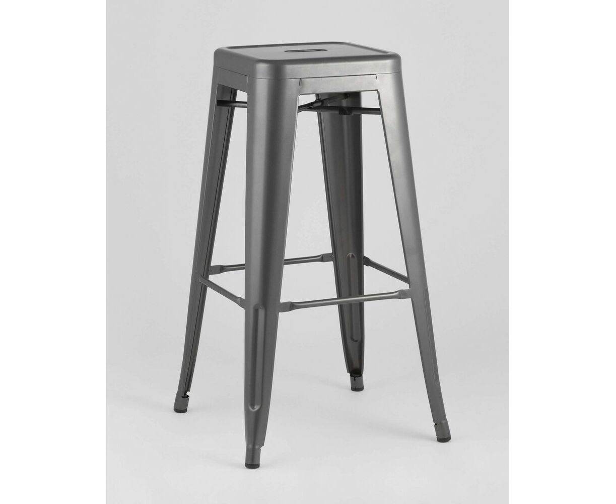 Барный табурет Tolix – воплощение качества и практичности. Удобный металлический стул на четырех опорах окрашен в серебристый матовый цвет. Он может стать стильным дополнением интерьера модного заведения или домашней столовой.