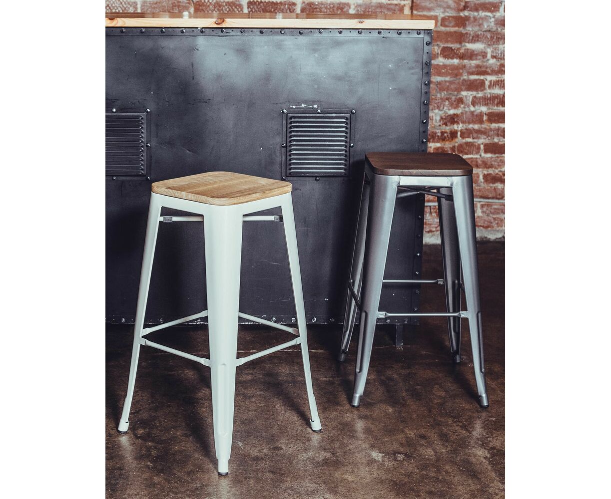 Барный табурет Tolix Белый глянцевый подойдет для домашнего интерьера в стиле Лофт и органично впишется в обстановку современного кафе или ресторана. Отсутствие спинки у табурета компенсируется широким удобным сиденьем из светлого дерева с гладкой поверхностью и натуральной фактурой. Расходящиеся металлические ножки, окрашенные в белый цвет, в сочетании с каркасом создают устойчивое основание. Высота табурета «Толикс» - 75 сантиметров, благодаря чему он подойдет для стандартной барной стойки.