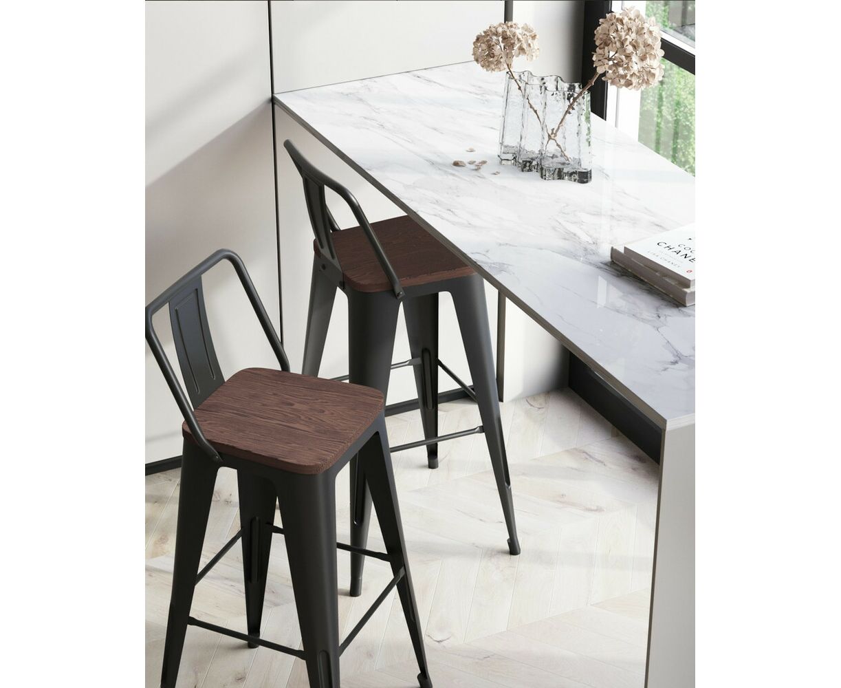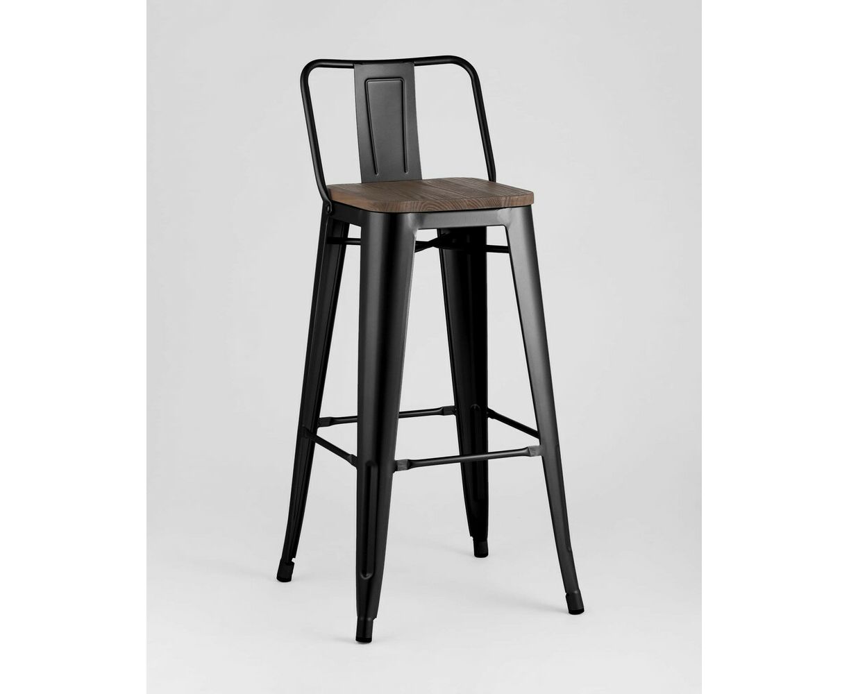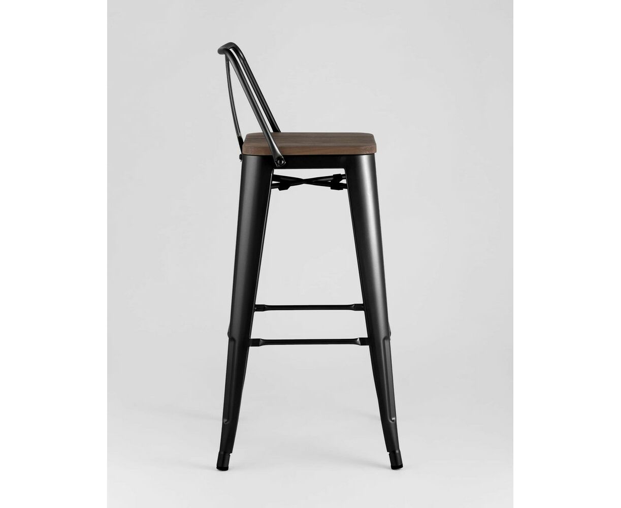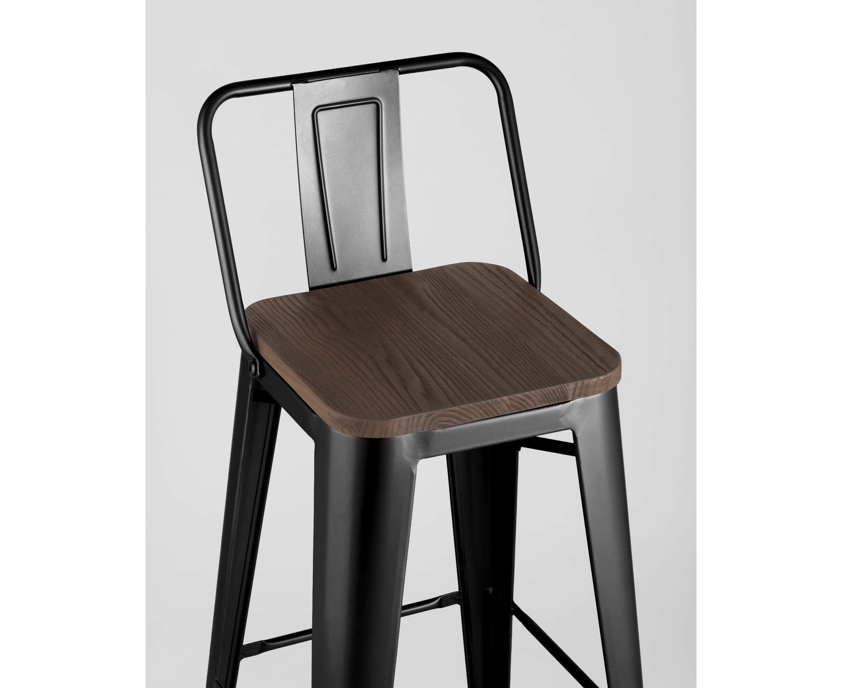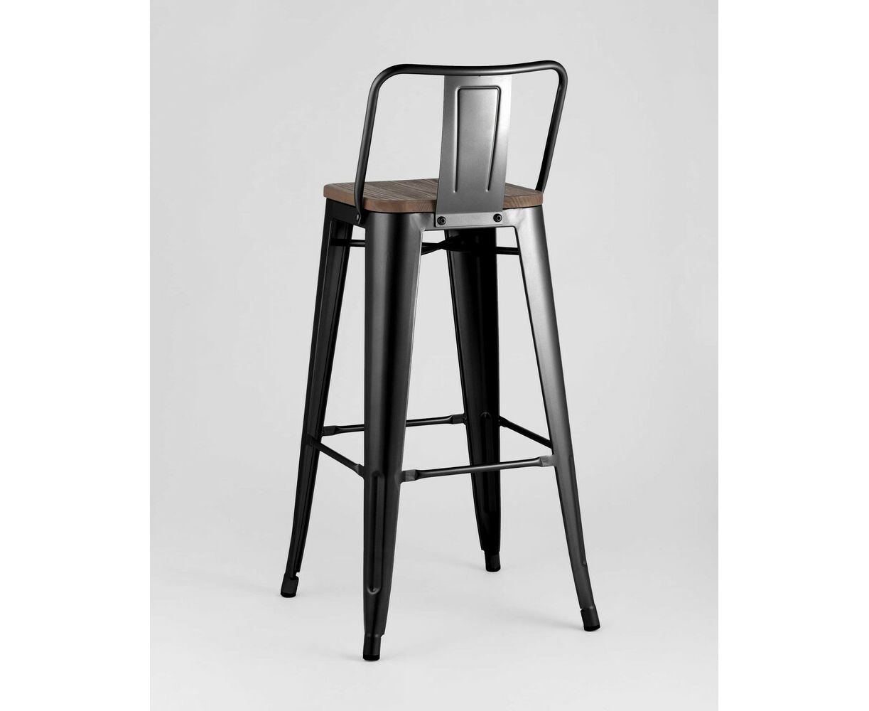Стул барный TOLIX WOOD со спинкой черный глянцевый