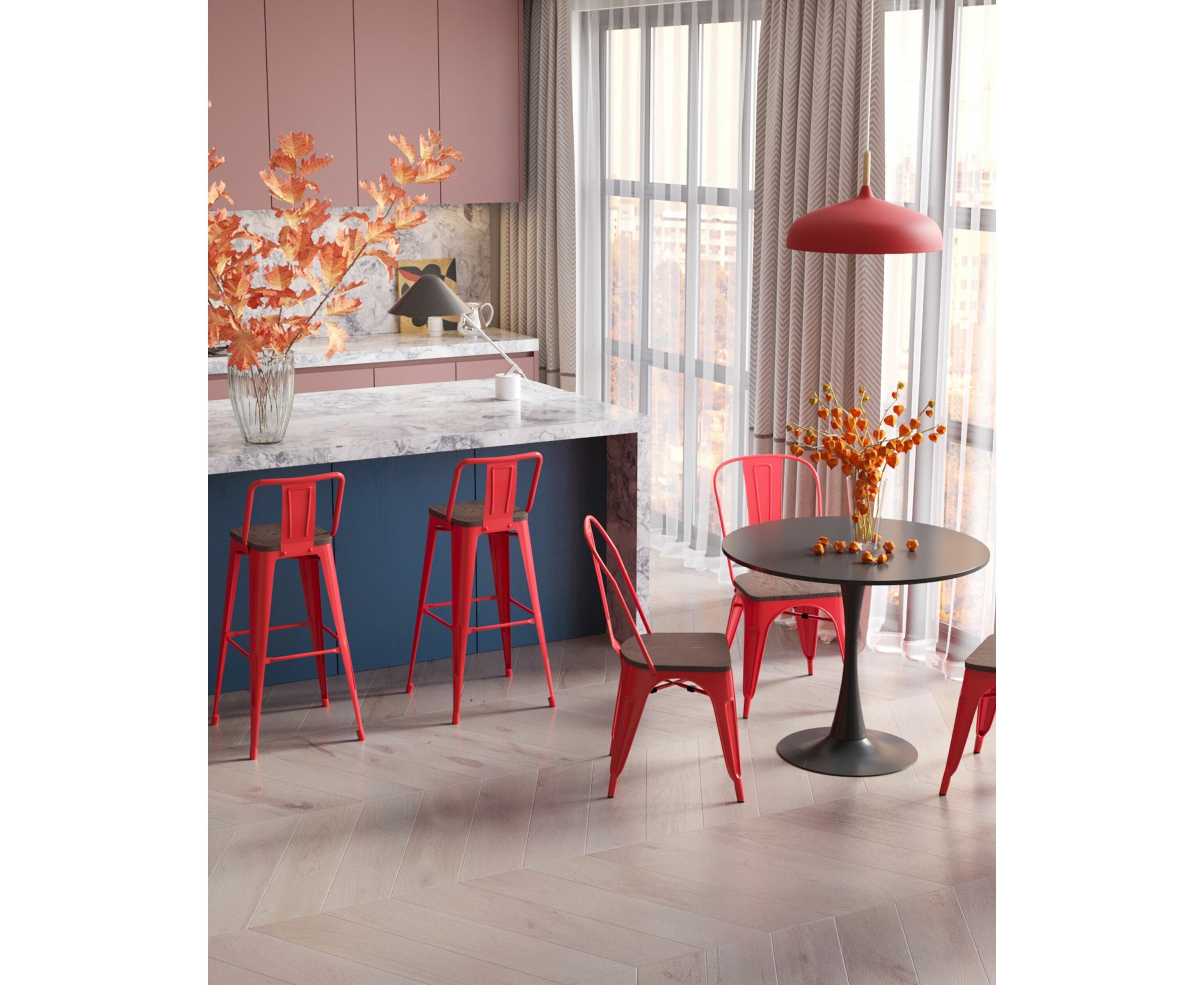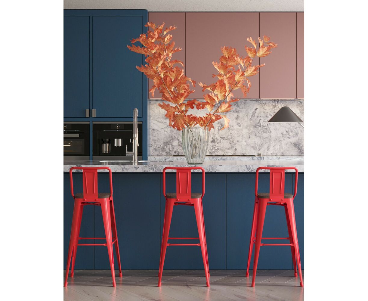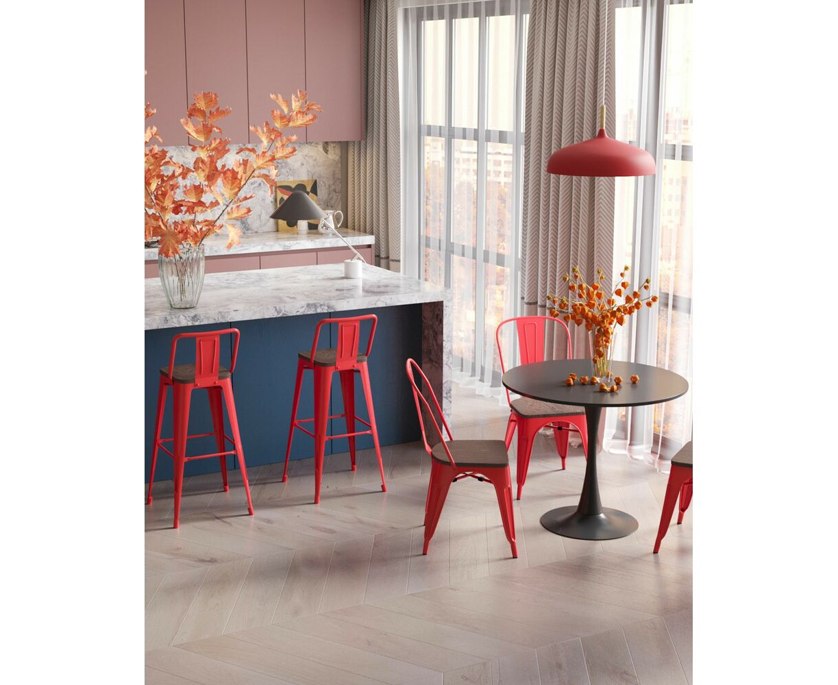 Стул барный TOLIX WOOD со спинкой красный глянцевый